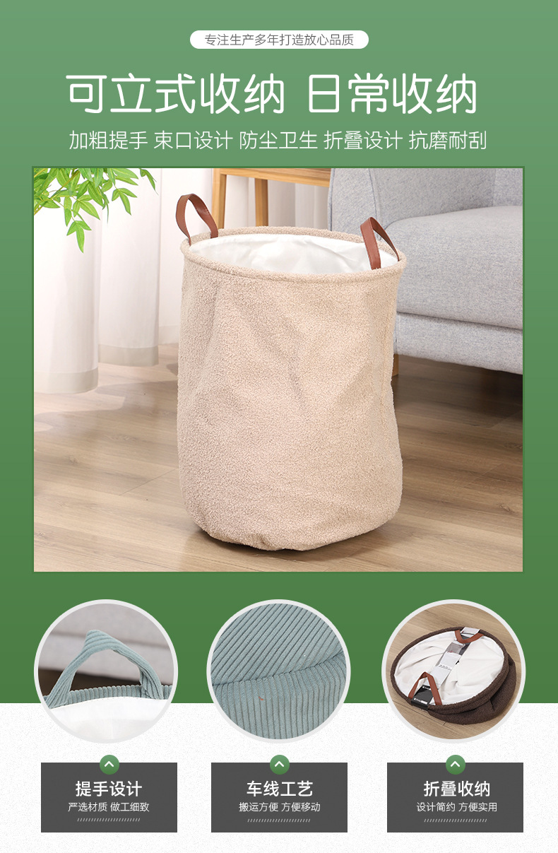 厂家批发家用脏衣篓条绒收纳筐脏衣篓钢架衣物收纳筐杂物收纳桶