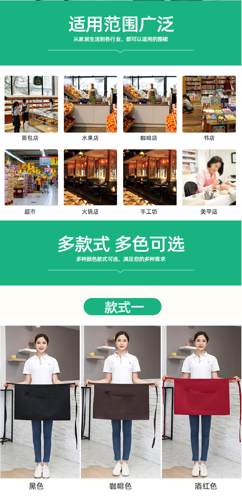 半身围裙定制LOGO印字厨房餐饮超市奶茶店水果店围腰时尚女订做