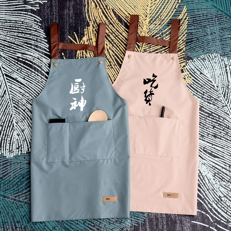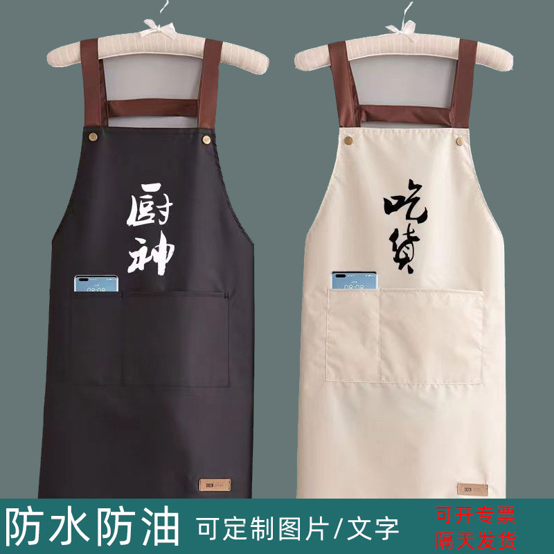 工厂批发厨神吃货背带防水防油厨房做饭围裙可定制logo一件起印字