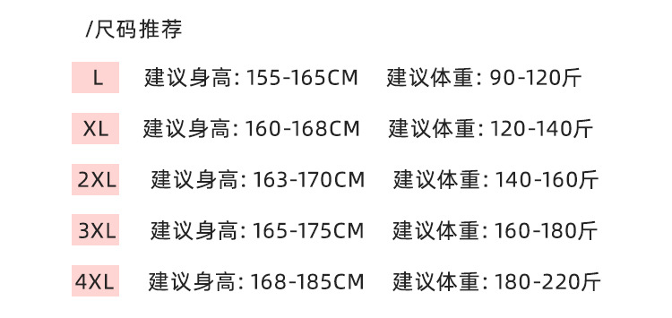| 4xl (recommended 92.50 kg-110.00 kg(4XL(建议185-220斤)) | USD $0.0 | 100 set available |