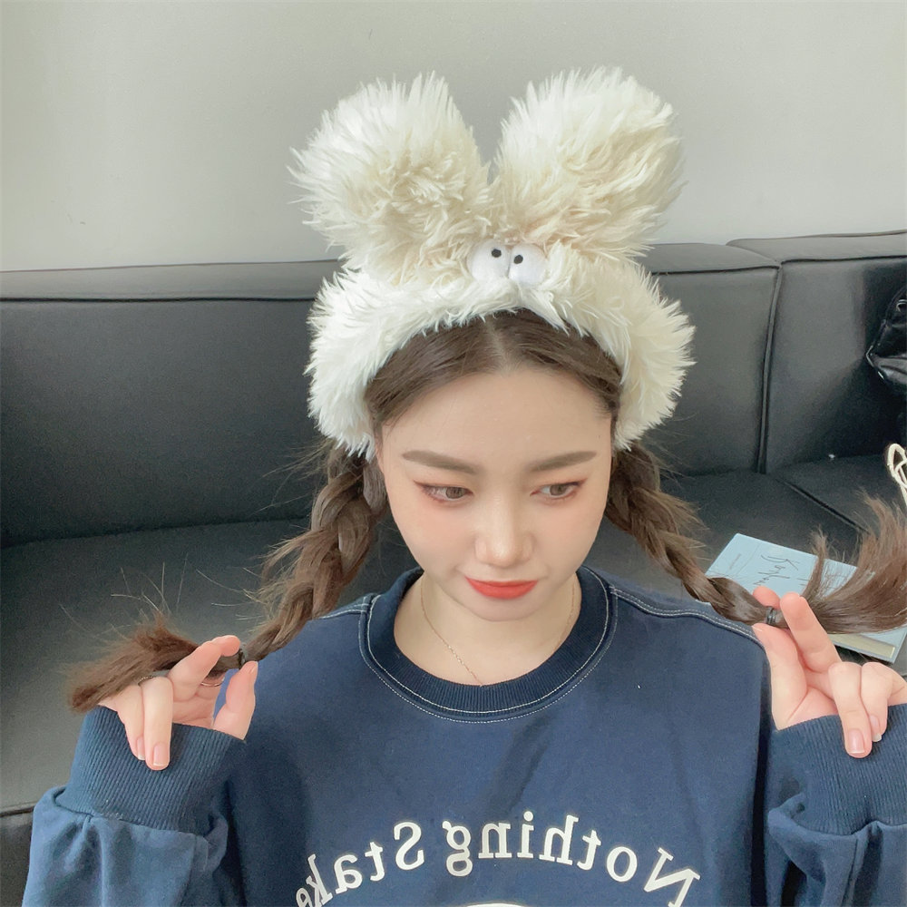 毛绒绒大耳朵修狗发饰组合甜美少女萌趣发带发夹洗漱化妆头饰批发