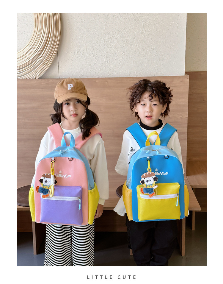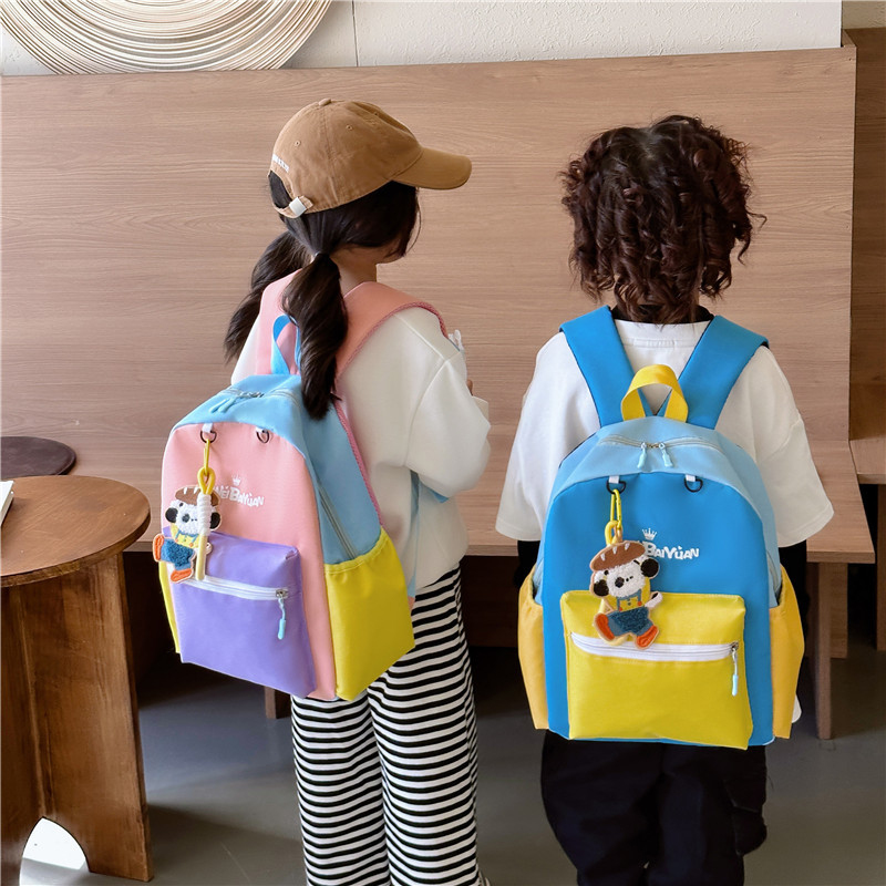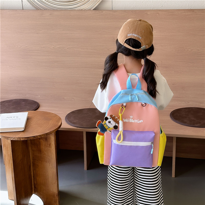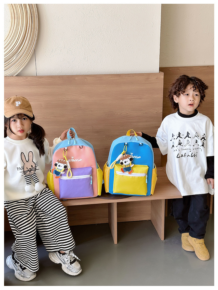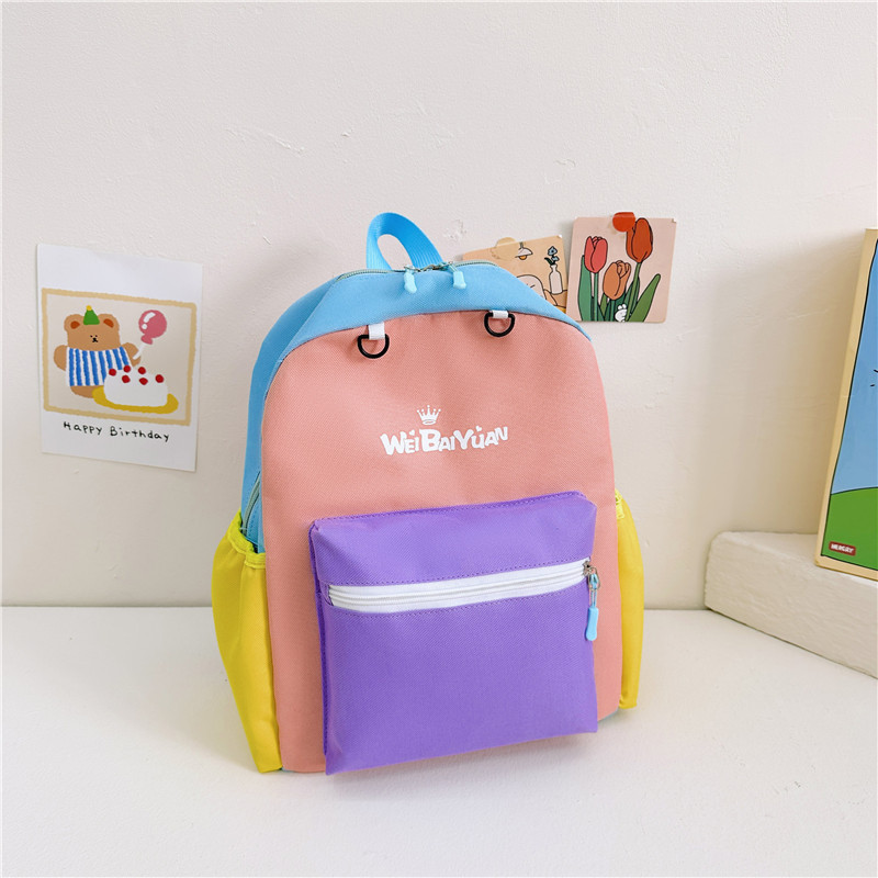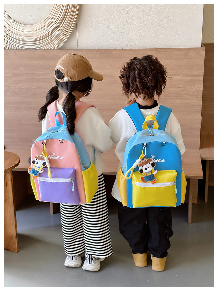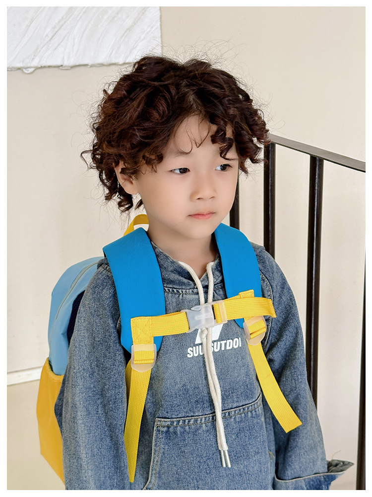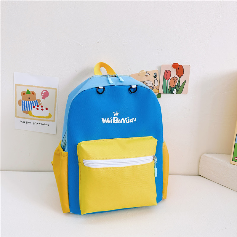 撞色尼龙布双肩包简约男女宝宝上学书包幼儿园中小班背包