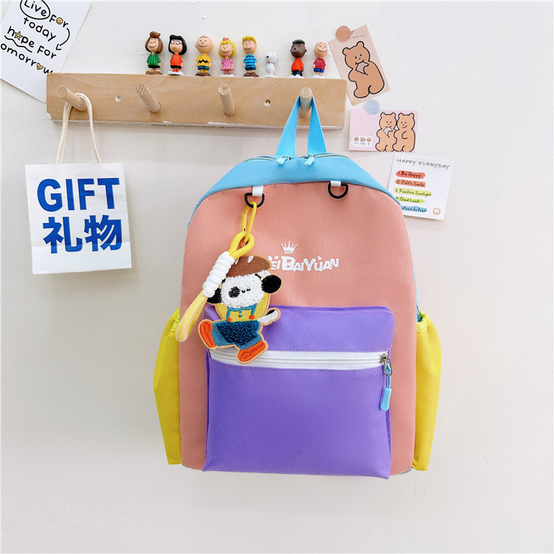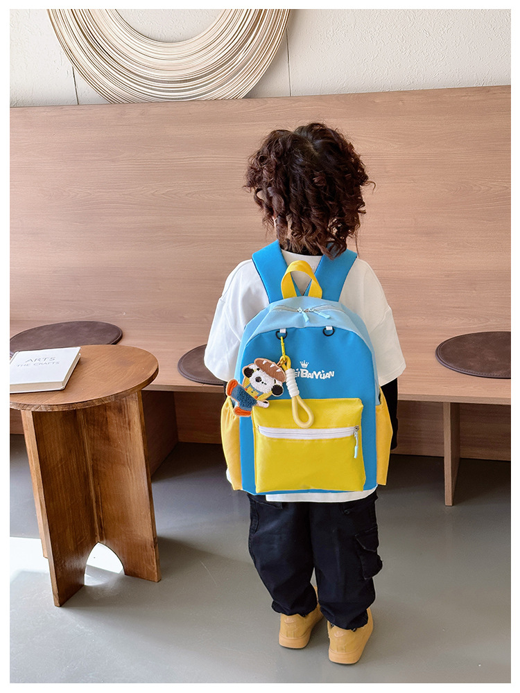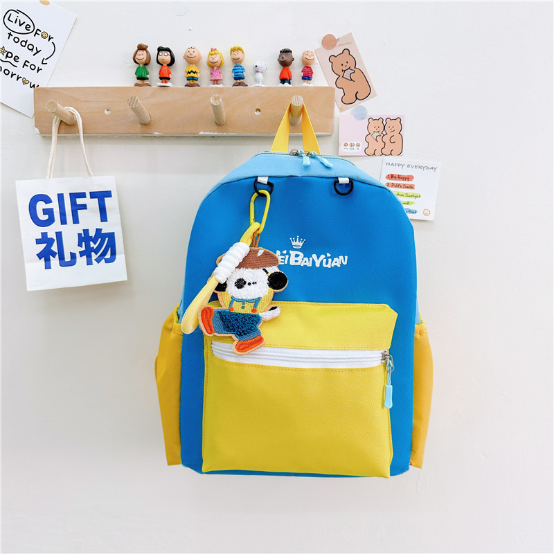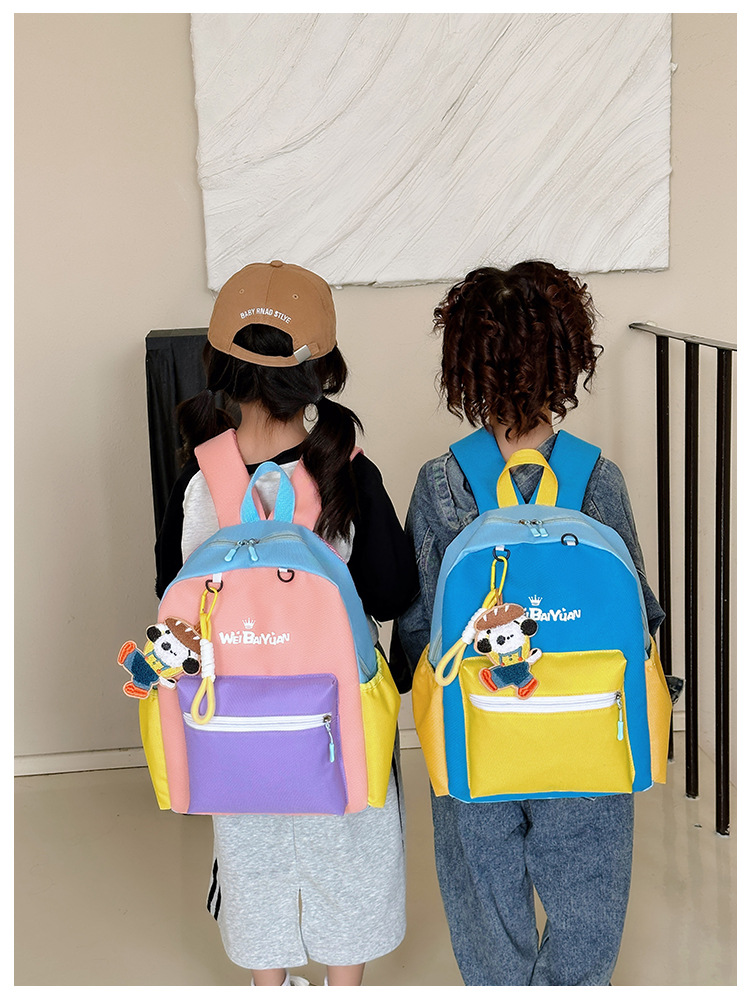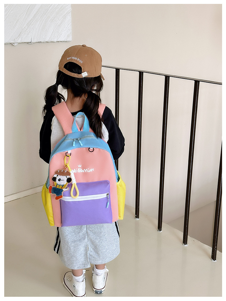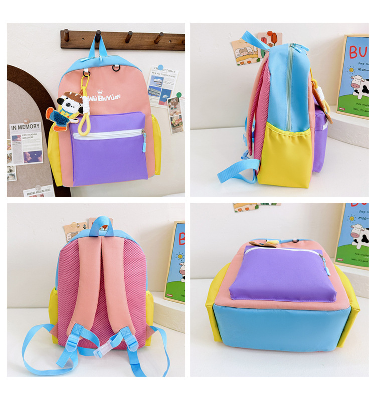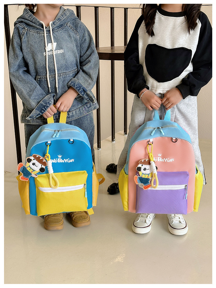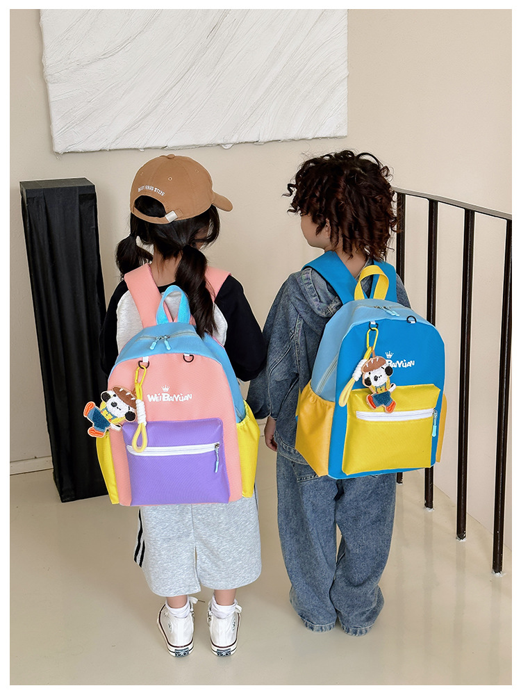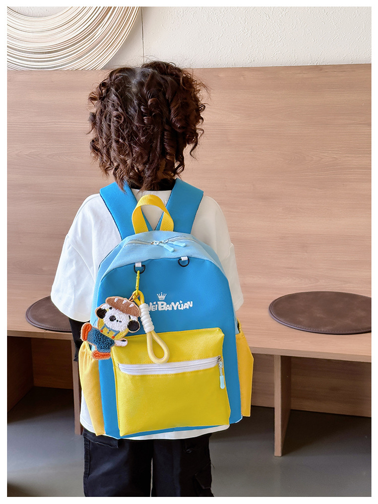 撞色尼龙布双肩包简约男女宝宝上学书包幼儿园中小班背包