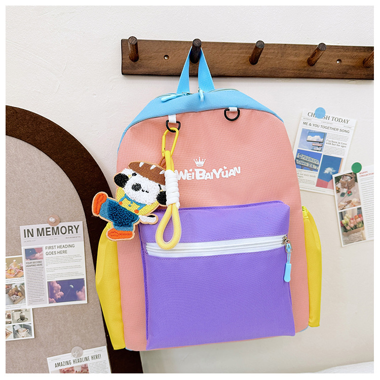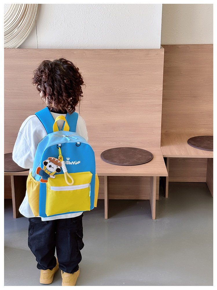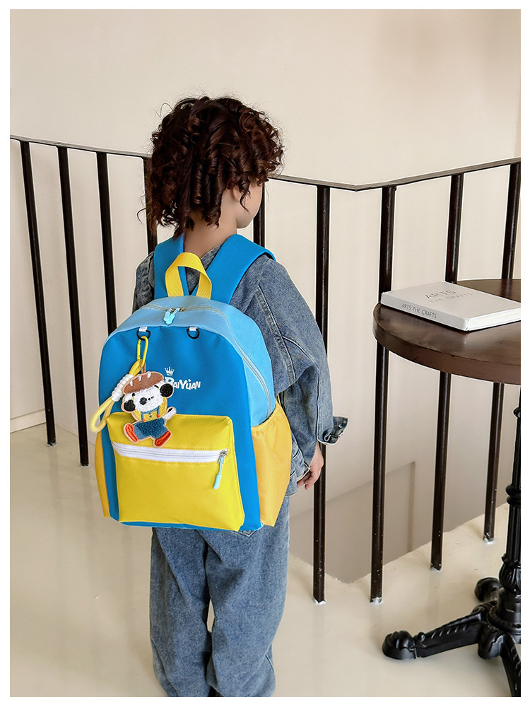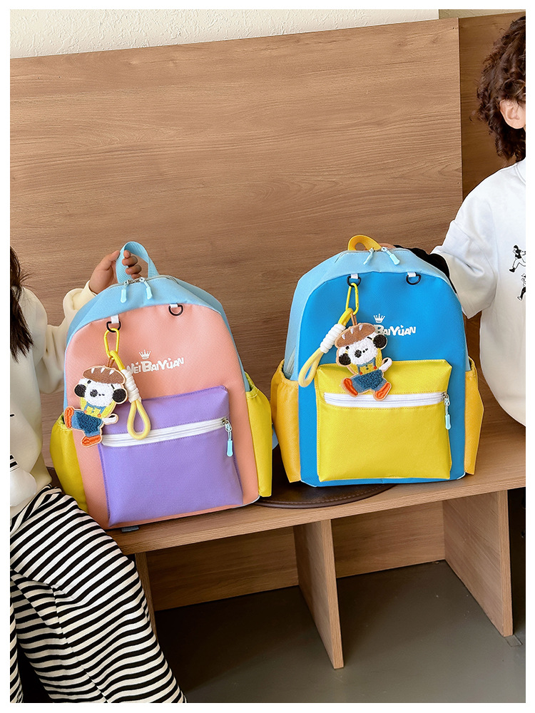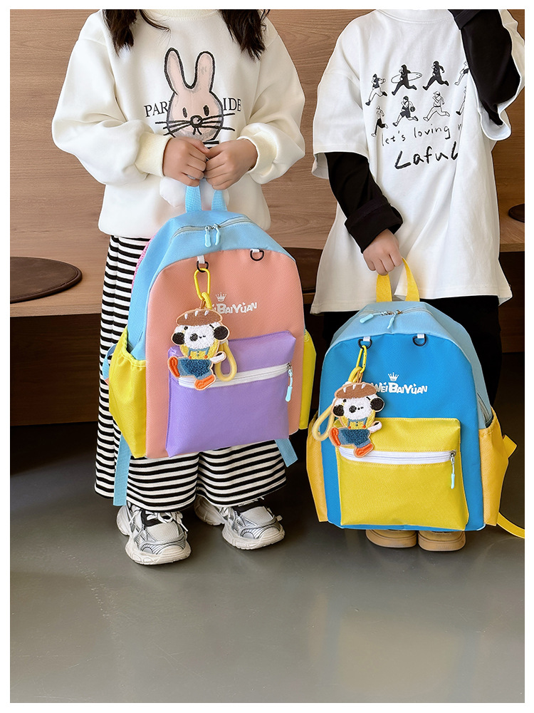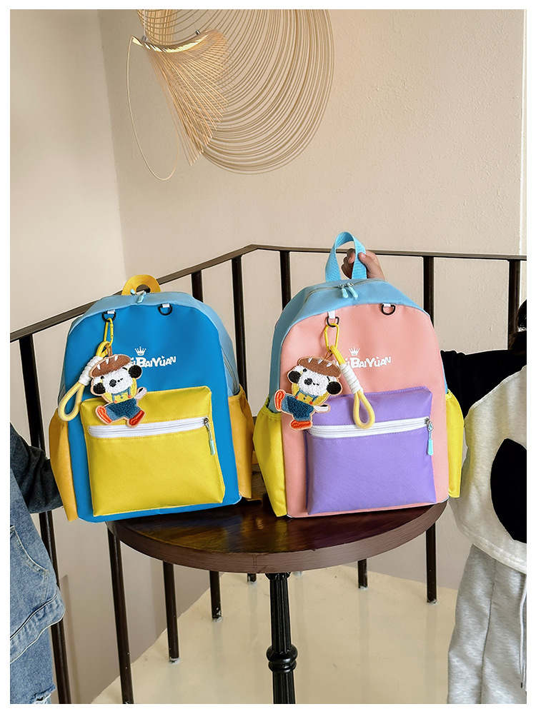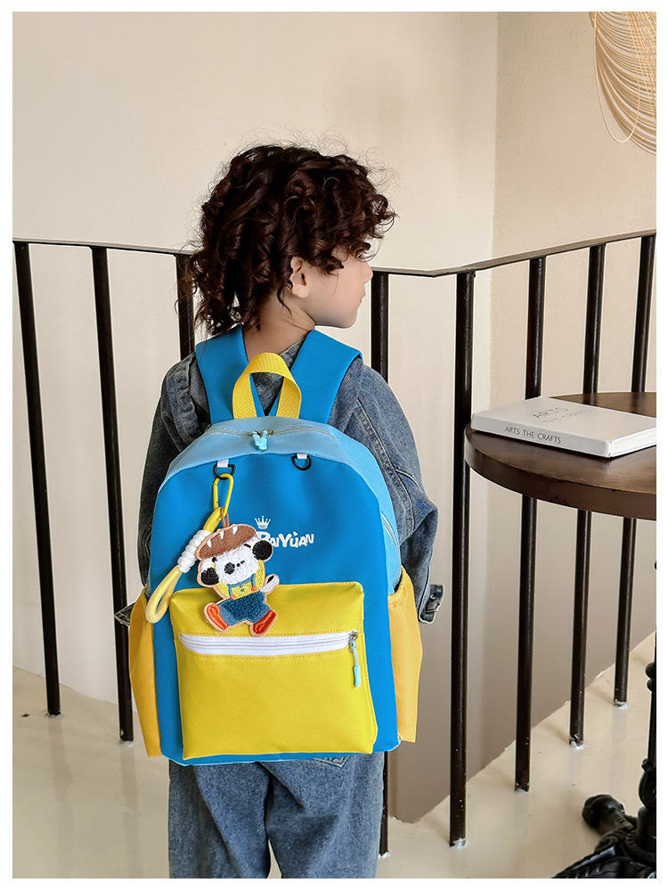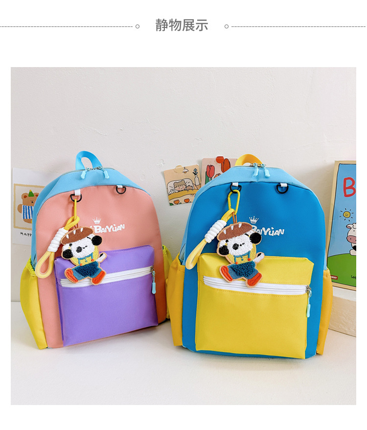 撞色尼龙布双肩包简约男女宝宝上学书包幼儿园中小班背包