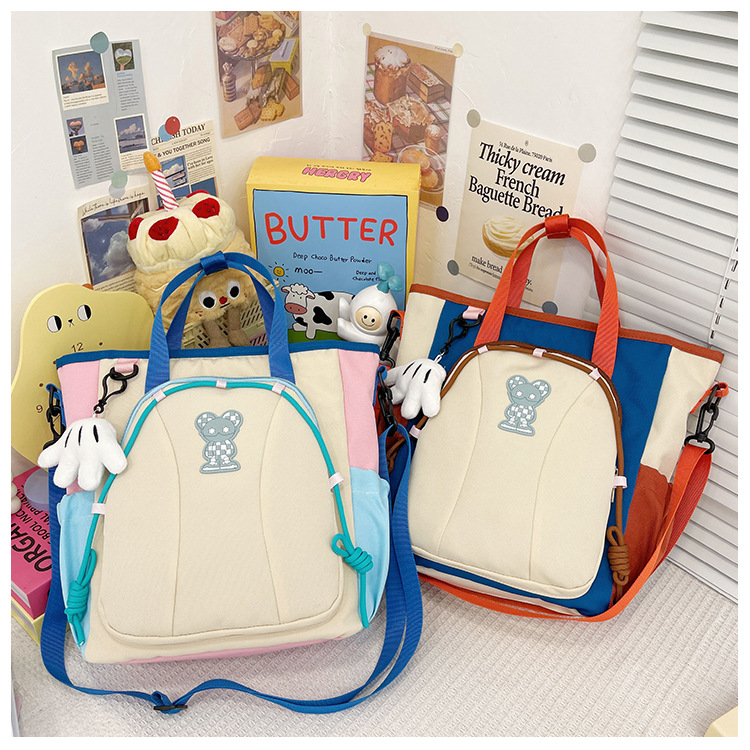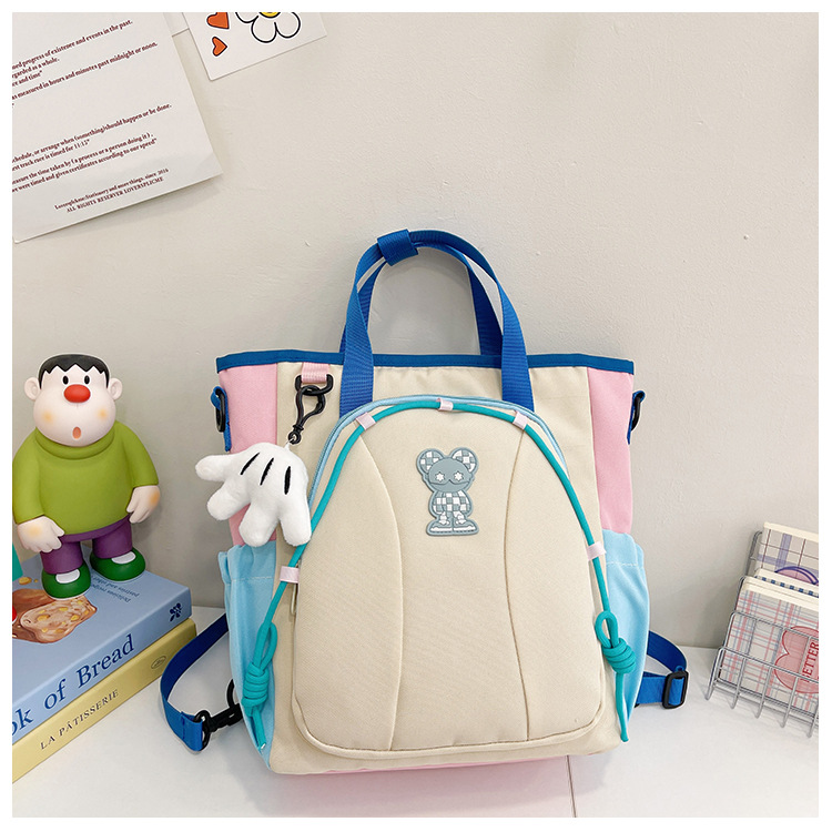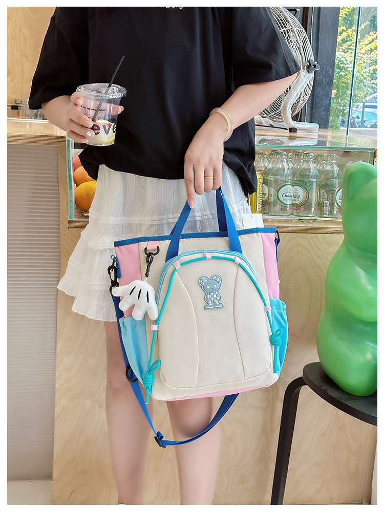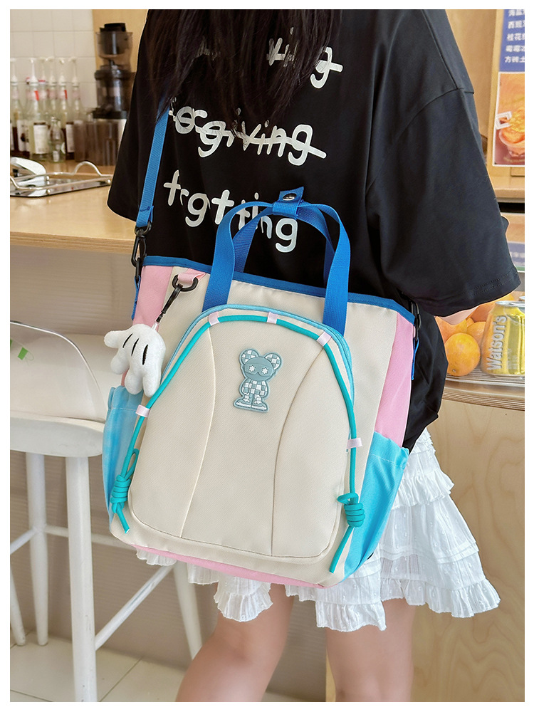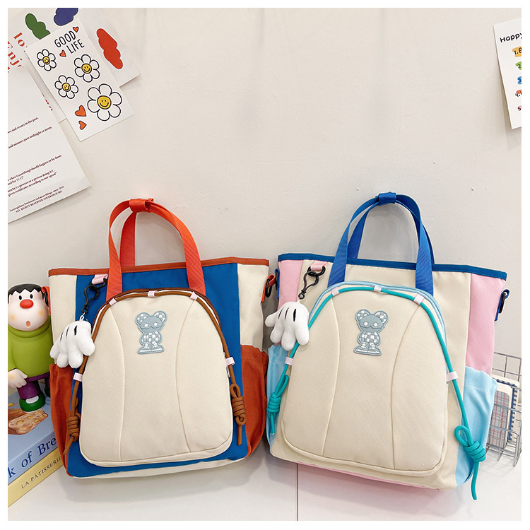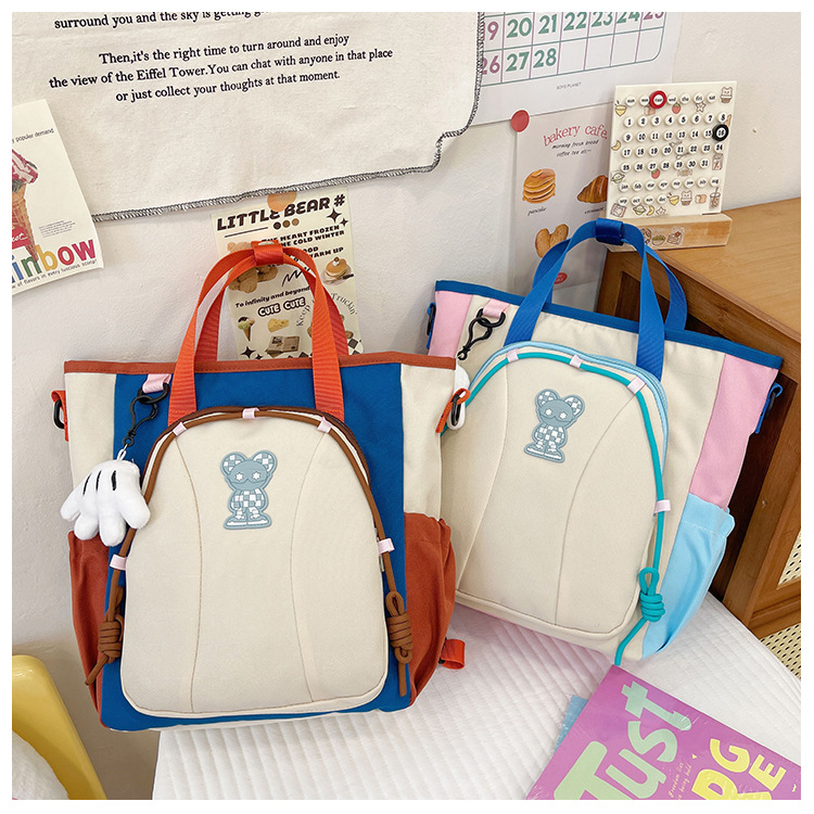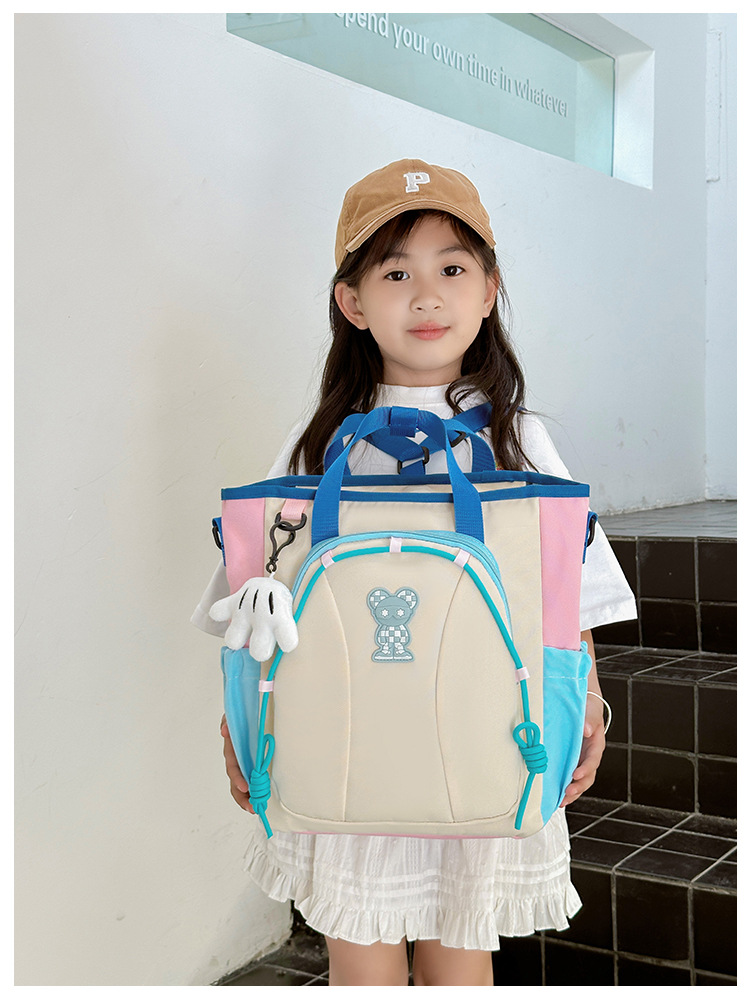 运动风单肩包高颜值撞色小学生补课袋初高中生三用书包