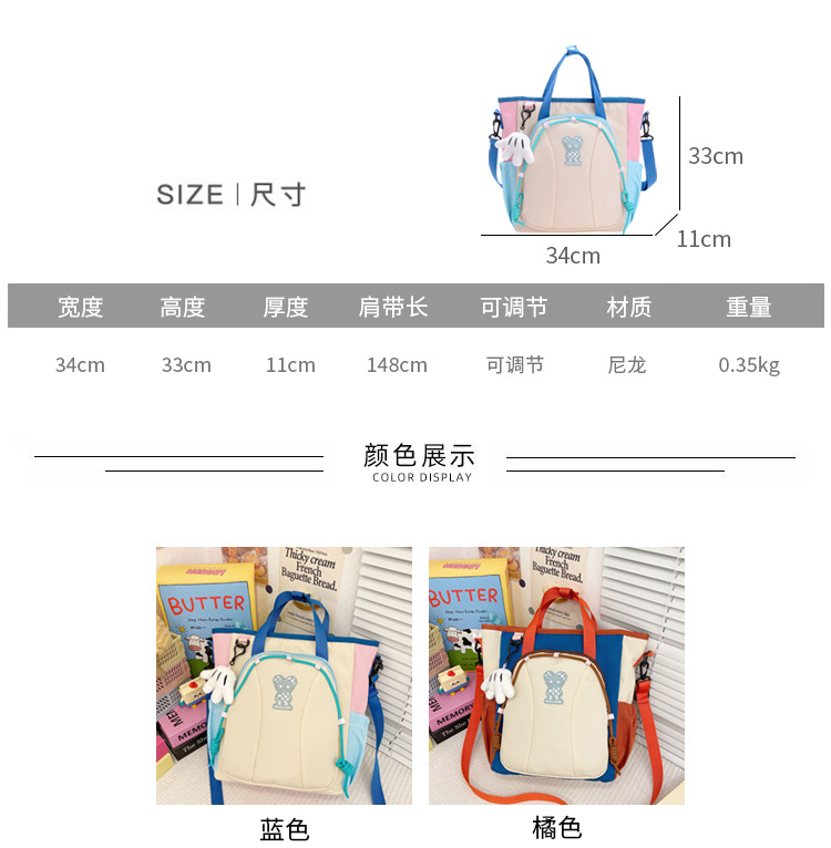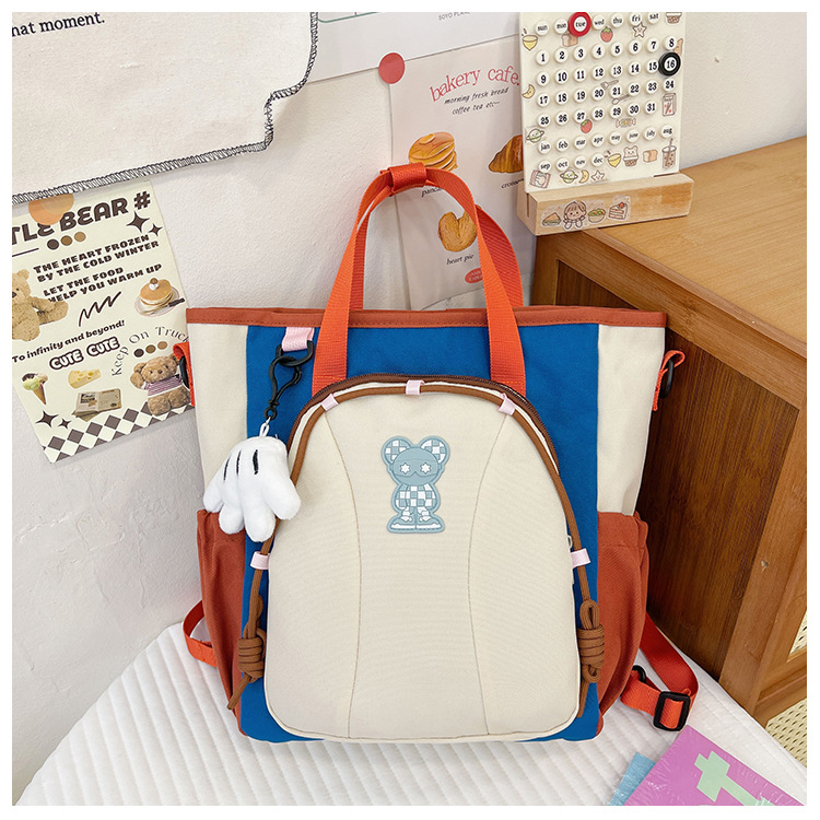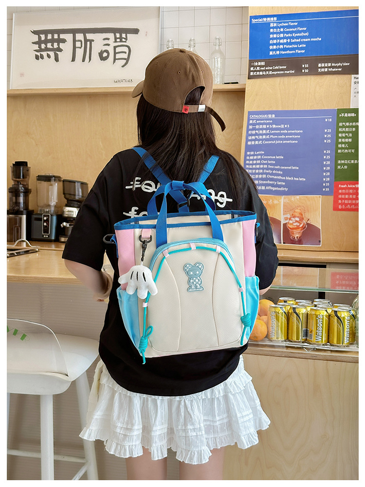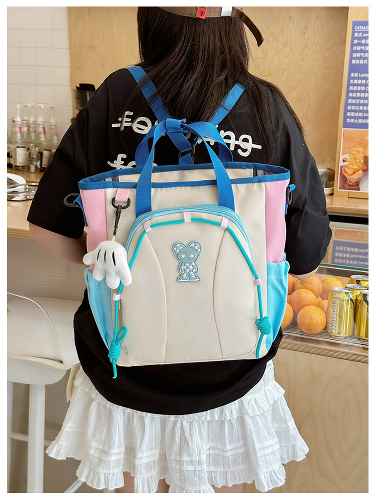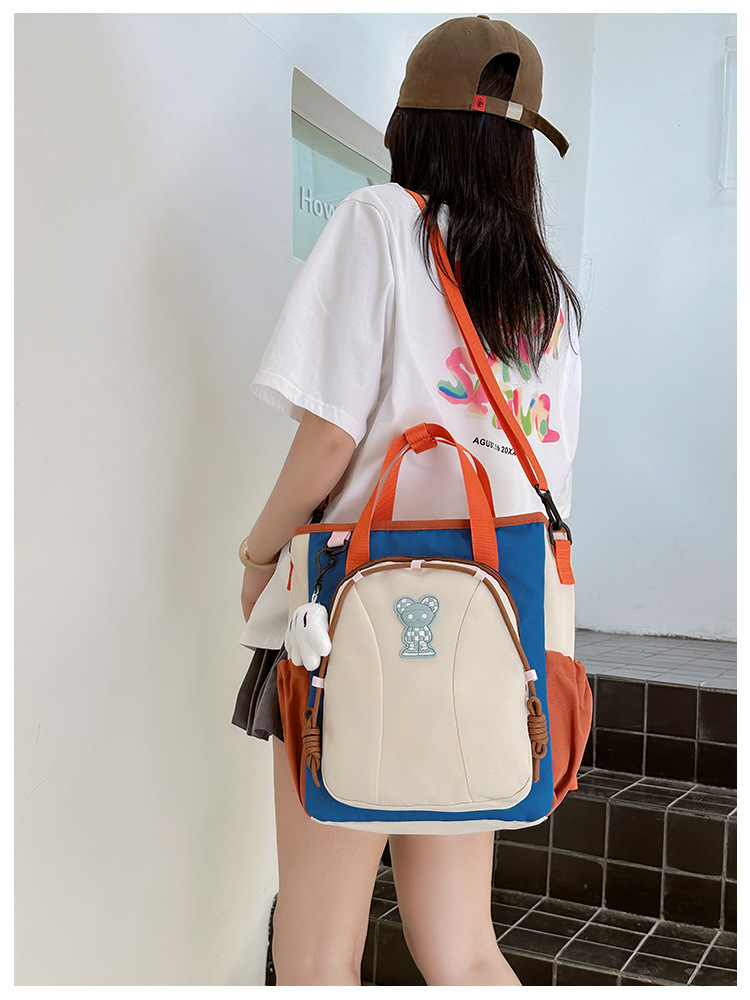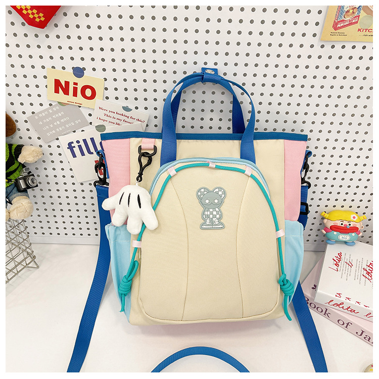 运动风单肩包高颜值撞色小学生补课袋初高中生三用书包