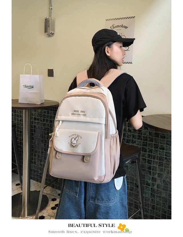 2024新款简约休闲撞色初高中学生上课双肩旅行背包