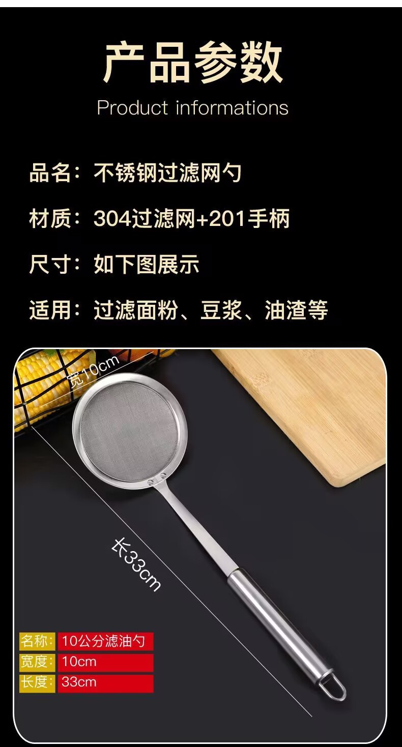 贸点工厂直营MD-S050滤油勺100目网漏勺油脂油渣泡沫捞304不锈钢