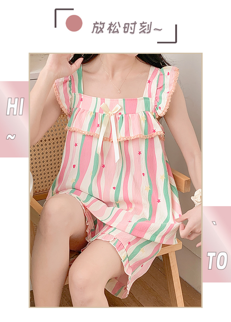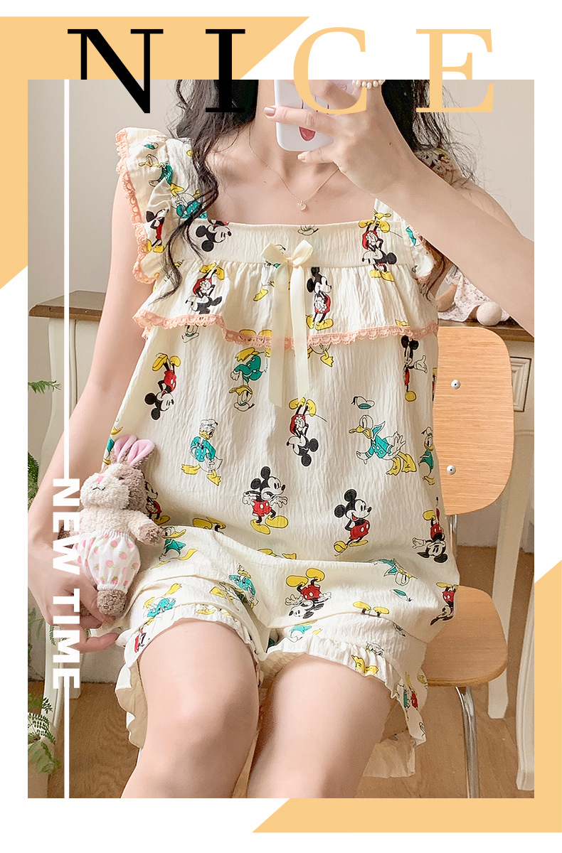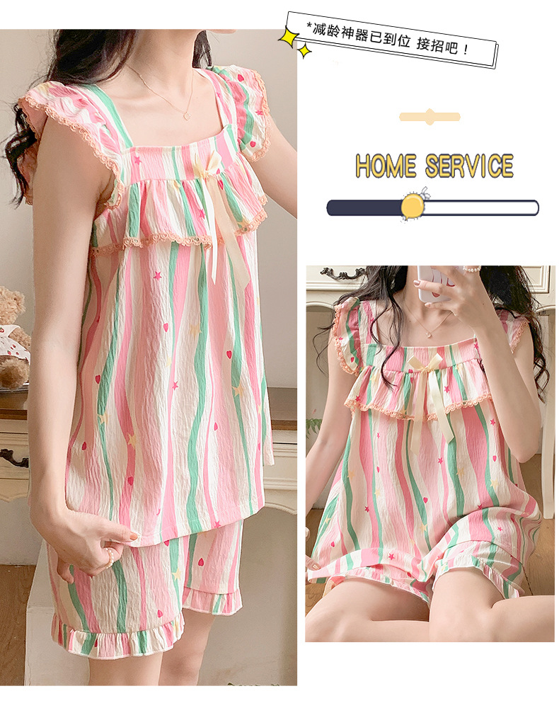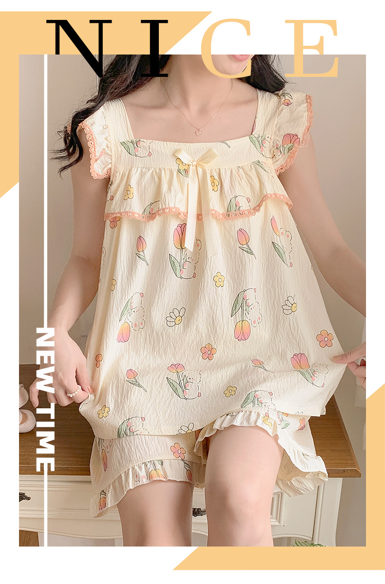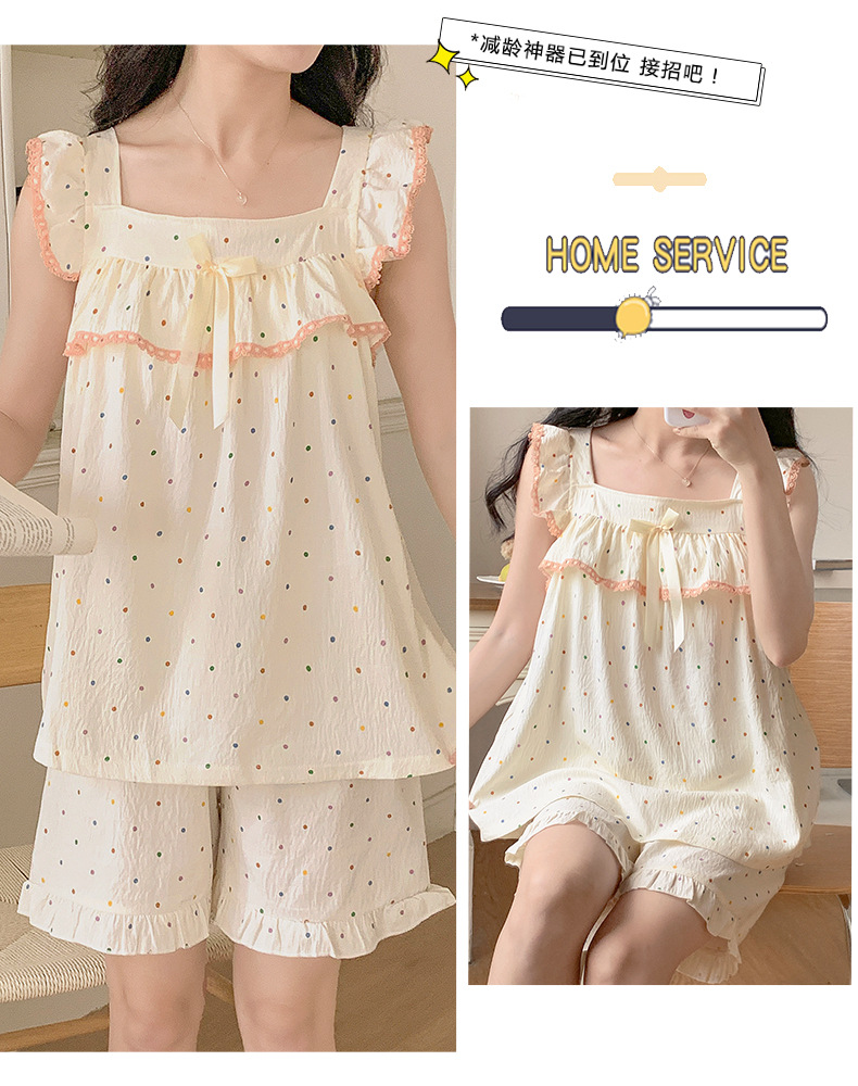 睡衣女夏季带胸垫天丝爽棉小飞袖背心短裤甜美韩版少女家居服套装