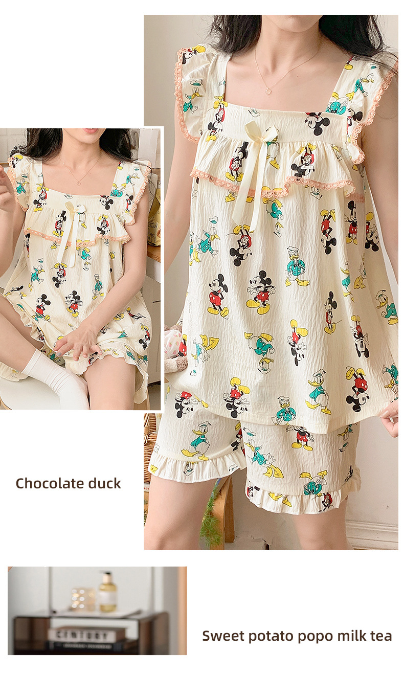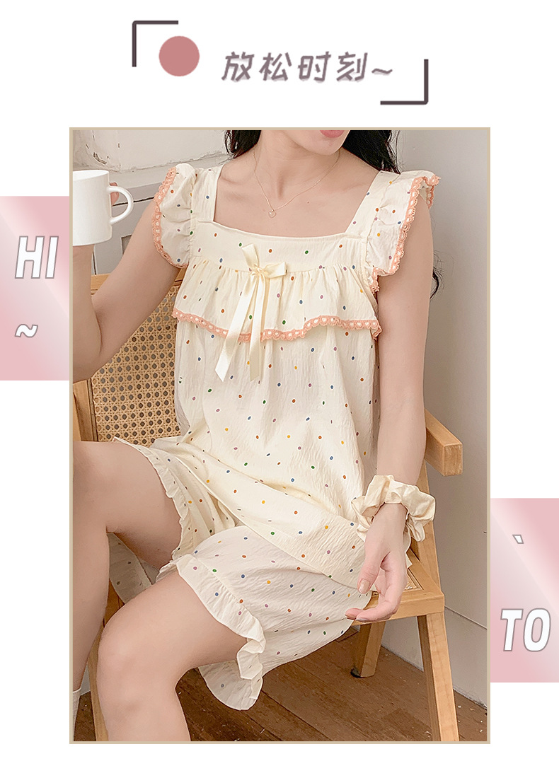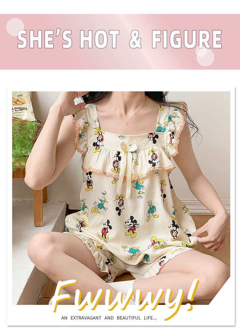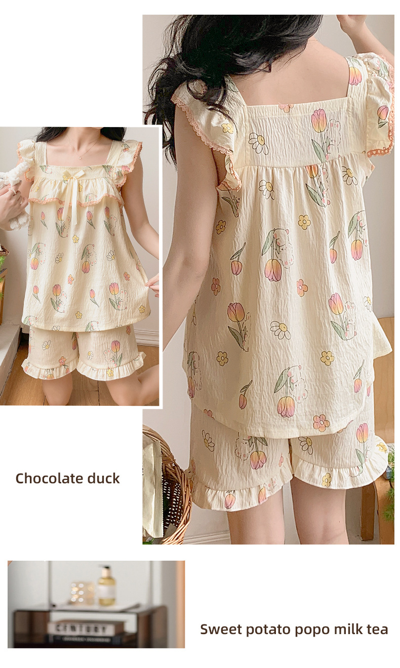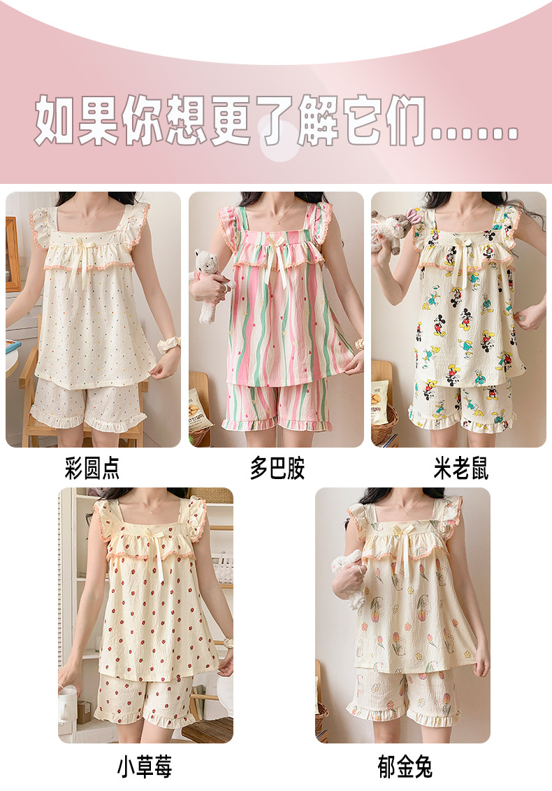 睡衣女夏季带胸垫天丝爽棉小飞袖背心短裤甜美韩版少女家居服套装