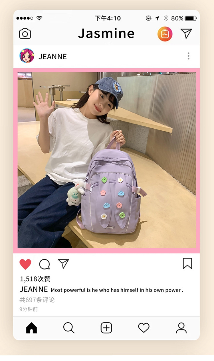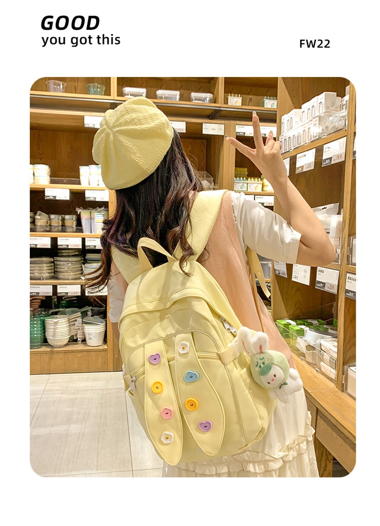 校园书包女初中生可爱兔耳朵双肩包轻便学生背包