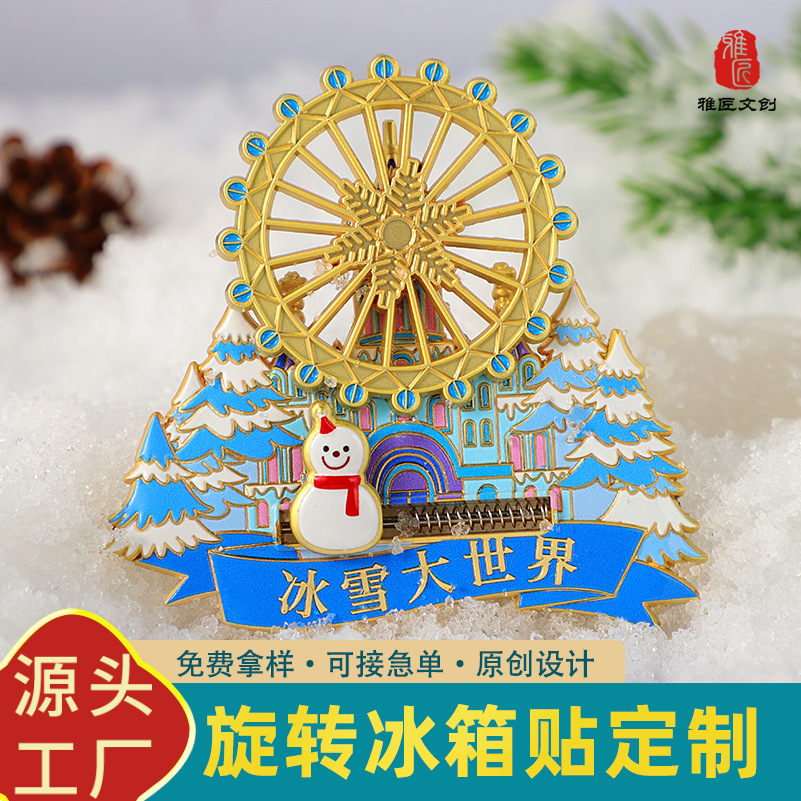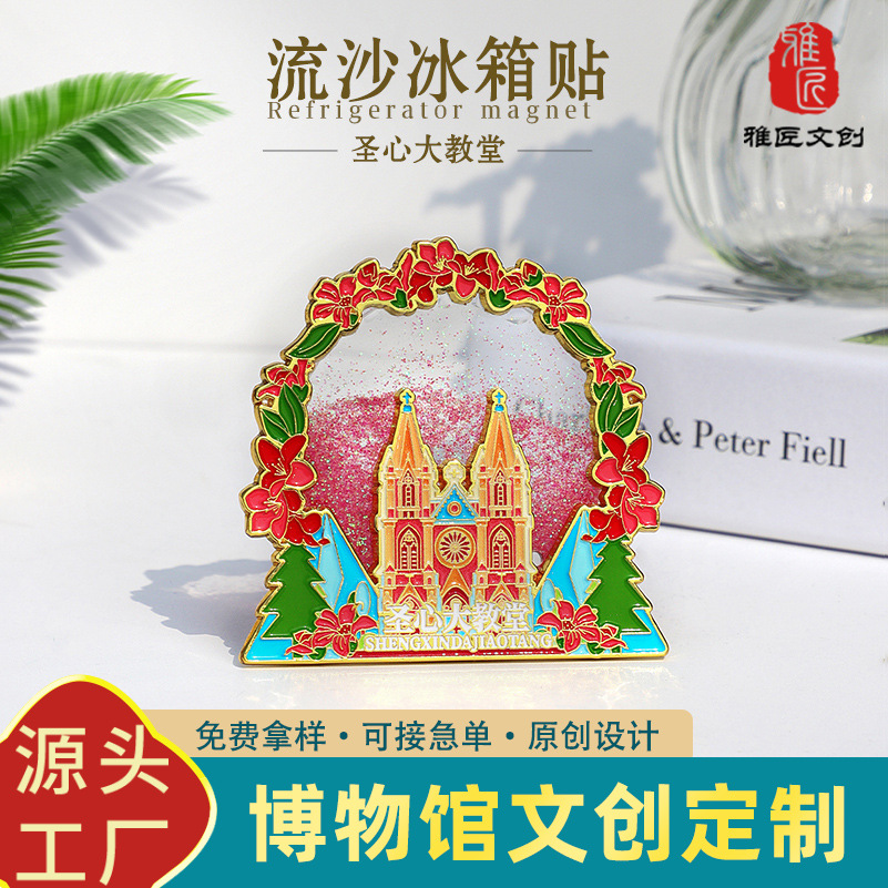 新品流沙冰箱贴定制旅游景点博物馆伴手礼烤漆金属冰箱贴磁贴定制
