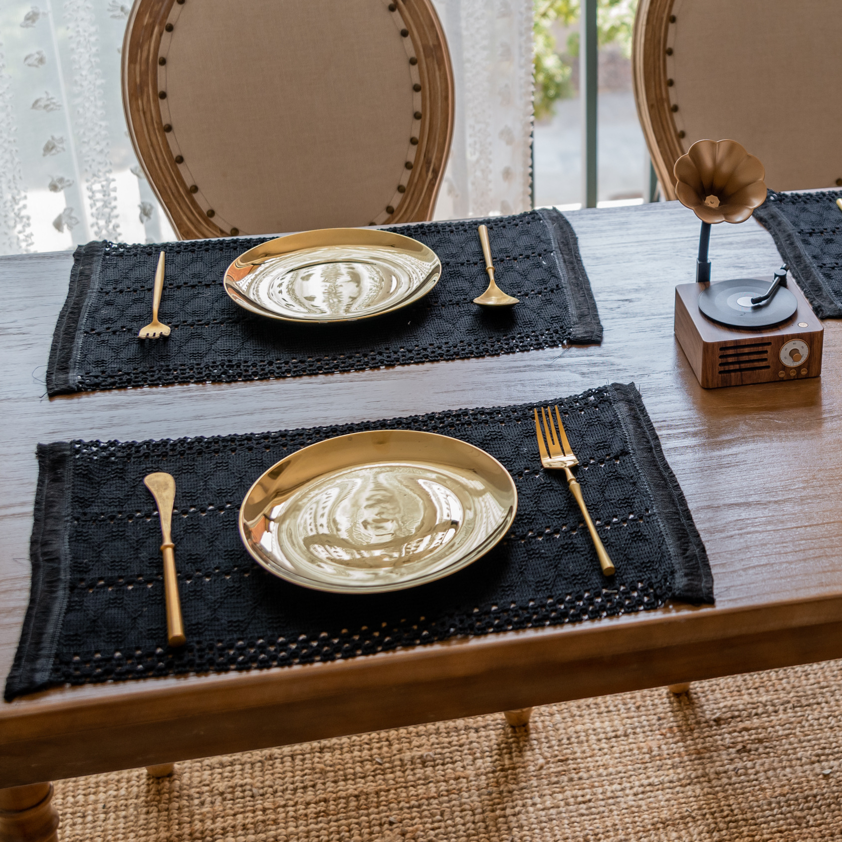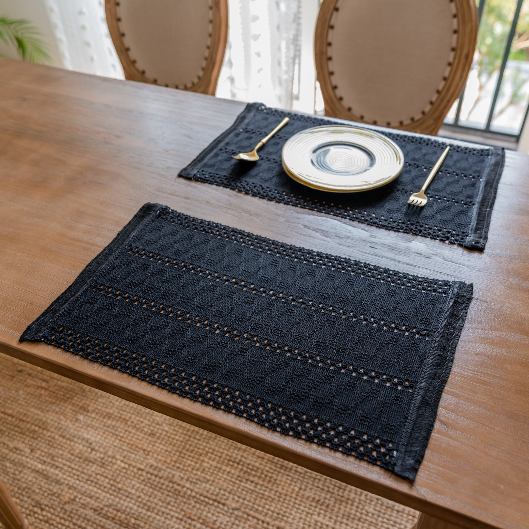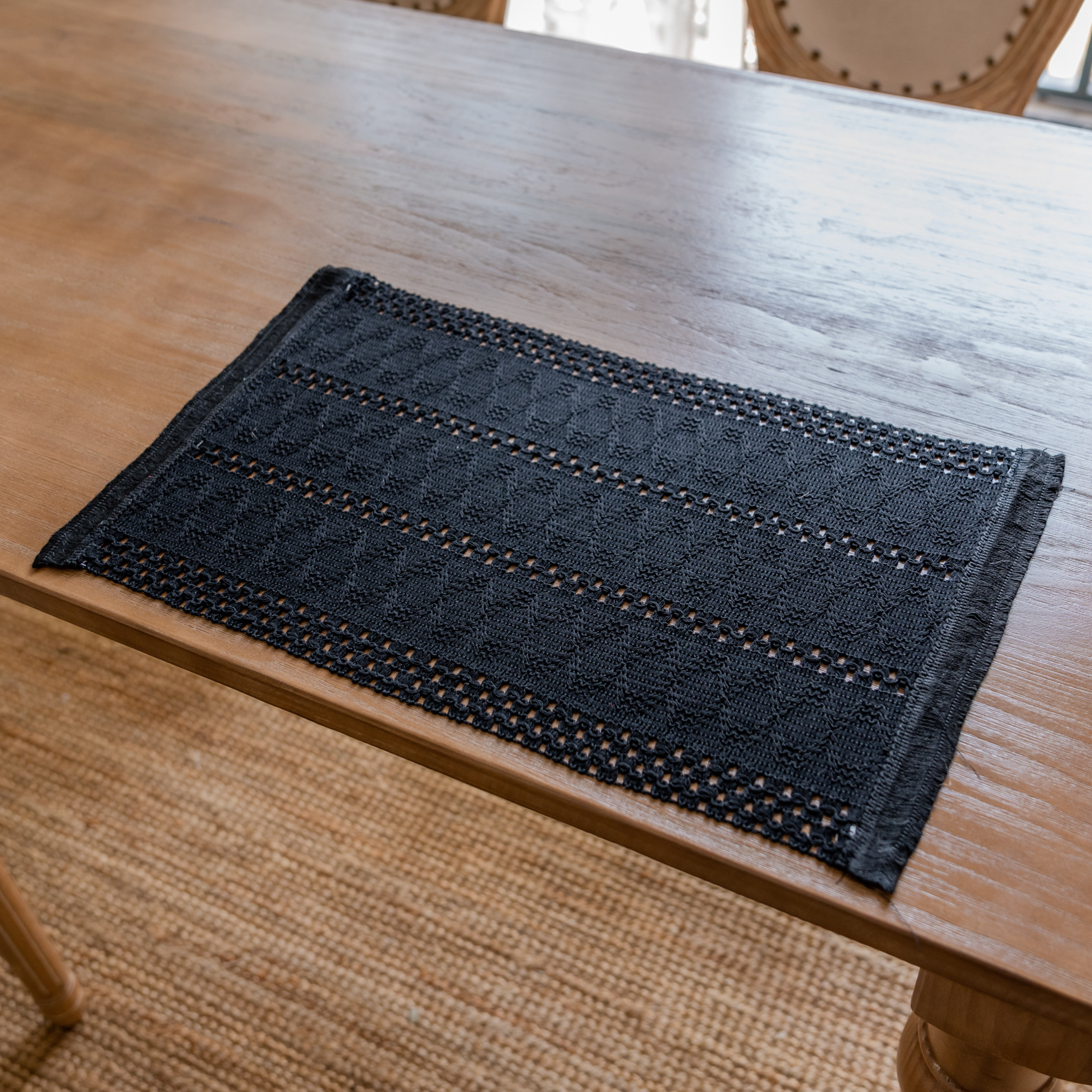 聚家纯黑色麻花-餐垫纯黑色棉线桌旗装饰聚会餐垫布艺台布美式户