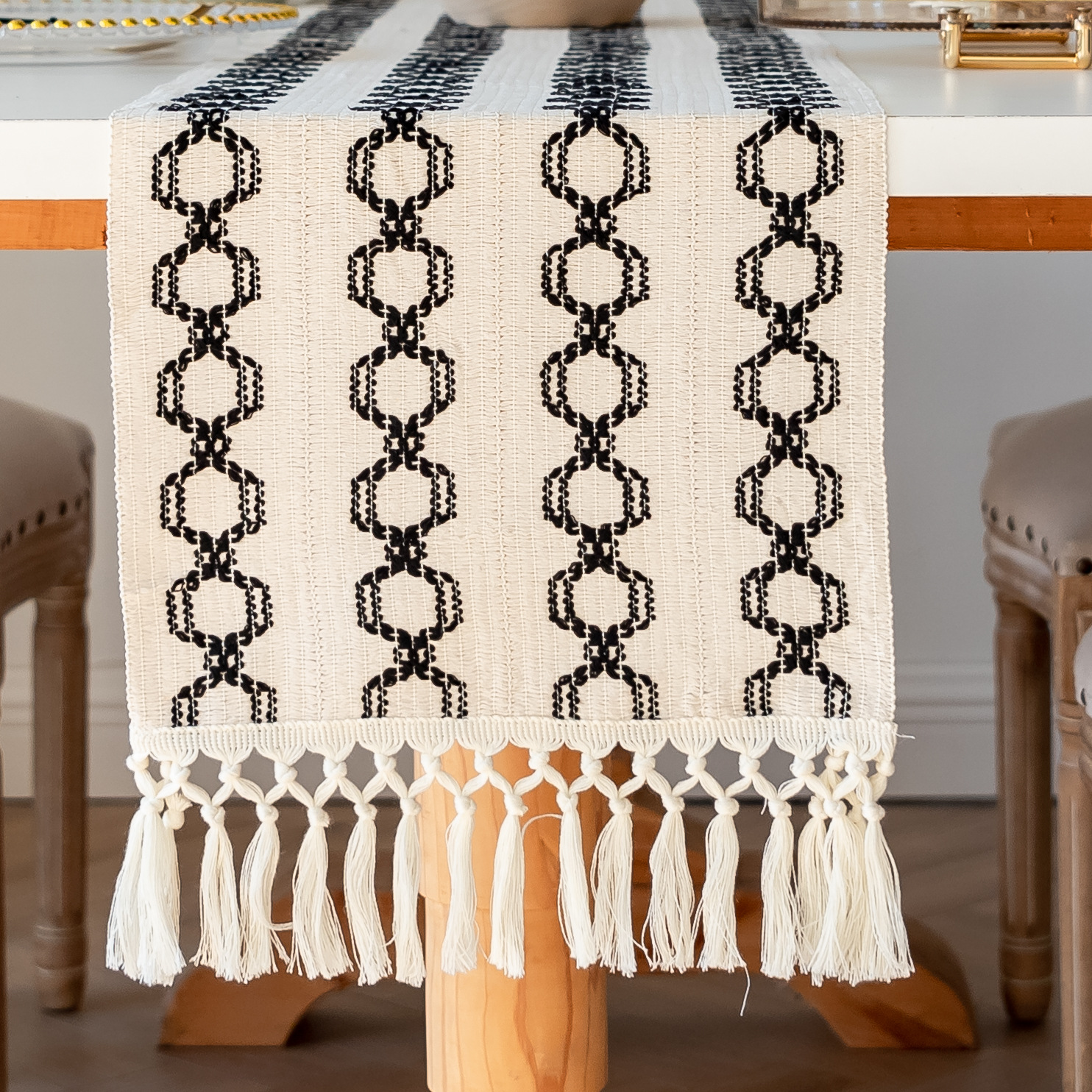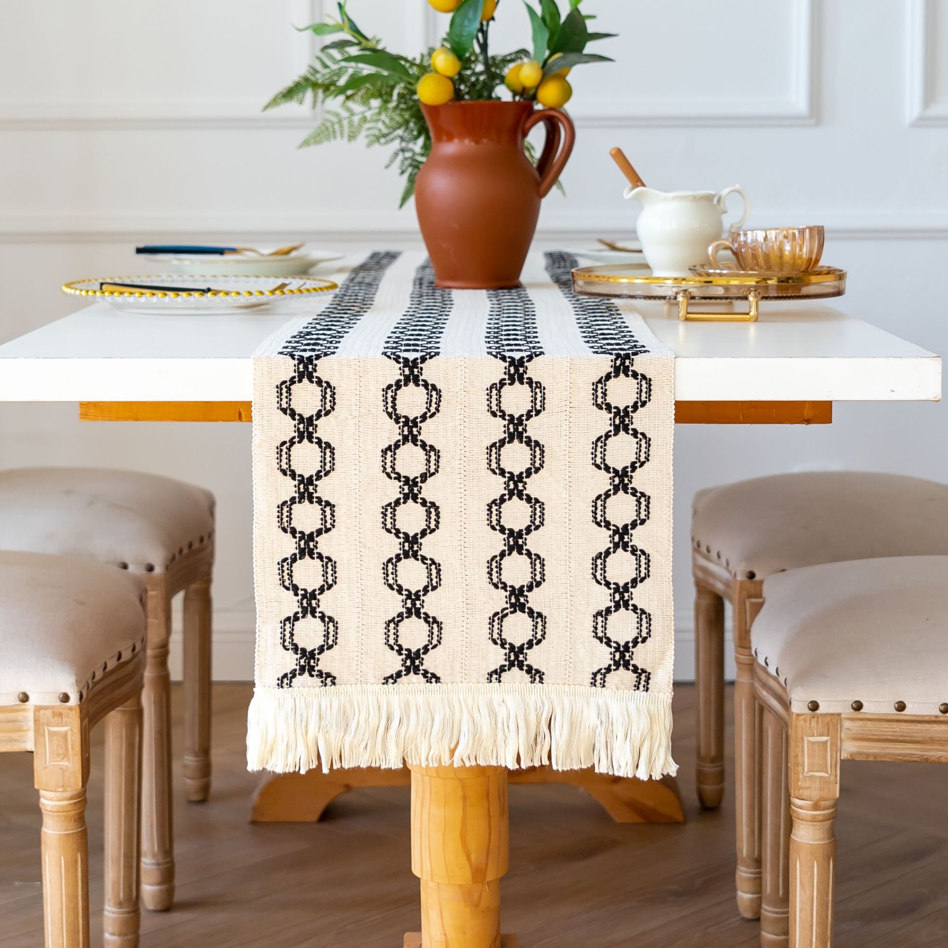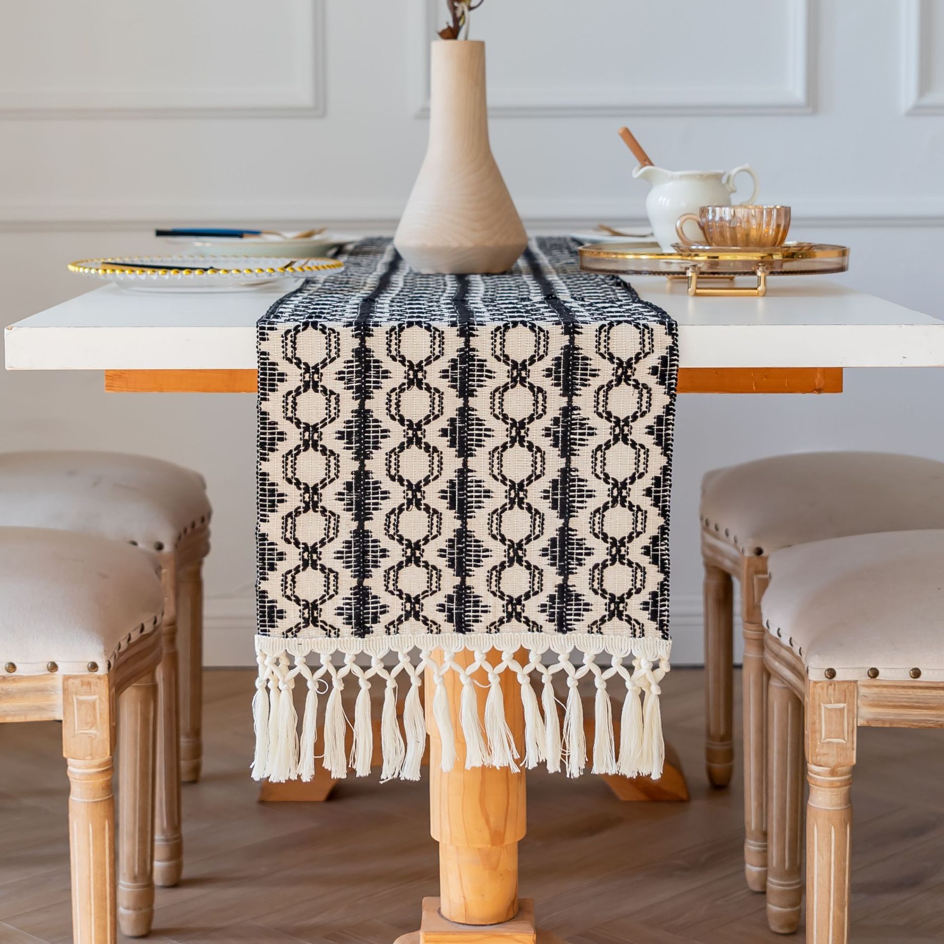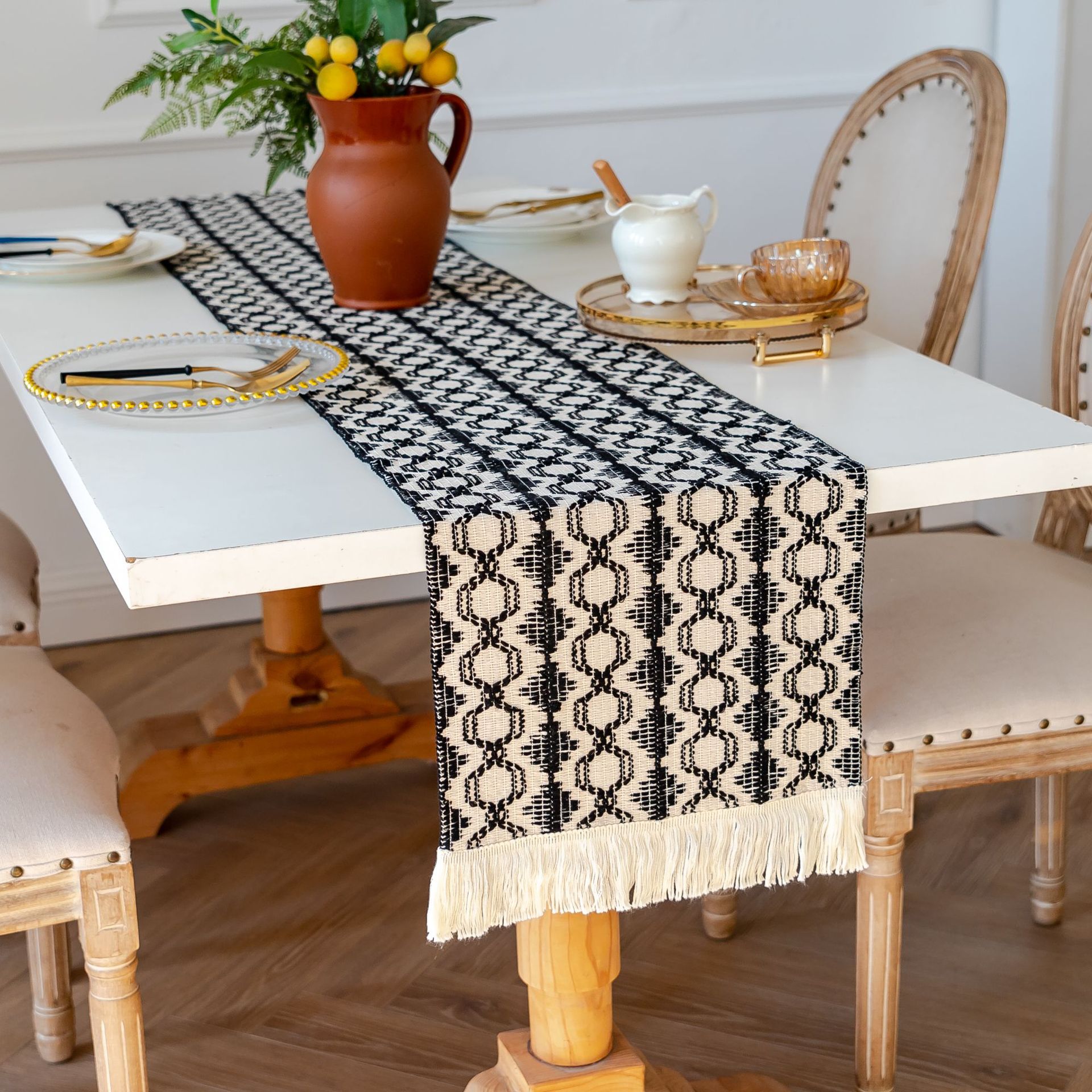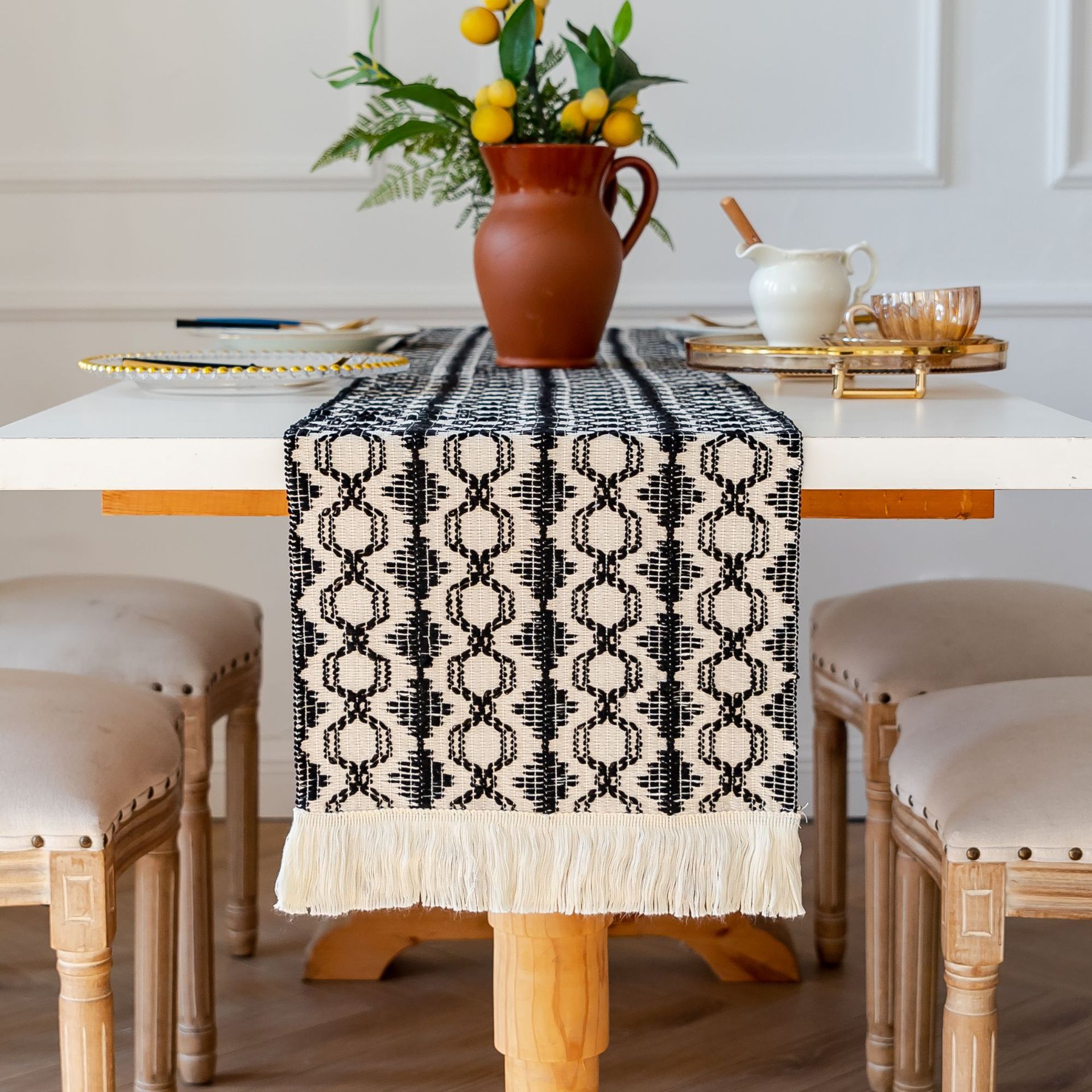 跨境亚马逊桌旗新款黑白色熊猫色拼色餐桌垫节日派对装饰桌巾批发