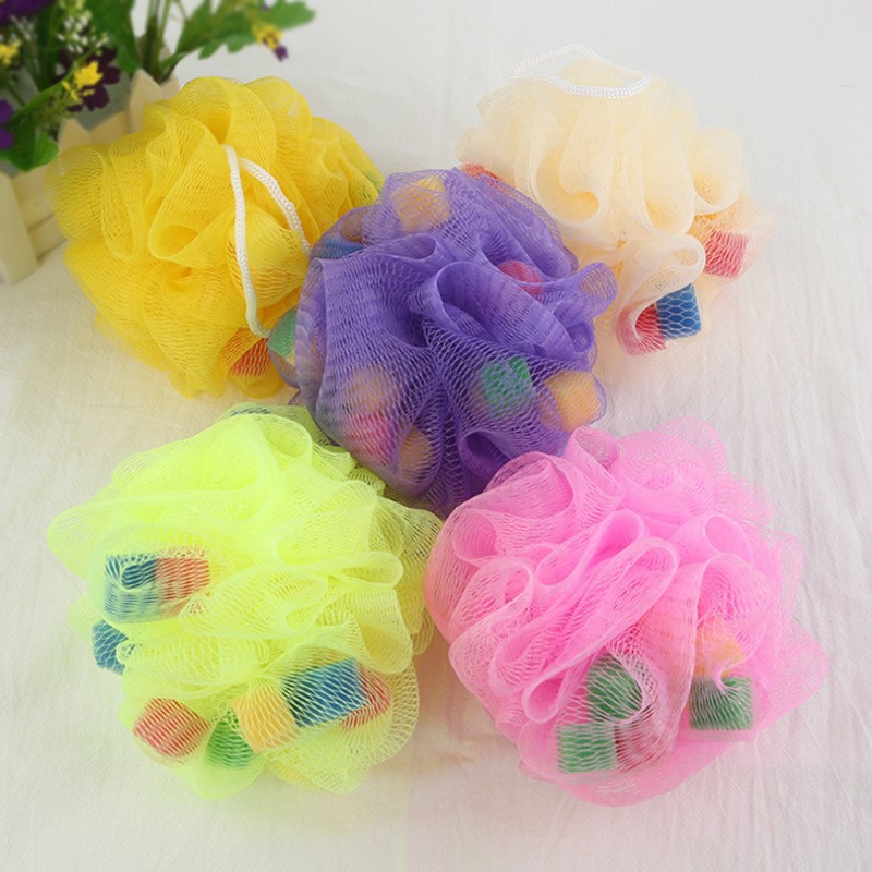 沐浴球大号彩色舒适海绵创意带挂绳洗浴球搓澡多彩浴擦浴花30g