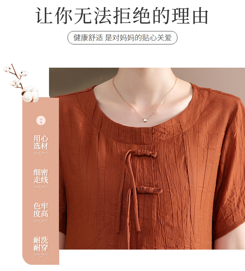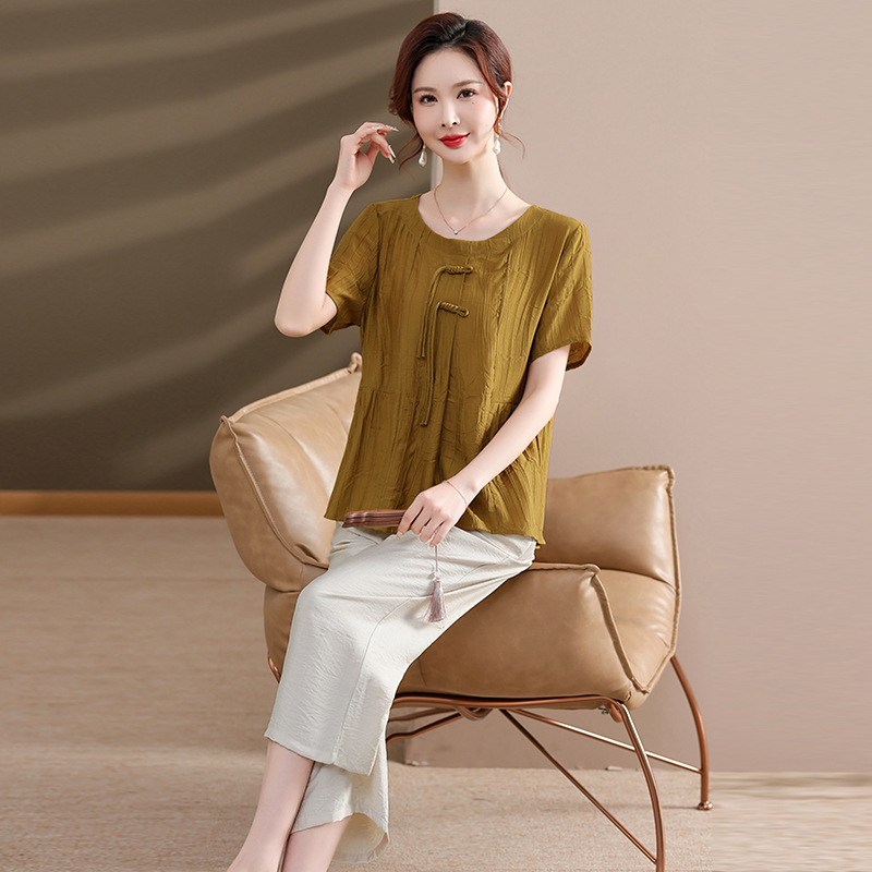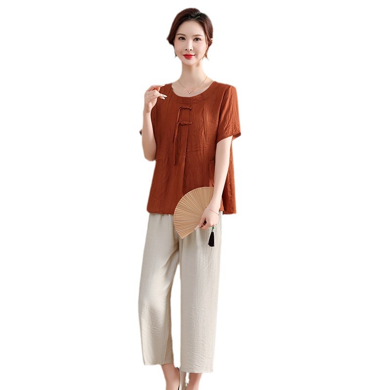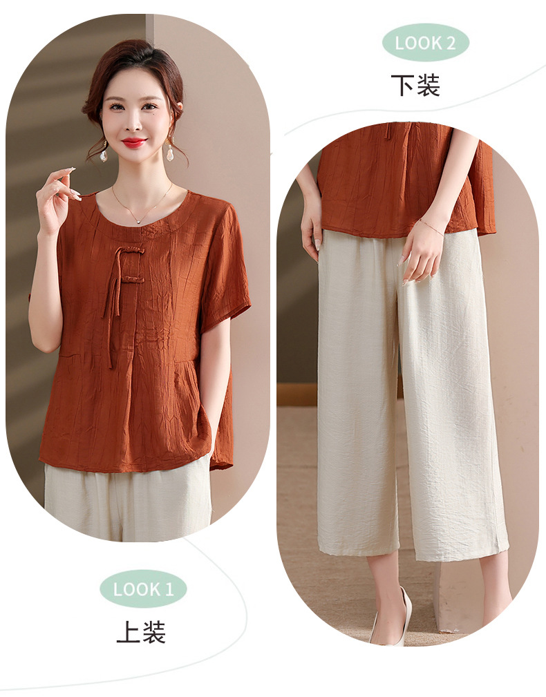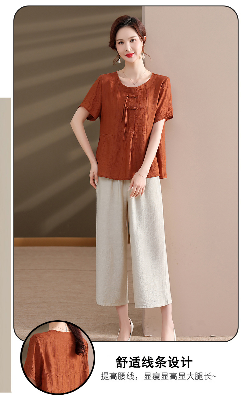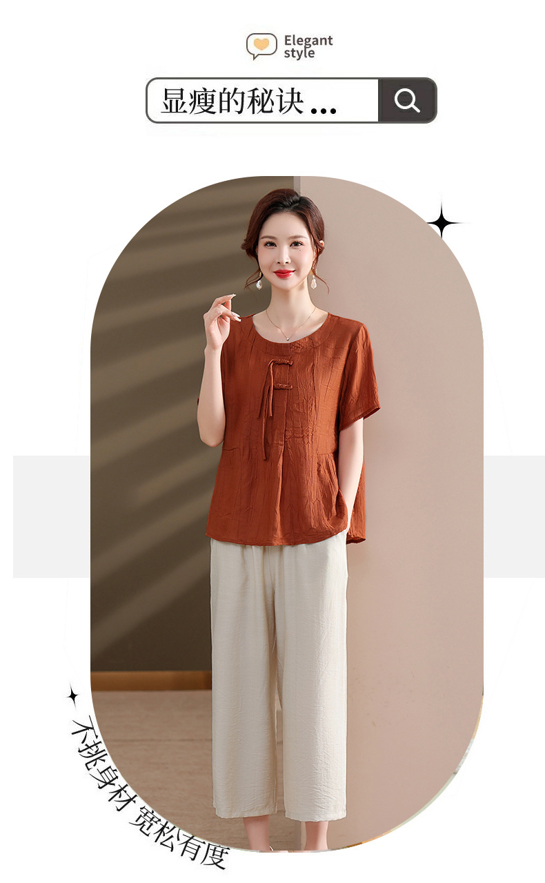 2024新款妈妈夏装休闲居家套装中年女中式圆领T恤衫中老年两件套