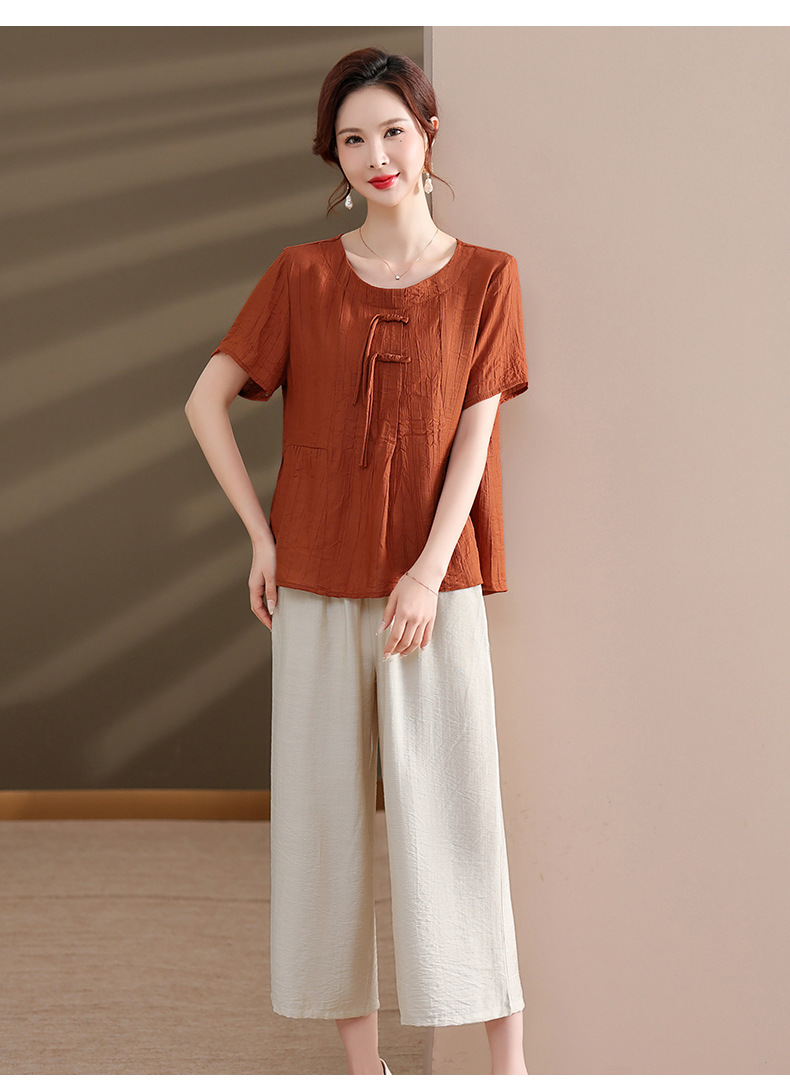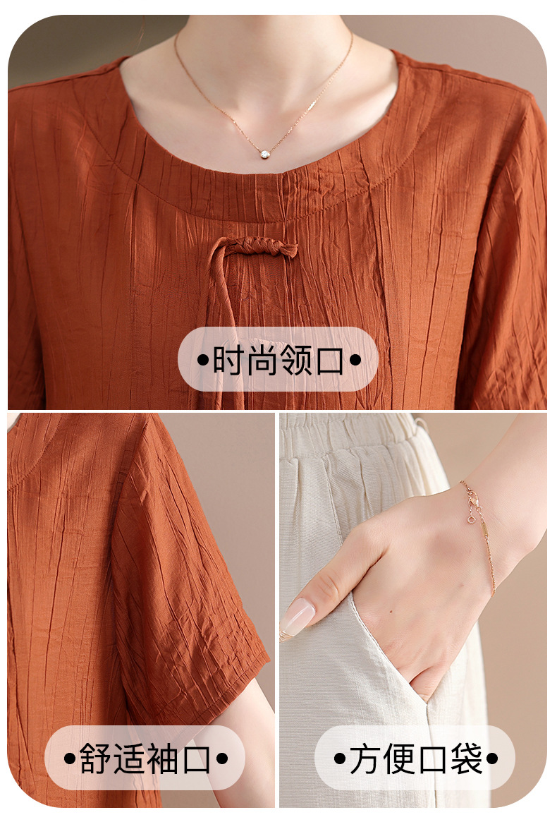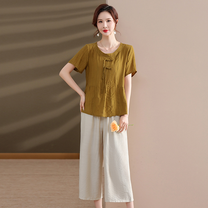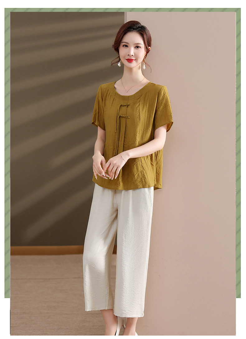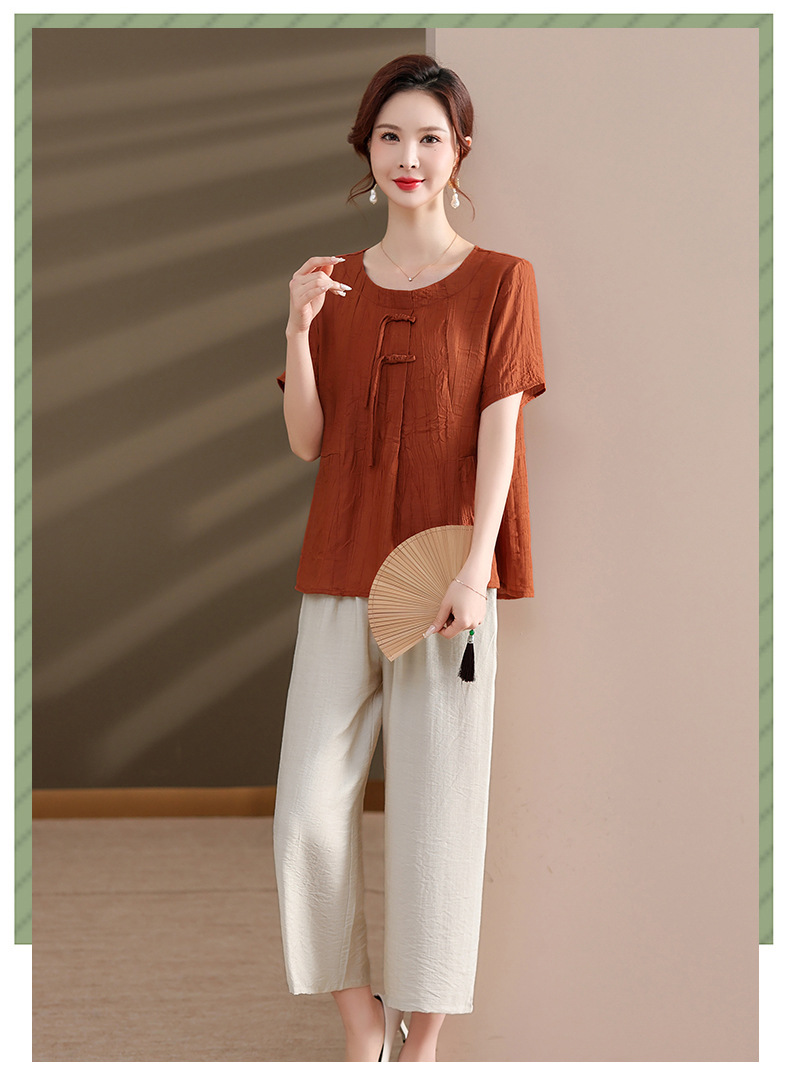 2024新款妈妈夏装休闲居家套装中年女中式圆领T恤衫中老年两件套