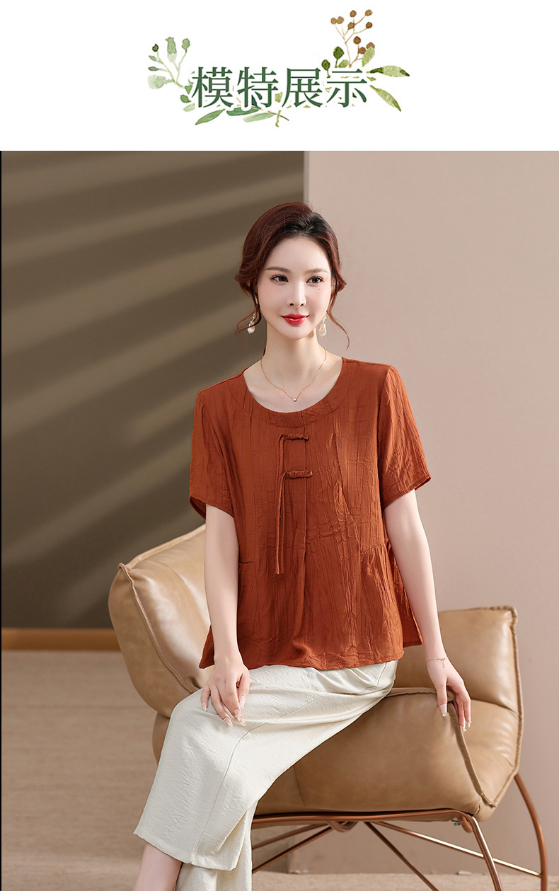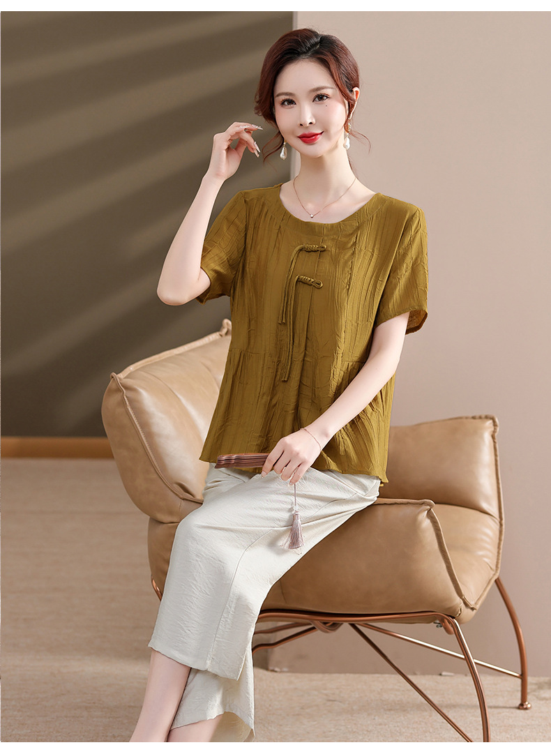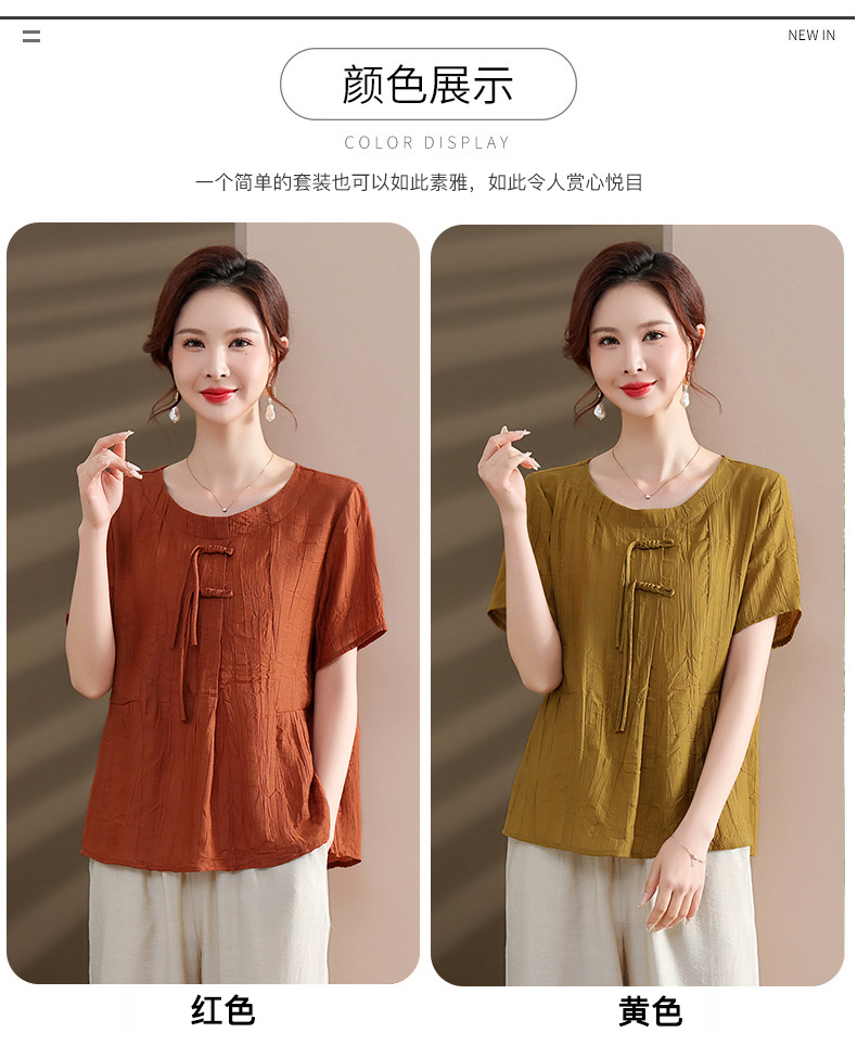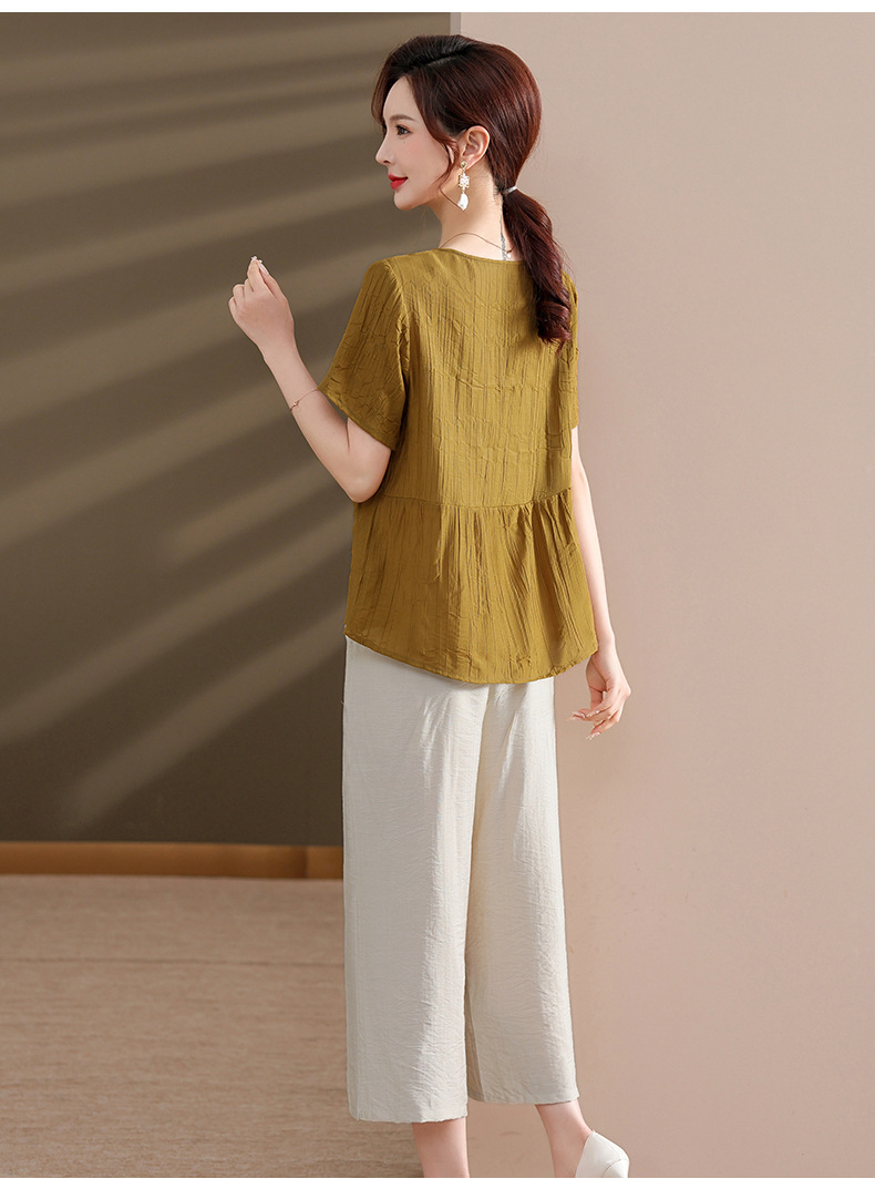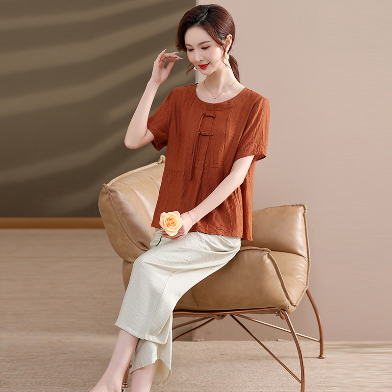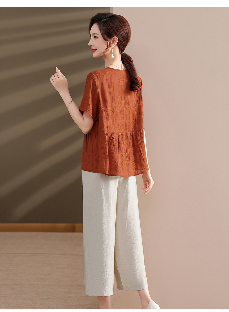 2024新款妈妈夏装休闲居家套装中年女中式圆领T恤衫中老年两件套