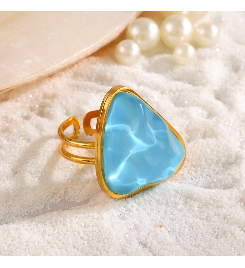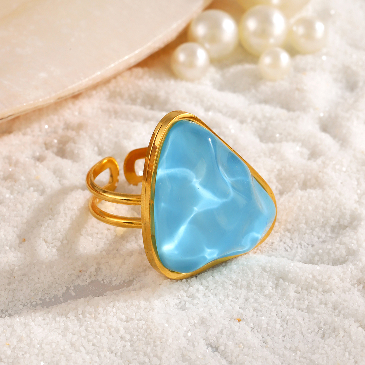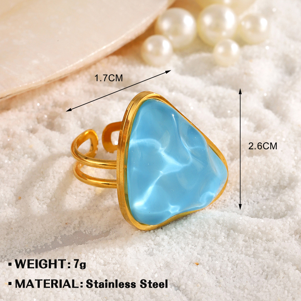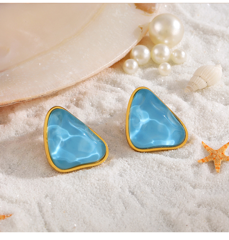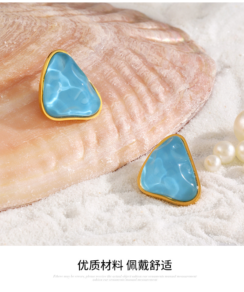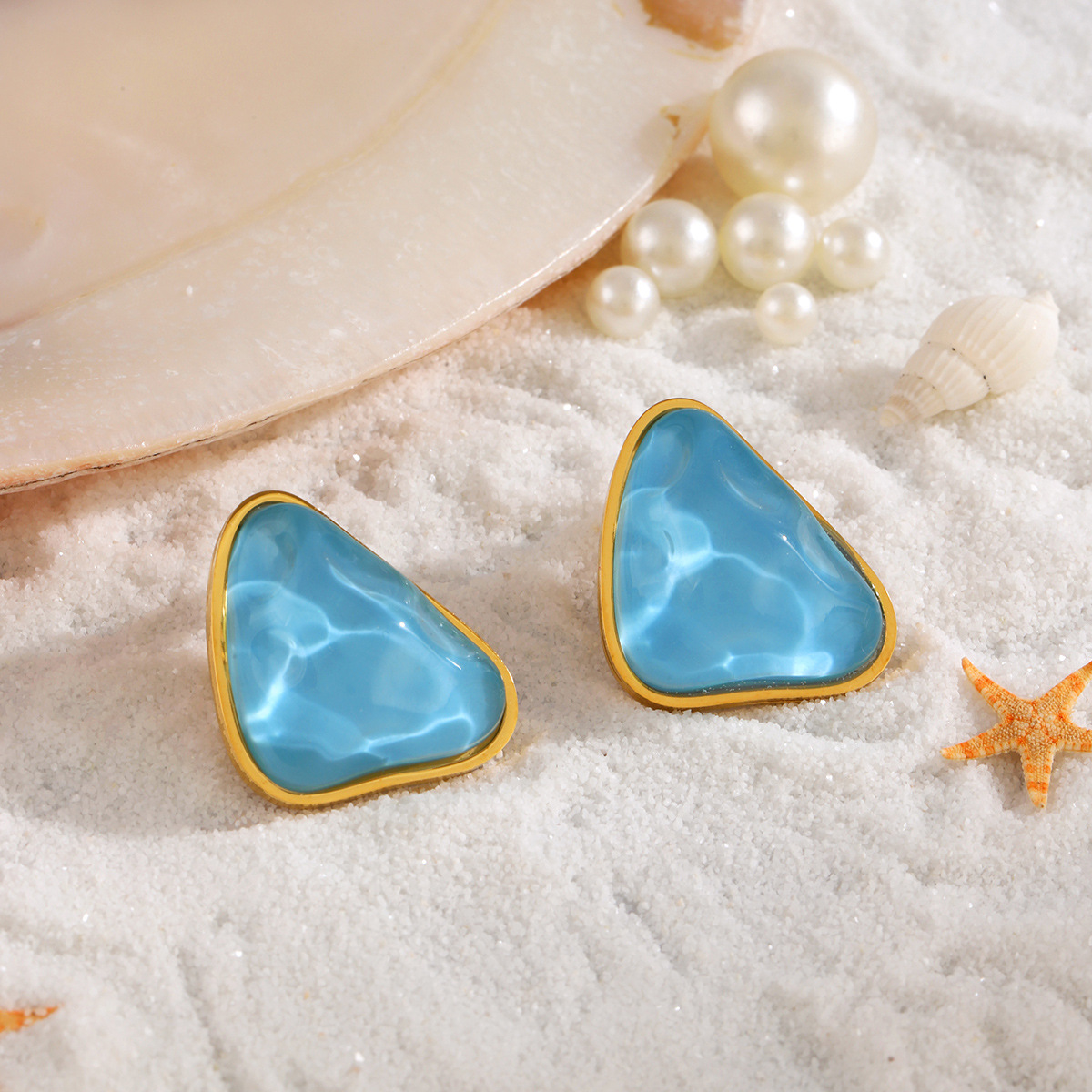 三角形不锈钢耳环戒指海滩度假风个性蓝色波光粼粼饰品套装女批发