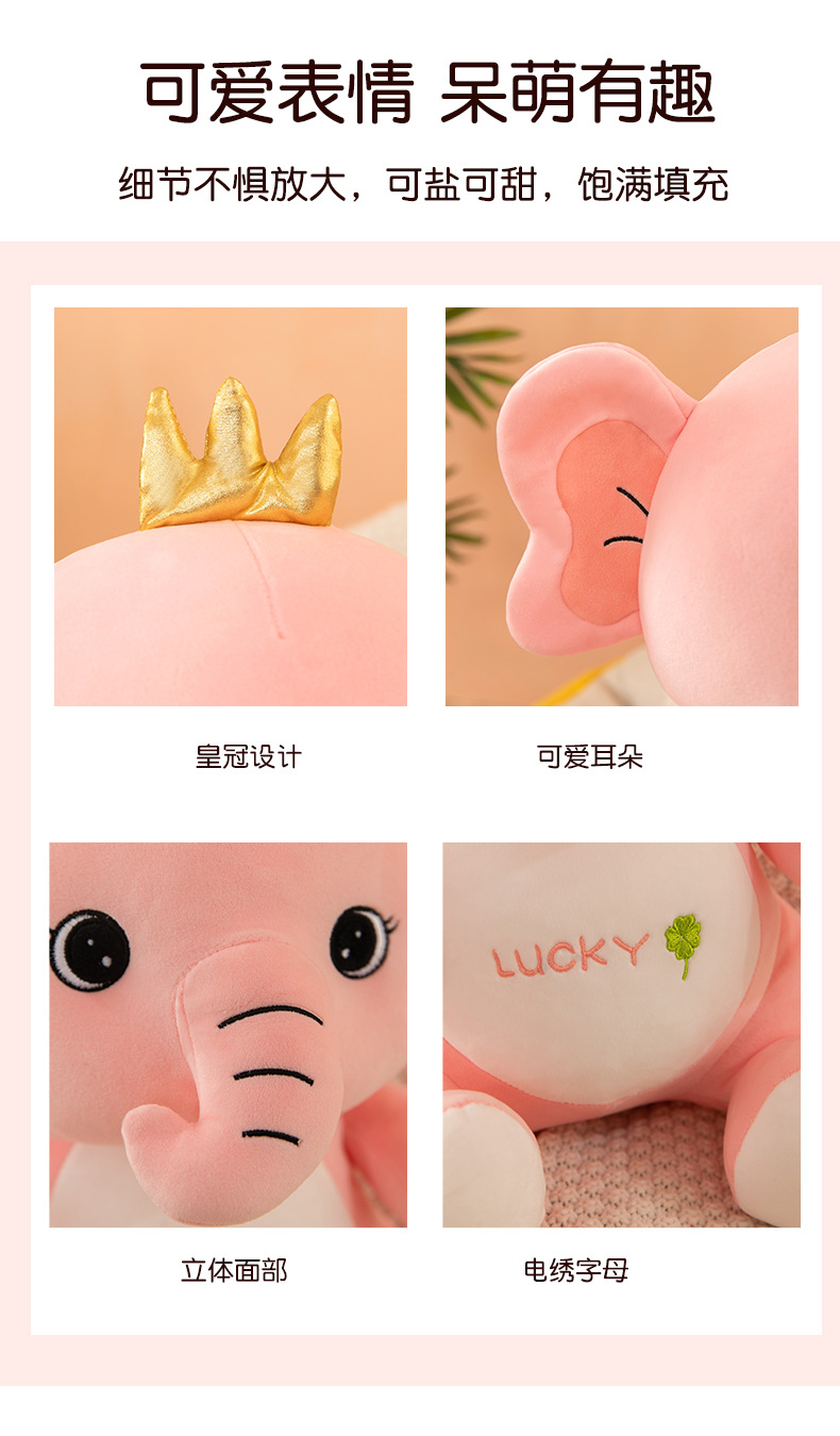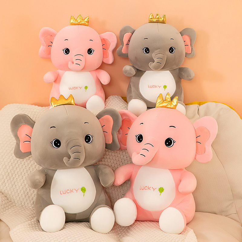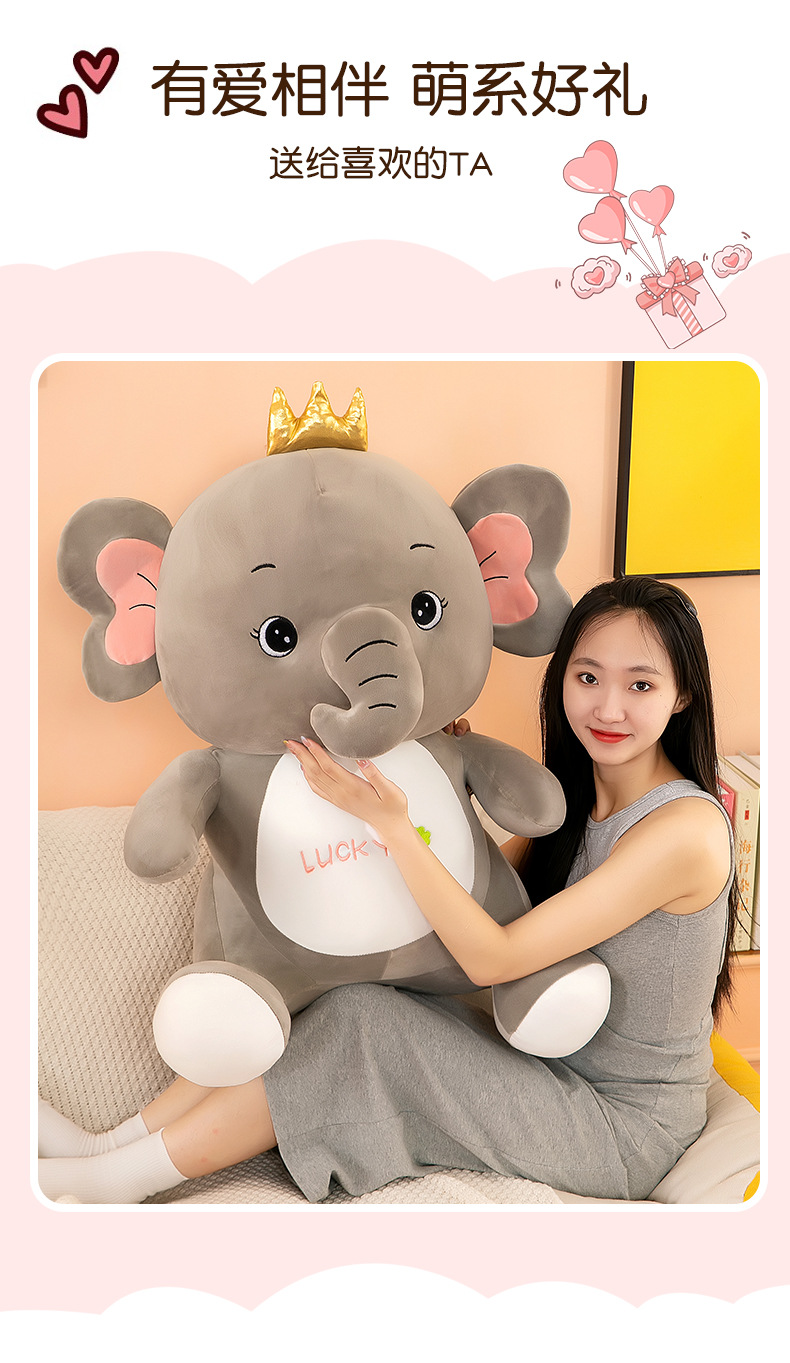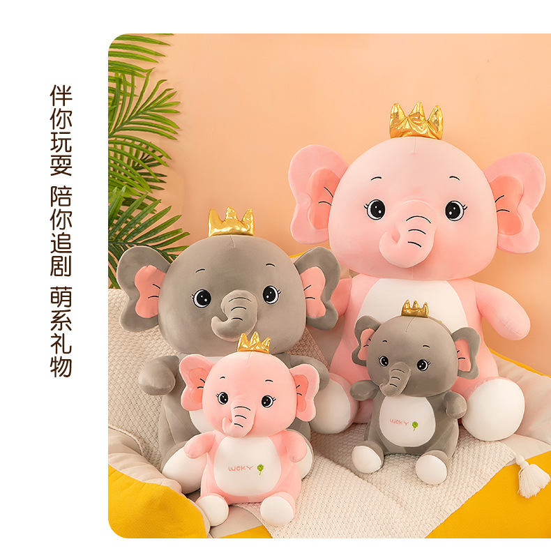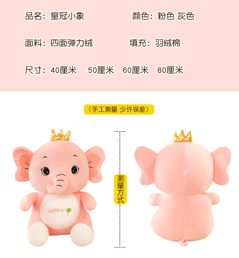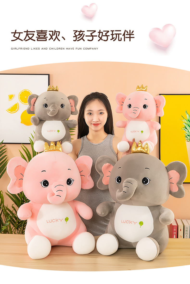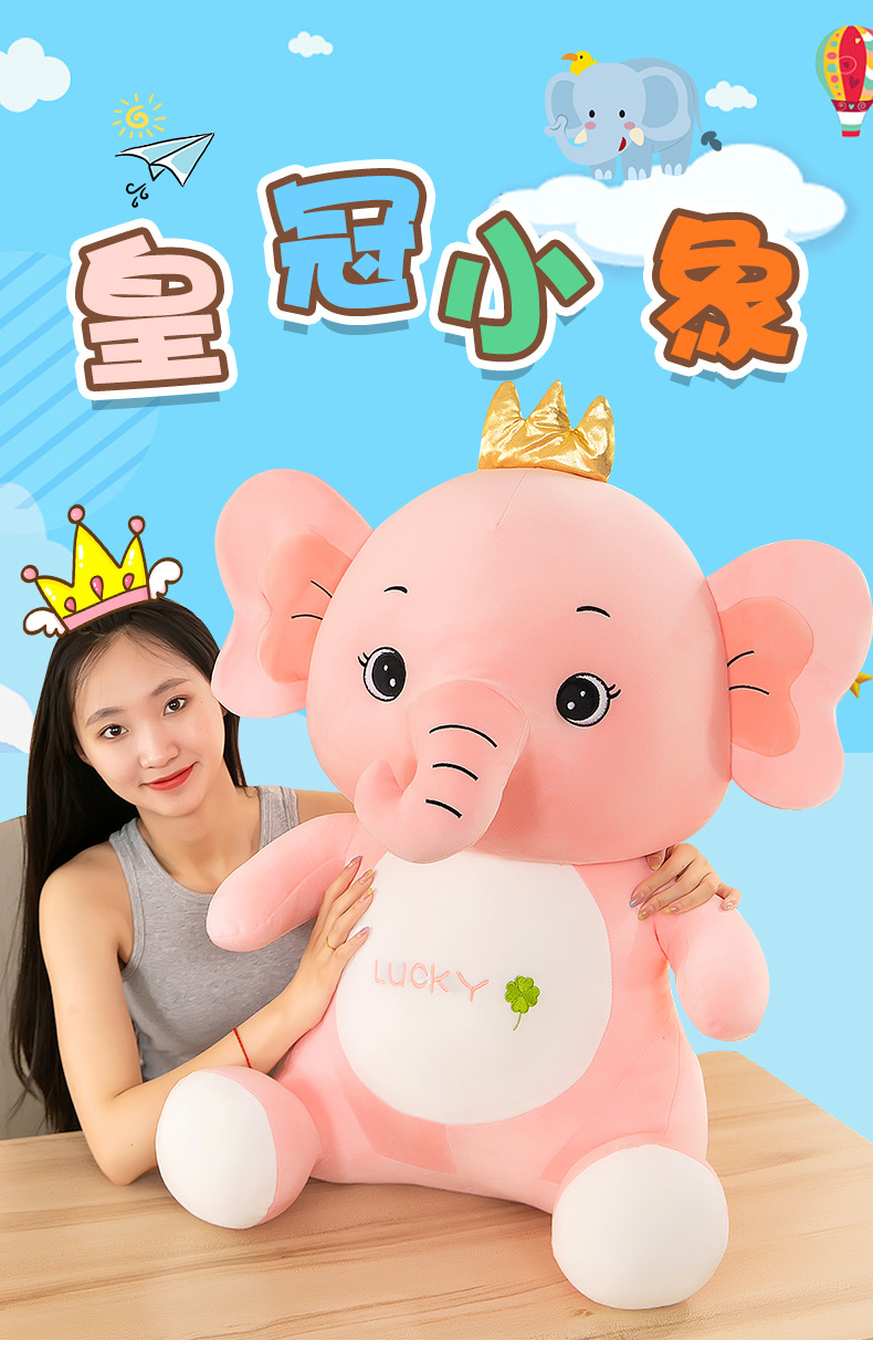 新款皇冠小象公仔可爱坐姿天使大象抱枕儿童毛绒玩具礼物送女孩