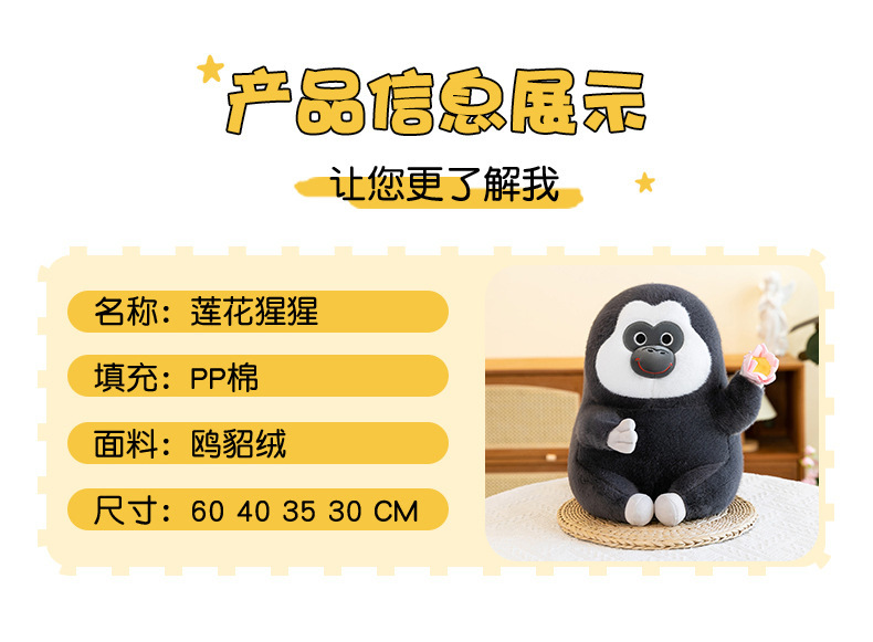 丑萌莲花大猩猩毛绒玩具公仔网红白面猴子玩偶儿童睡觉布娃娃抱枕