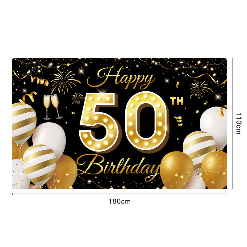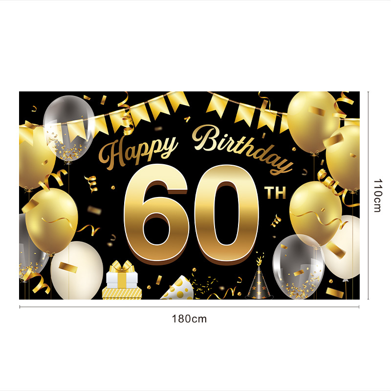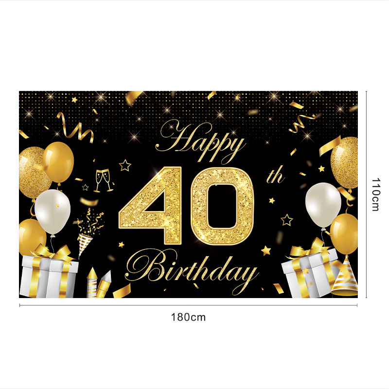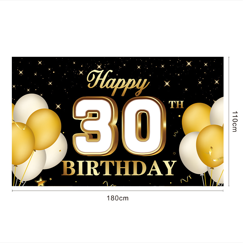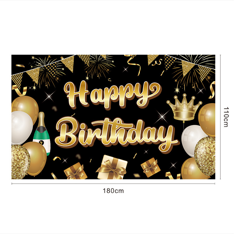 新款黑金主题派对装饰横幅挂旗生日快乐拍摄背景布