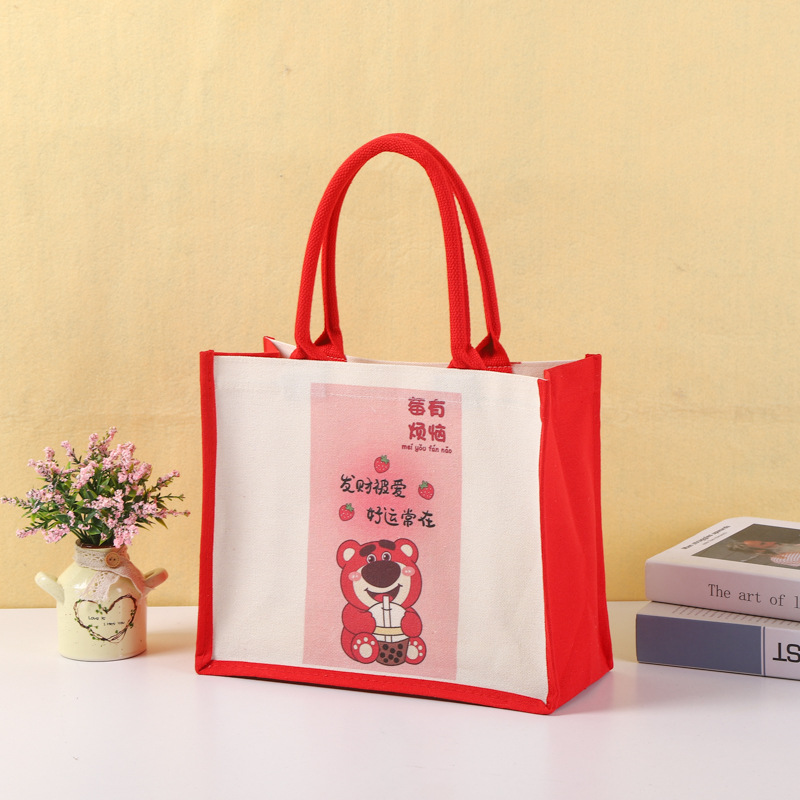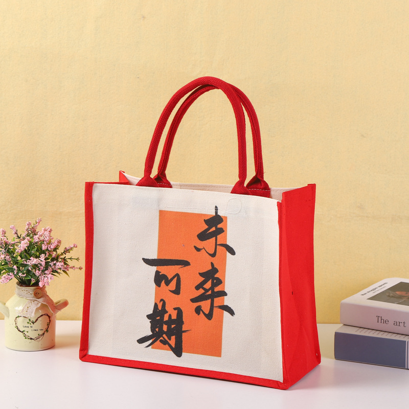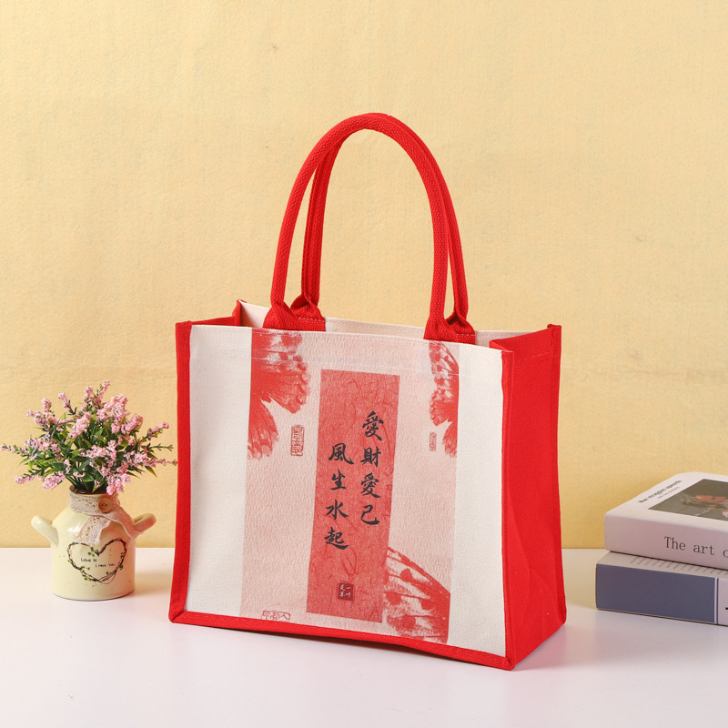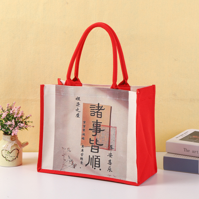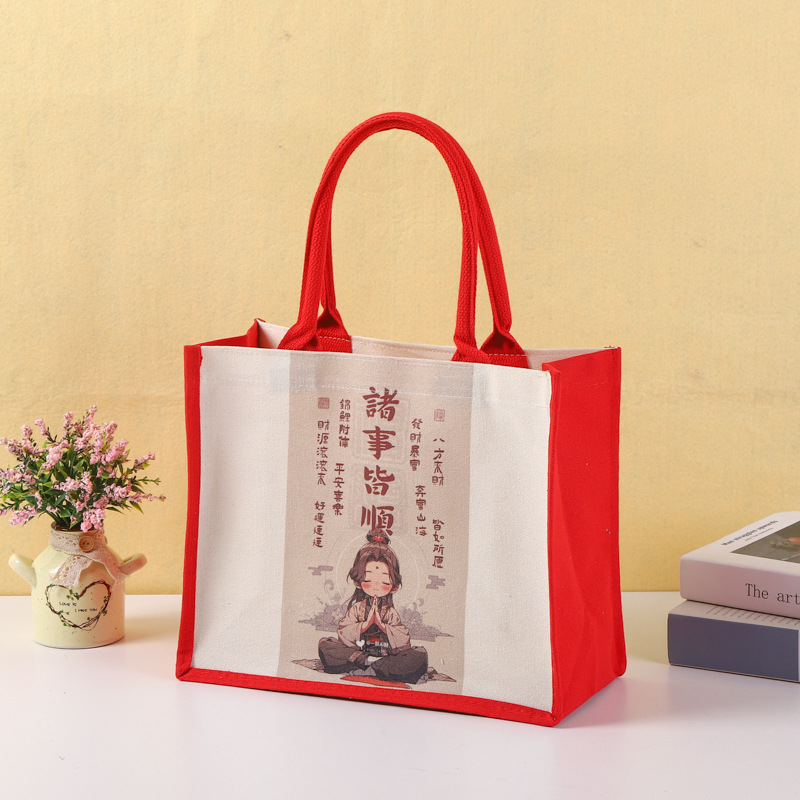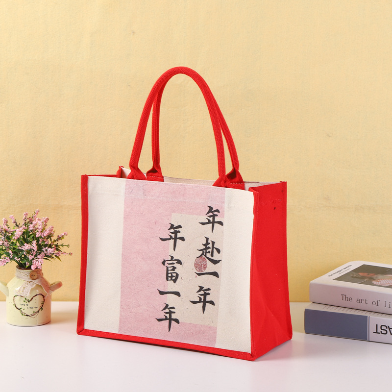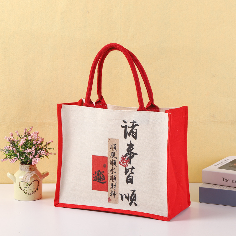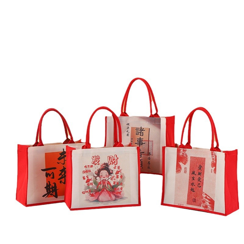 厂家批发手提帆布袋可加印logo帆布包喜庆覆膜托特包量大从优