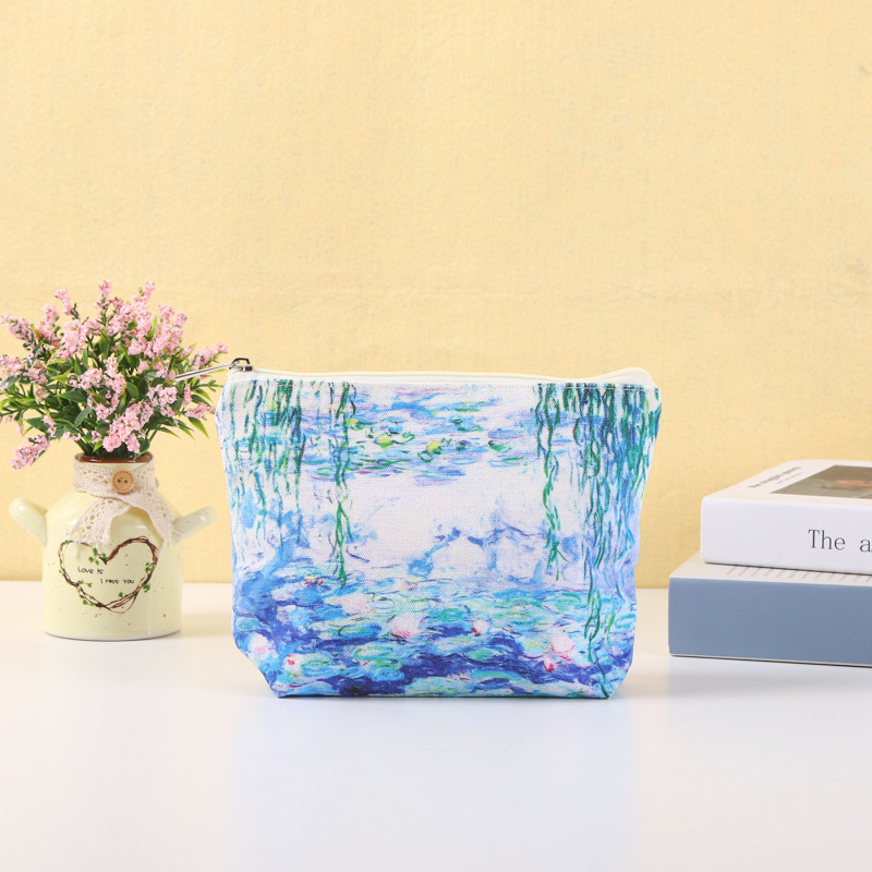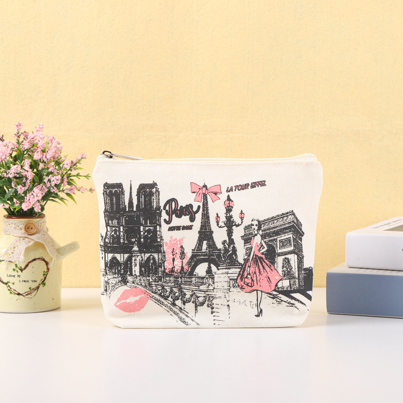 厂家新款简约帆布笔袋化妆包可印图案logo拉链零钱包批发直供