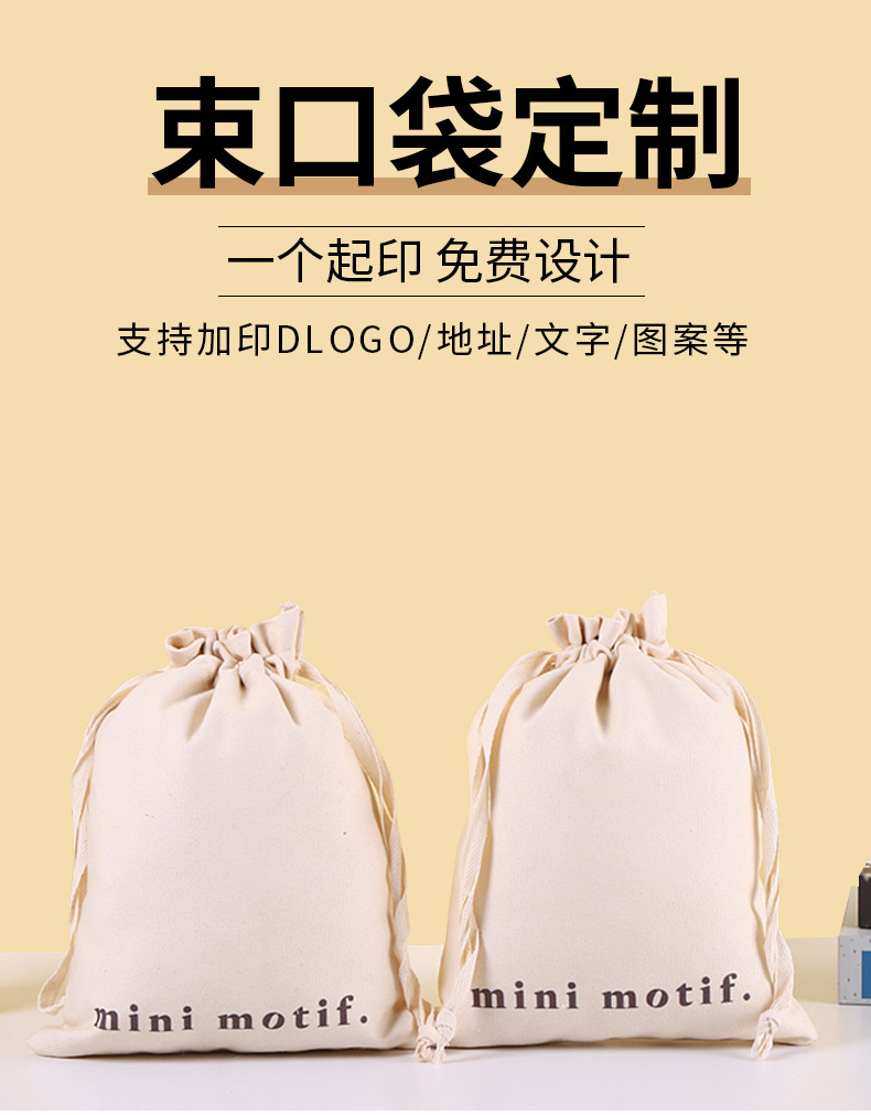 厂家批发简约束口袋时尚帆布购物袋来图可印LOGO图案量大从优