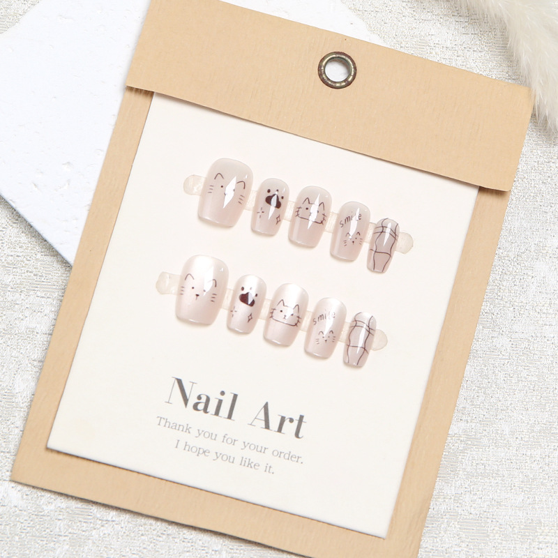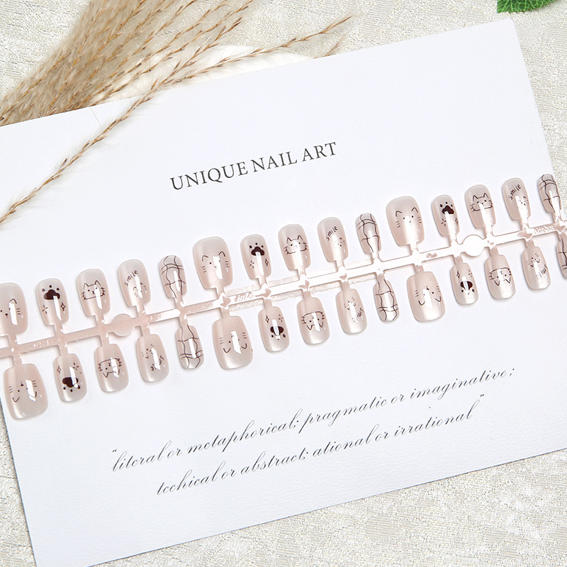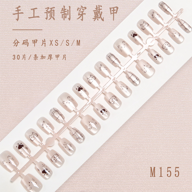简约可爱猫咪穿戴假指甲夏季清透高级感指甲贴30片分码手工预制甲