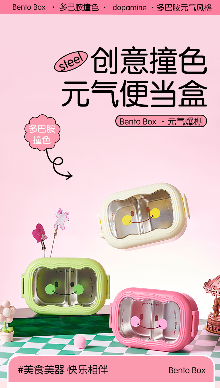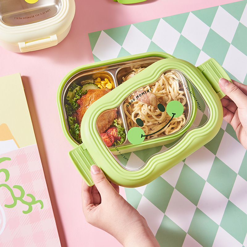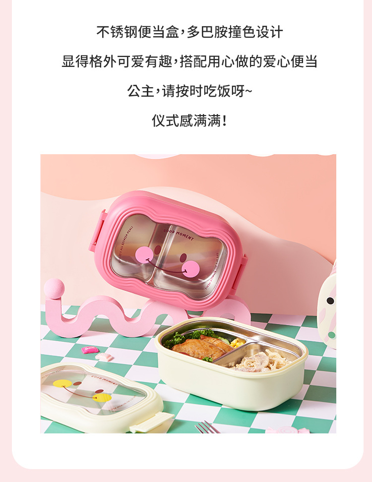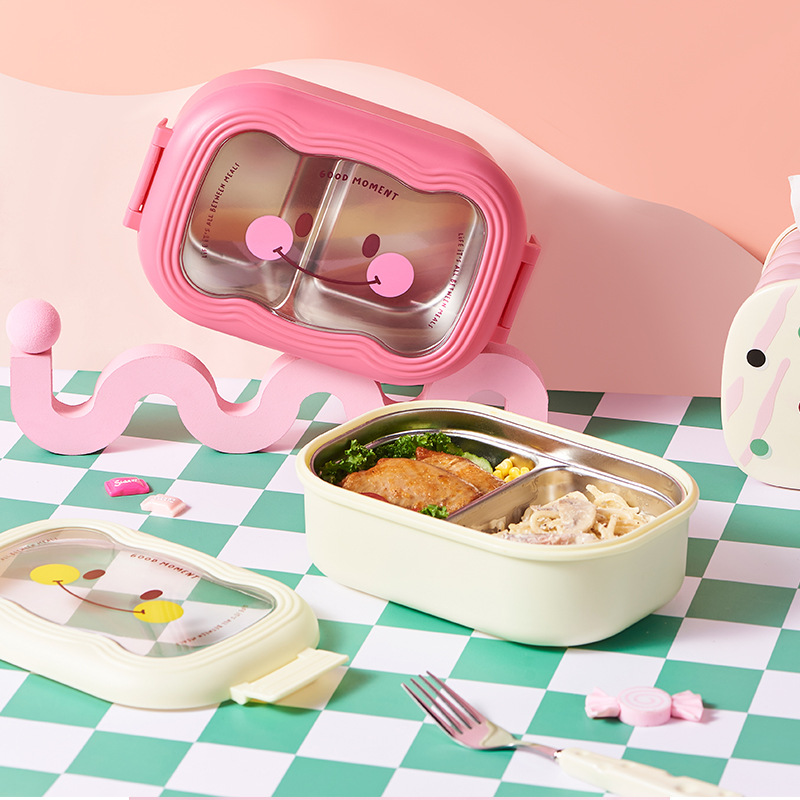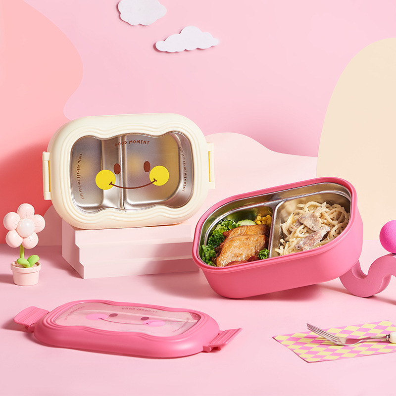 卡通笑脸大容量饭盒不锈钢保温便当盒便携分格学生上班族午餐盒