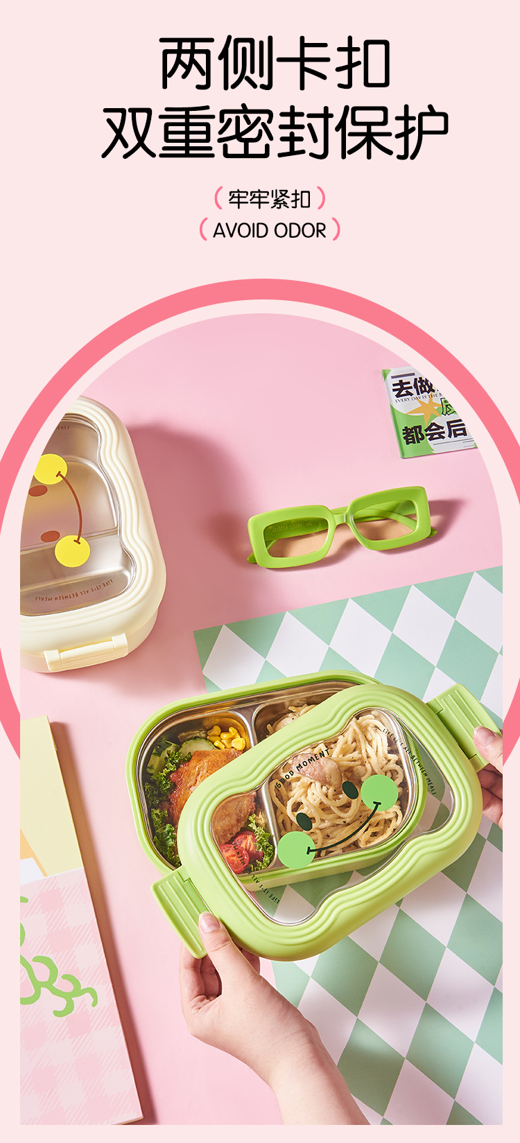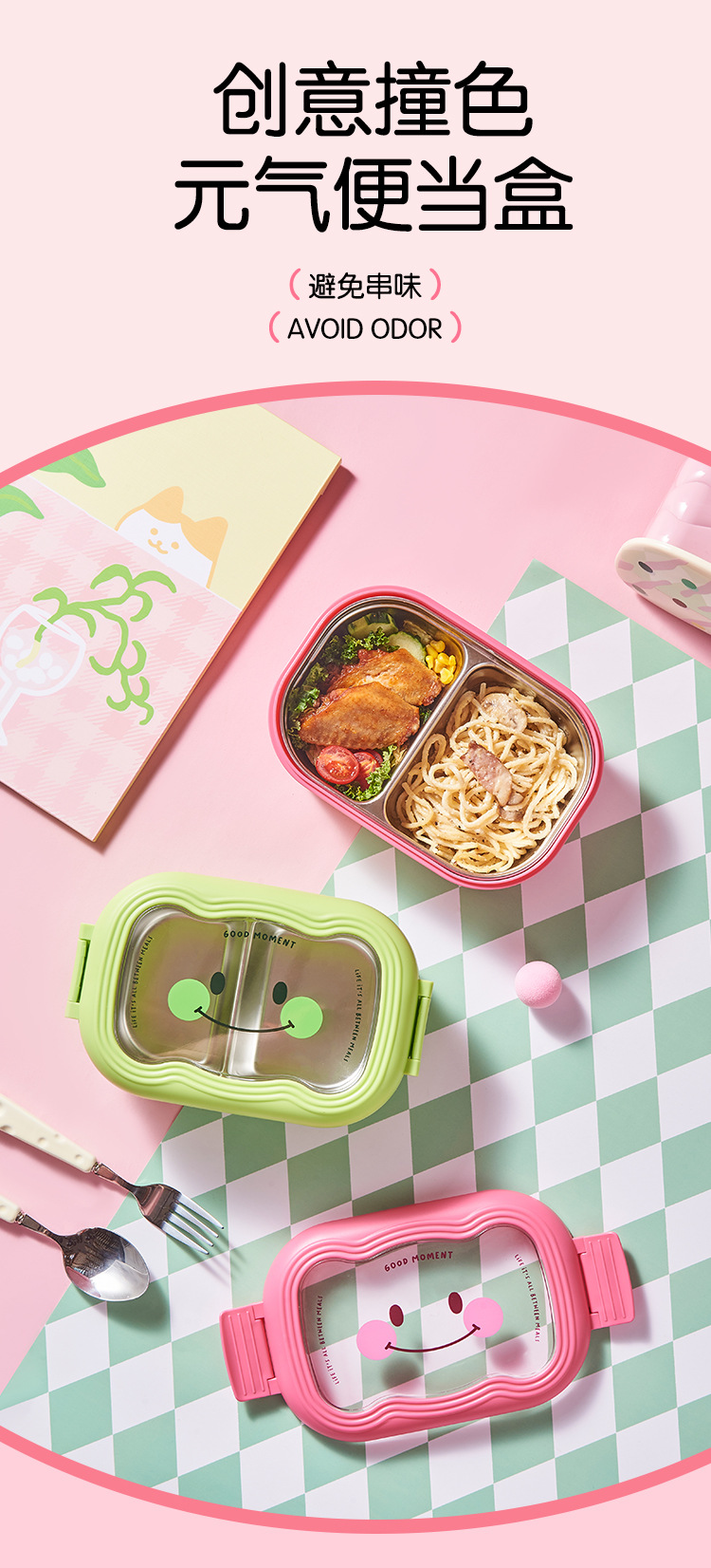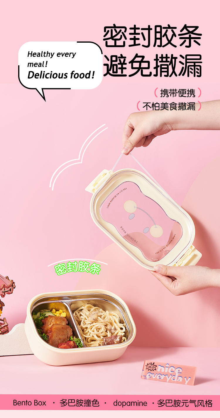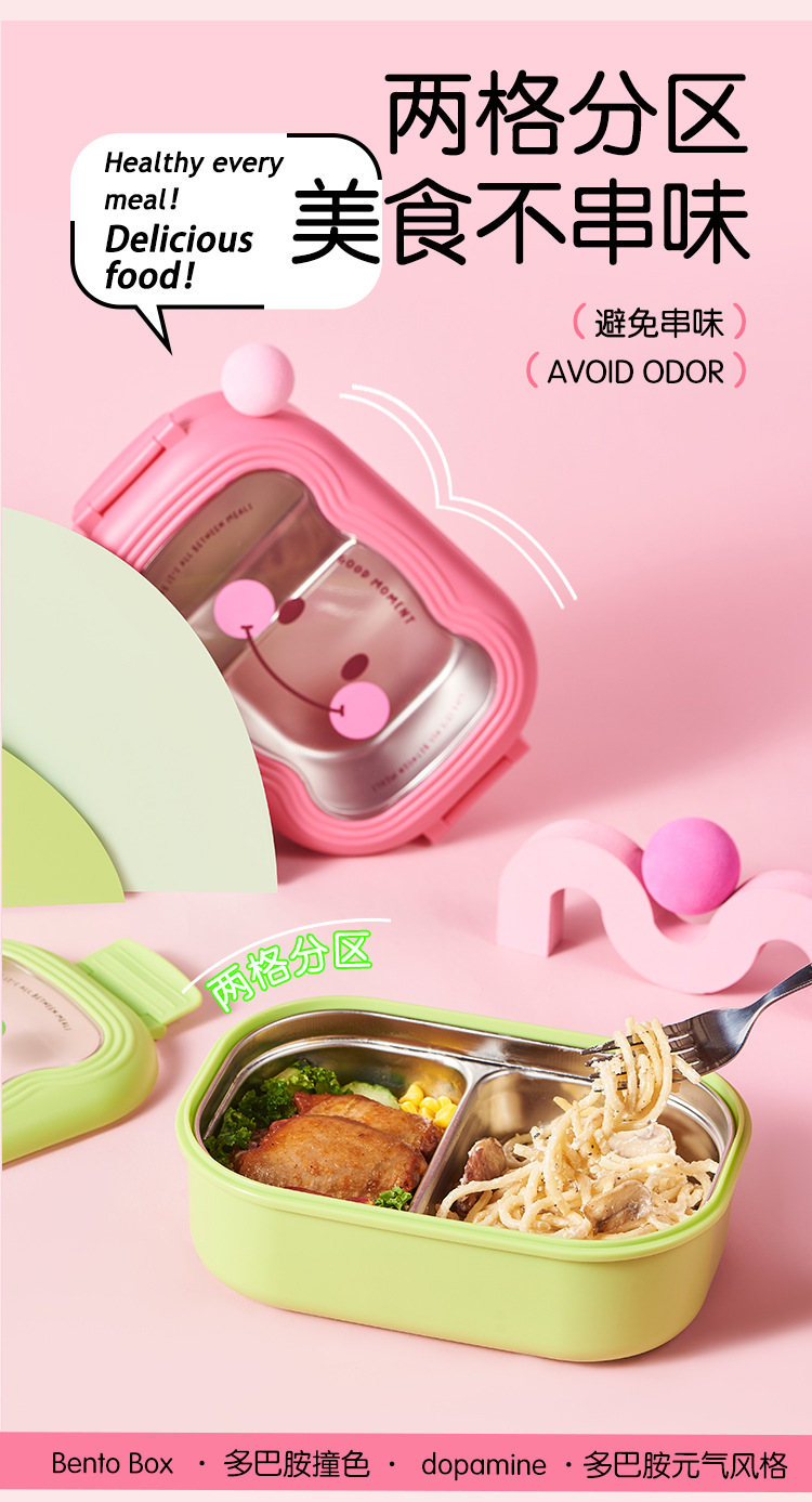 卡通笑脸大容量饭盒不锈钢保温便当盒便携分格学生上班族午餐盒