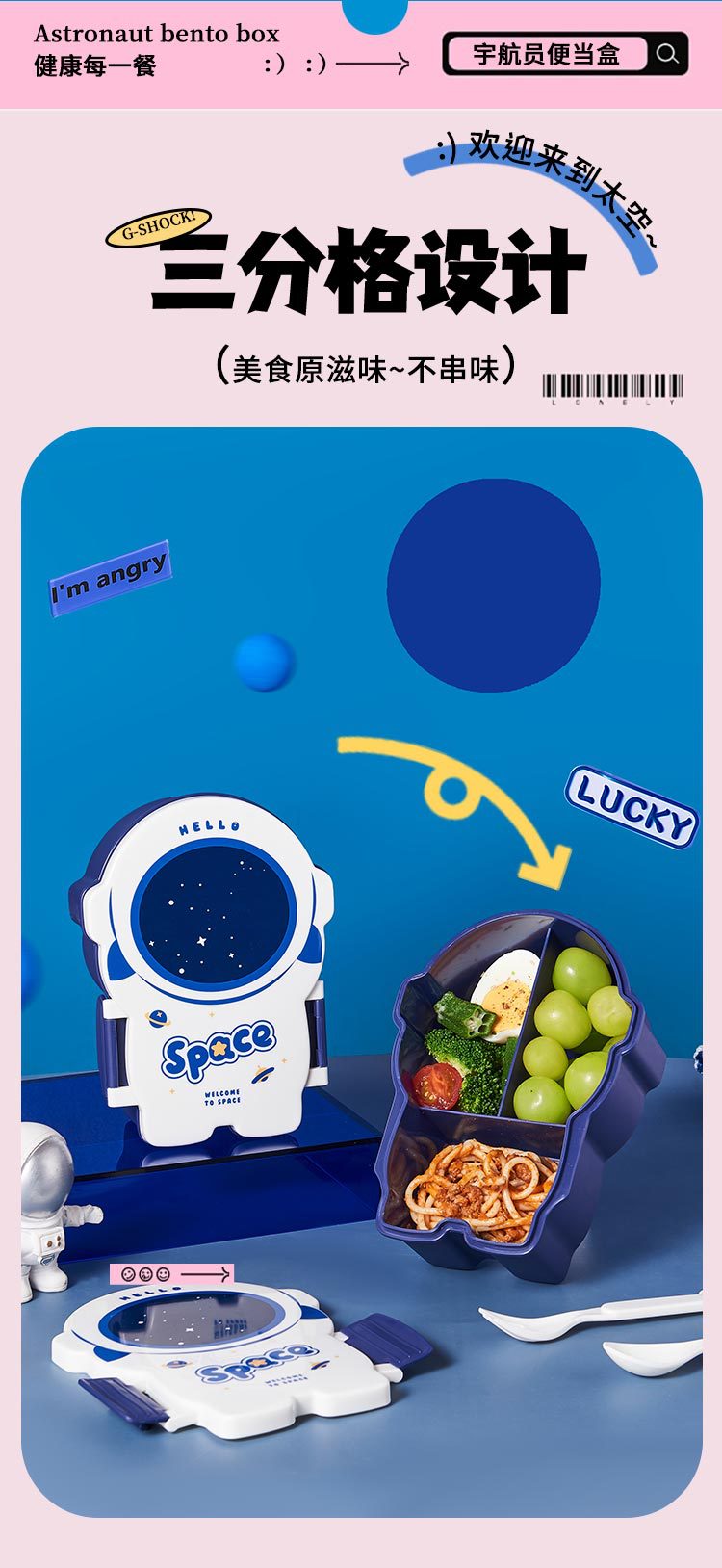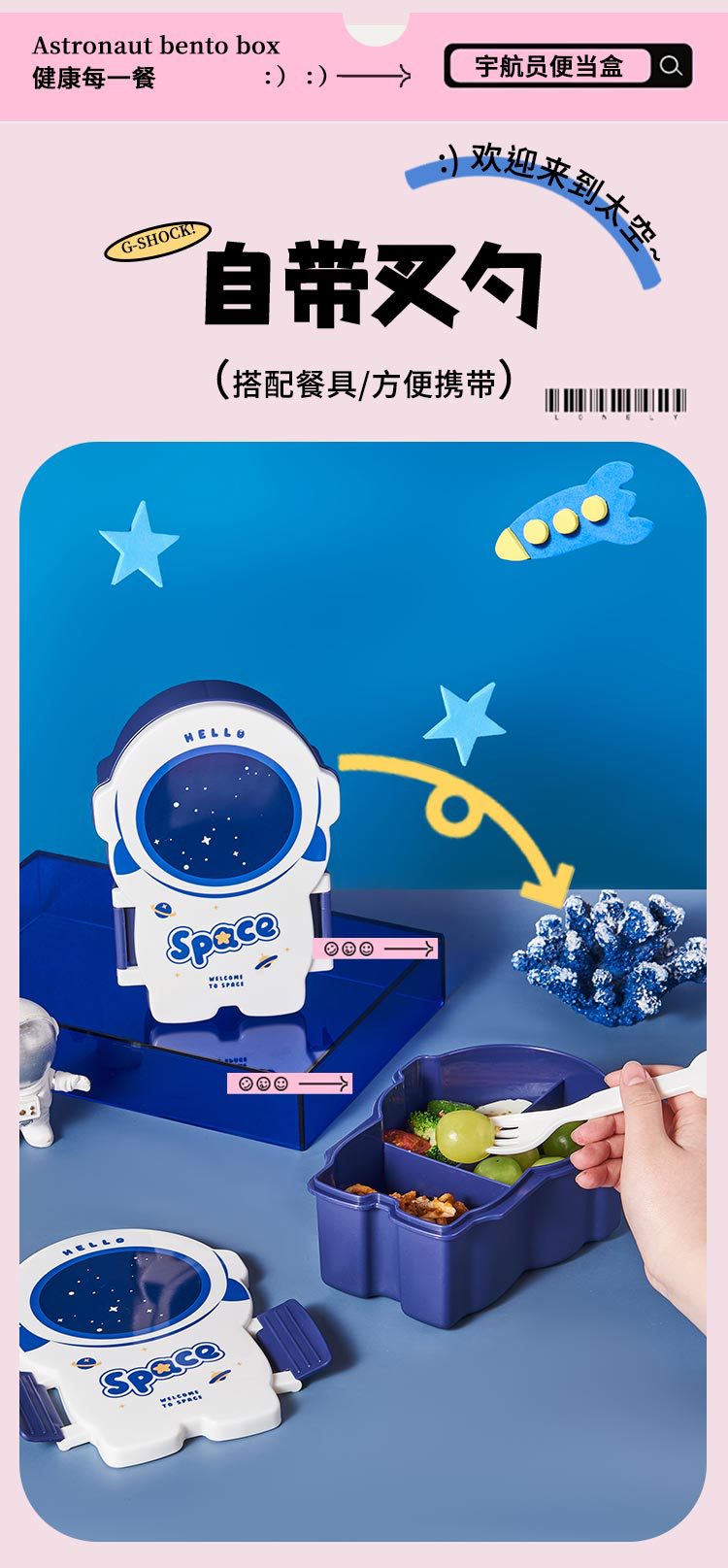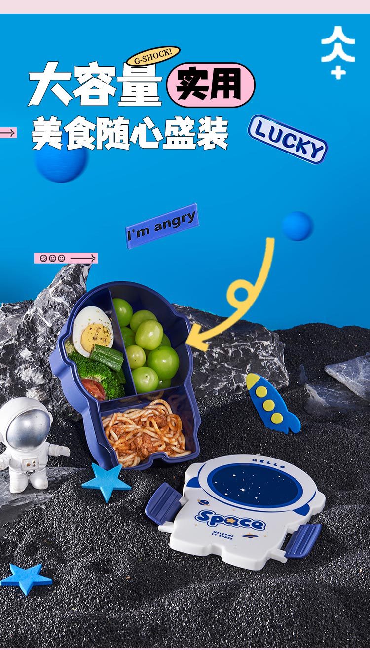 小男孩太空人保鲜盒饭盒卡通宇航员学生儿童上班族分格便当餐盒