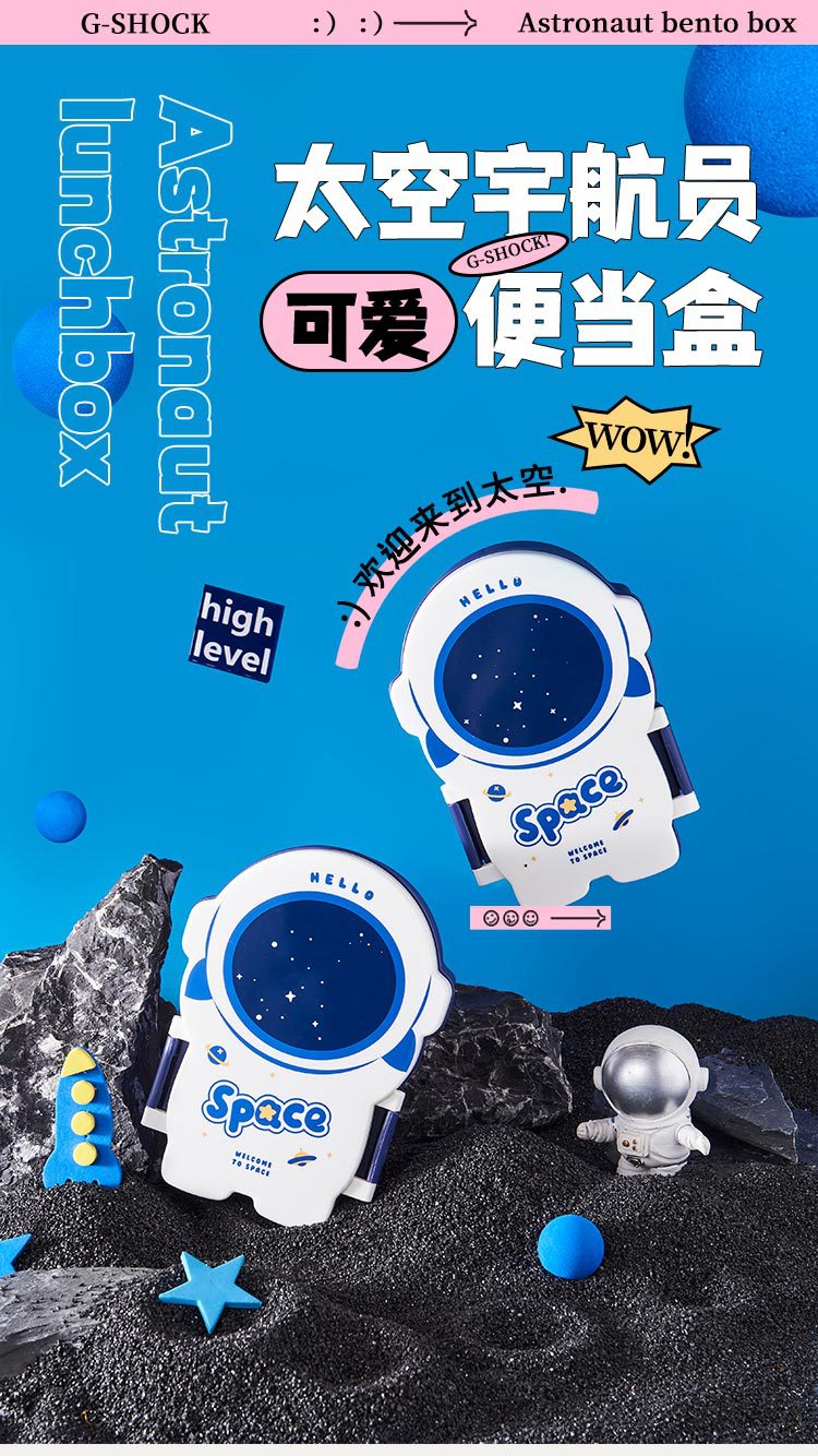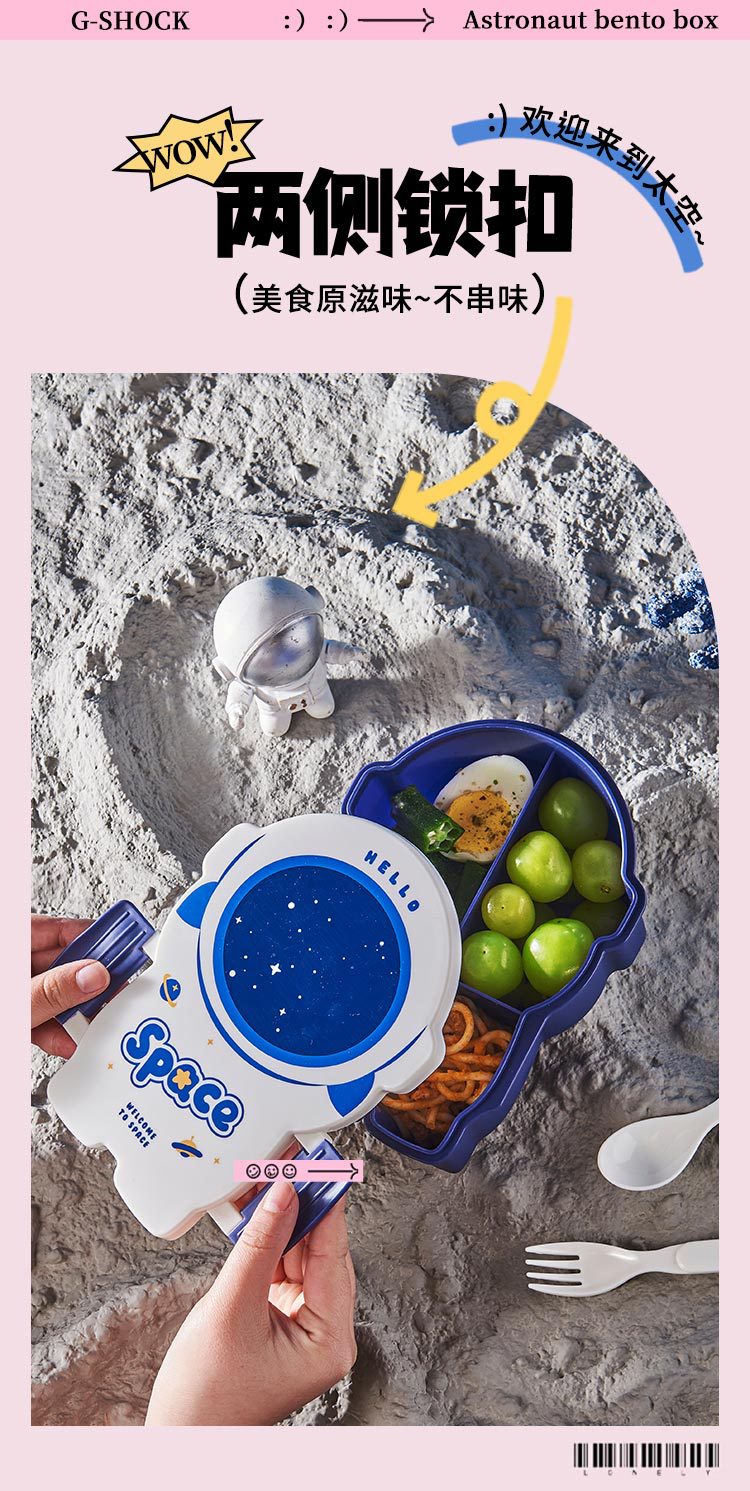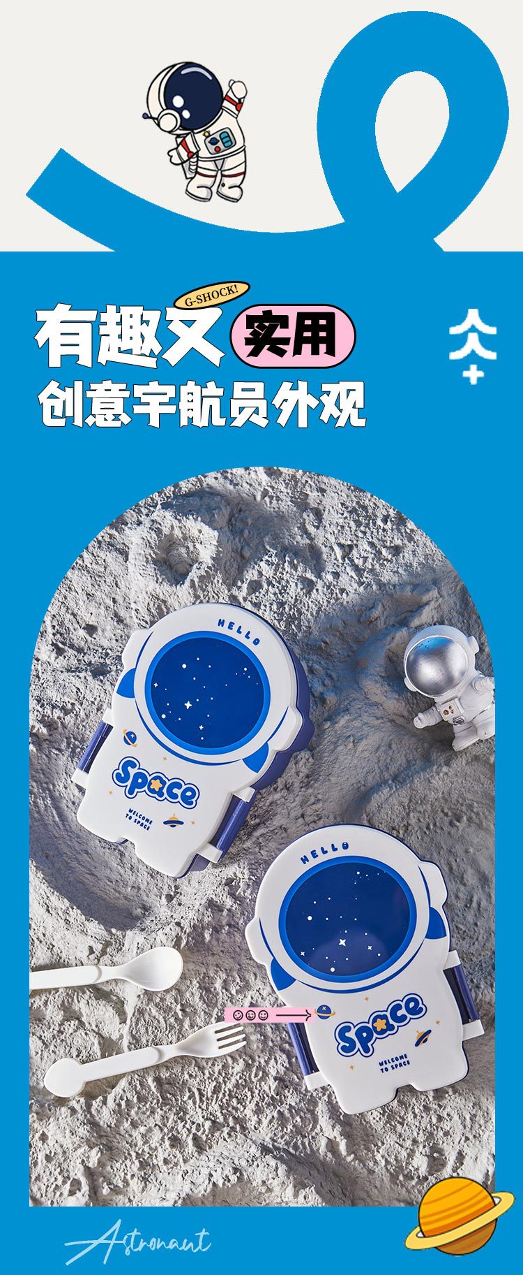 小男孩太空人保鲜盒饭盒卡通宇航员学生儿童上班族分格便当餐盒