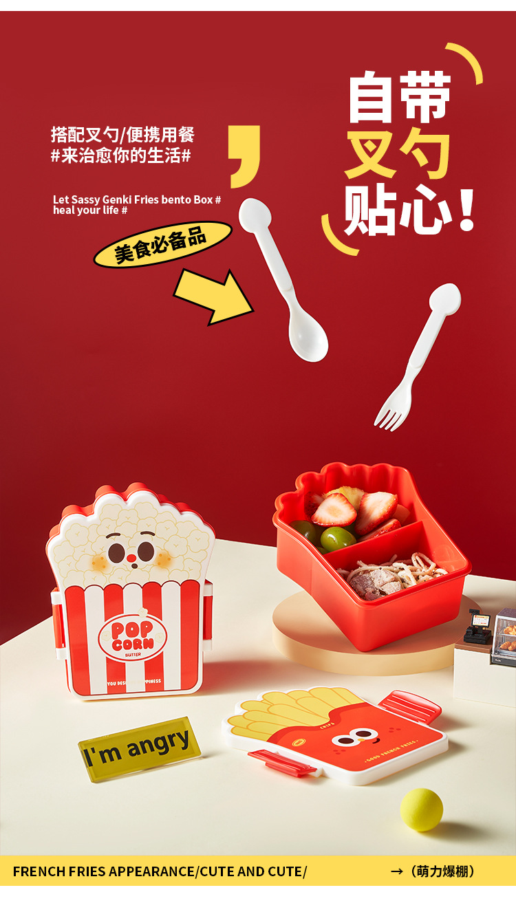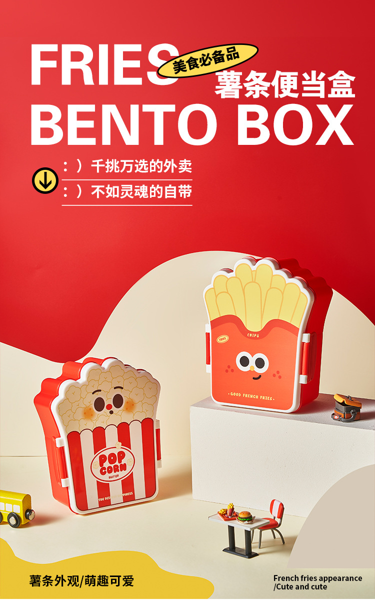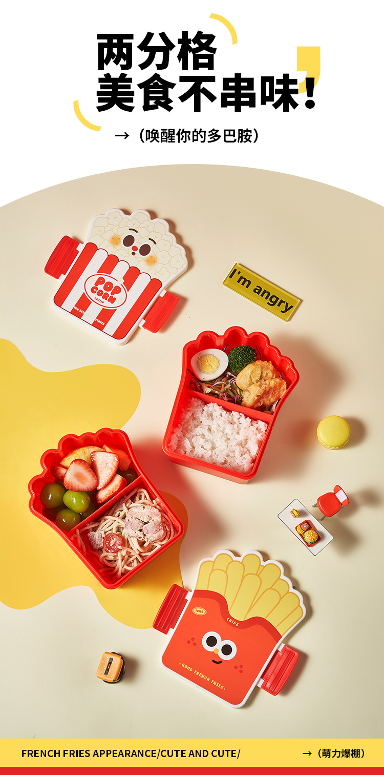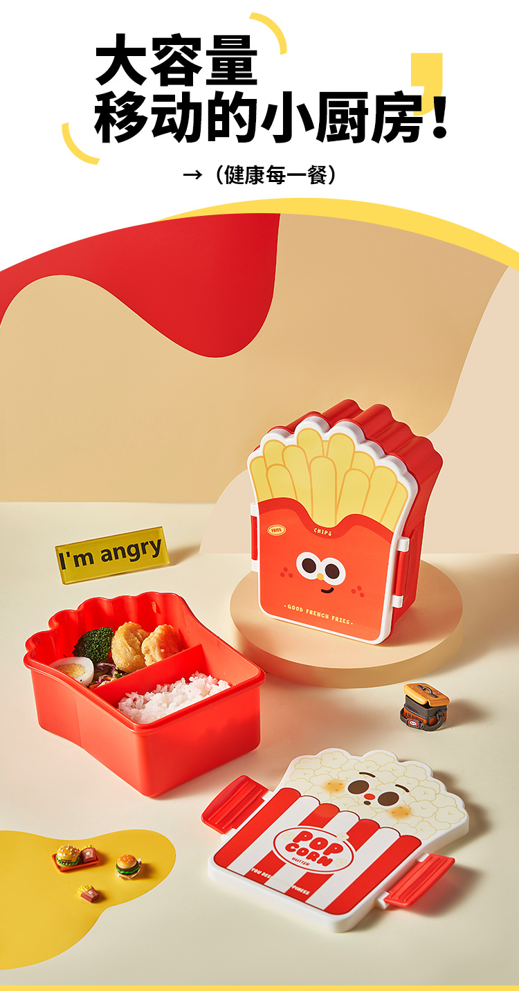 薯条爆米花饭盒小学生专用冬季上学上班族分格便当餐盒保鲜盒儿童