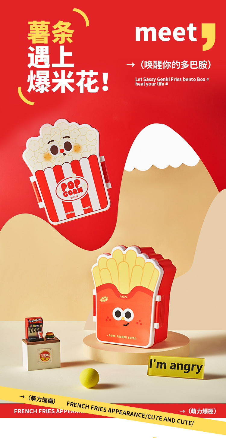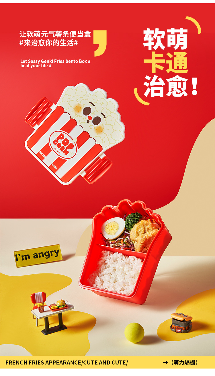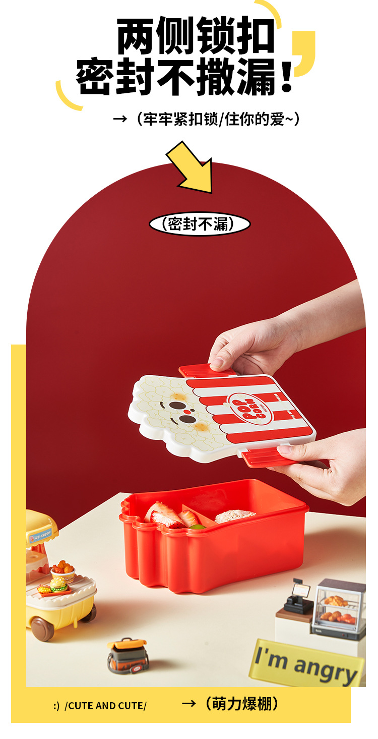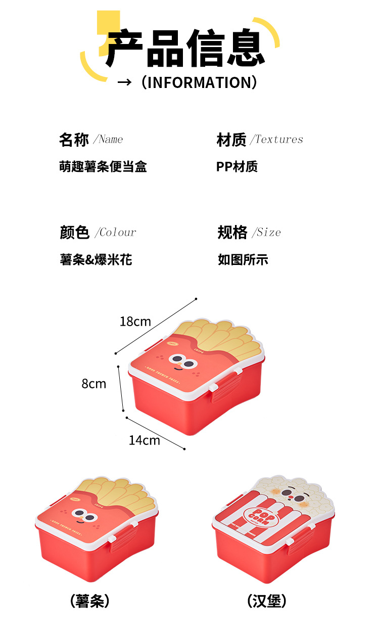 薯条爆米花饭盒小学生专用冬季上学上班族分格便当餐盒保鲜盒儿童