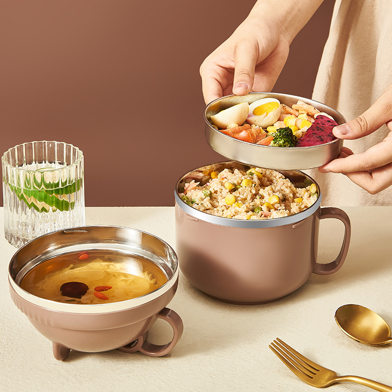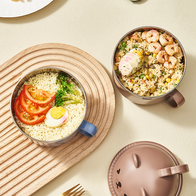 泡面碗带盖单个双层碗方便面碗日式饭盒家黄色小熊碗学生宿舍大号