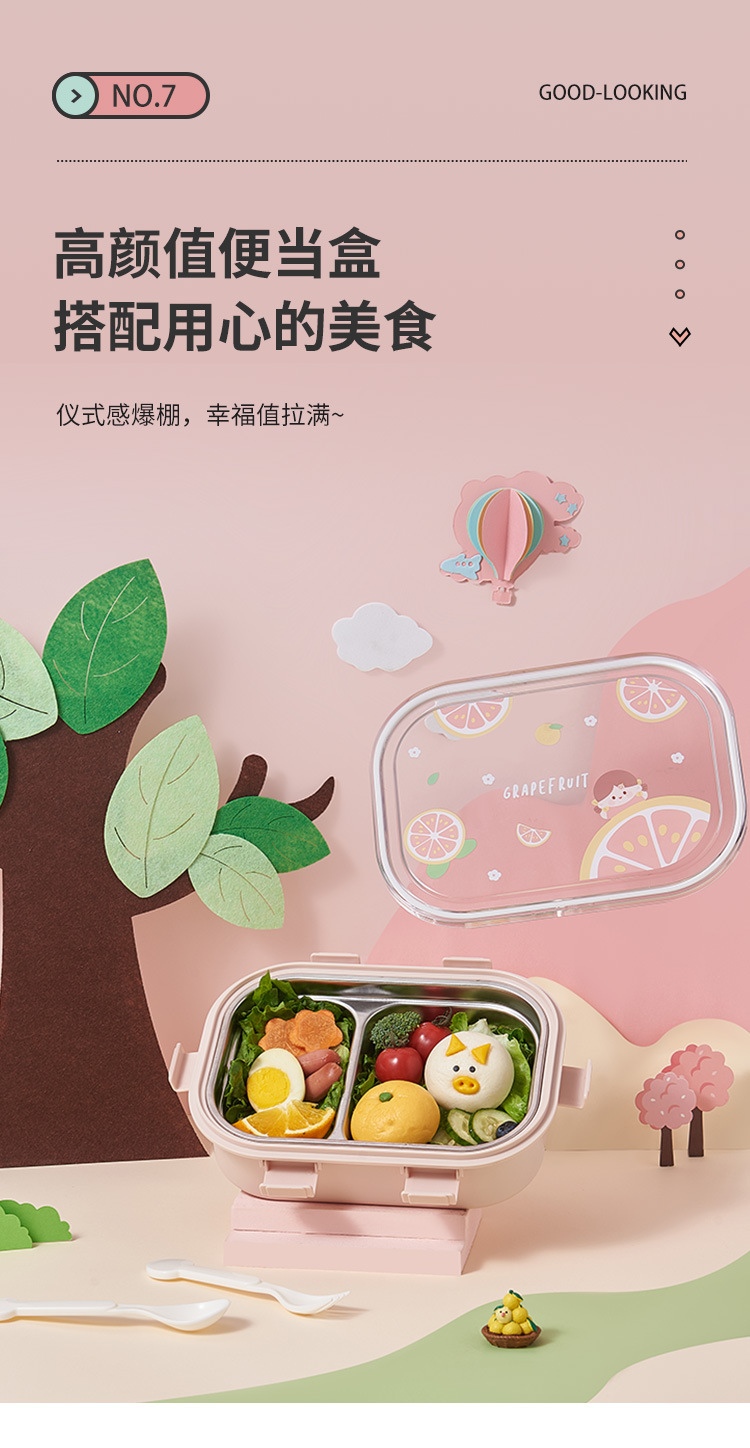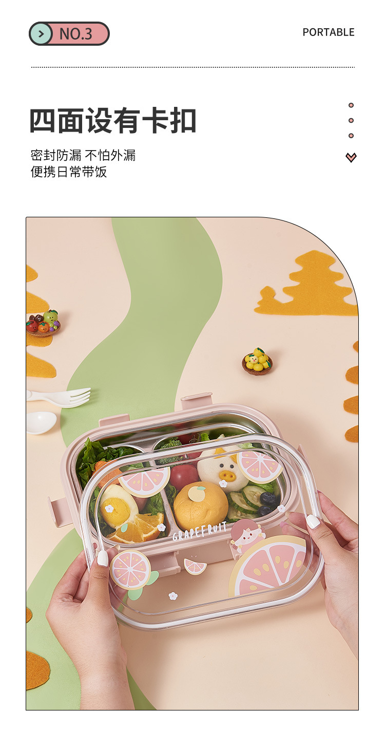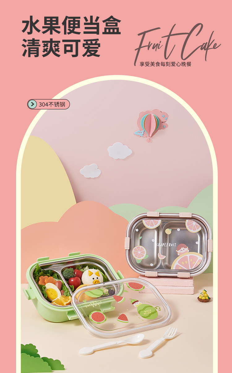 可爱分格不锈钢饭盒学生小学生专用带饭餐盒食堂打饭上班族便当盒