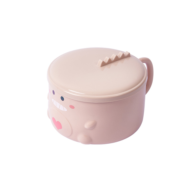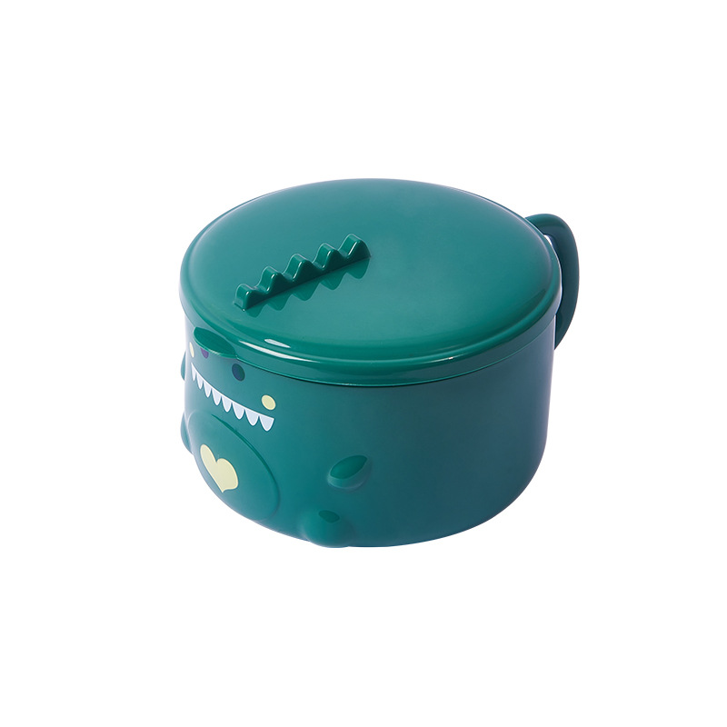 不锈钢饭碗学生食堂恐龙泡面碗带盖寝室防热宿舍用单耳卡通泡面碗