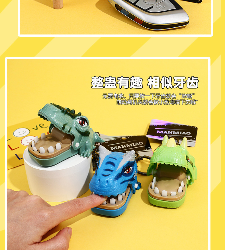 创意咬手恐龙玩具卡通汽车钥匙扣卡通萌趣书包挂件情侣小礼品批发