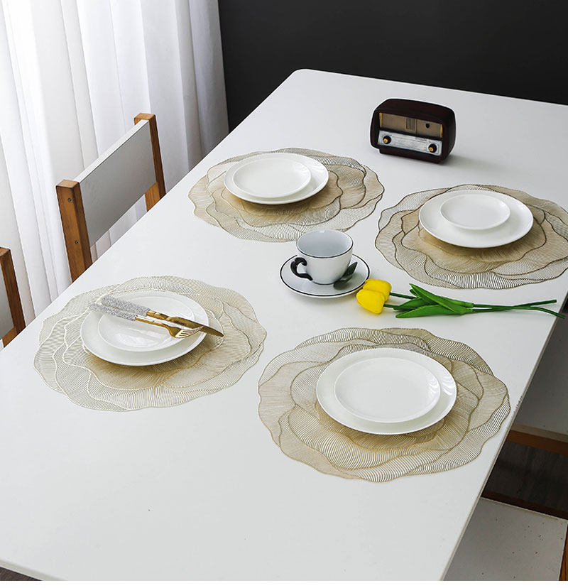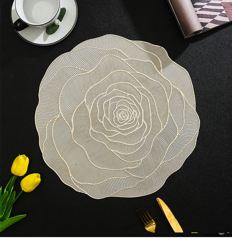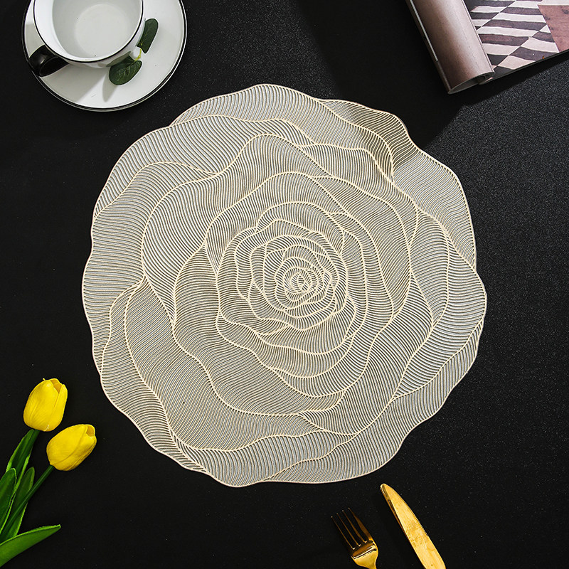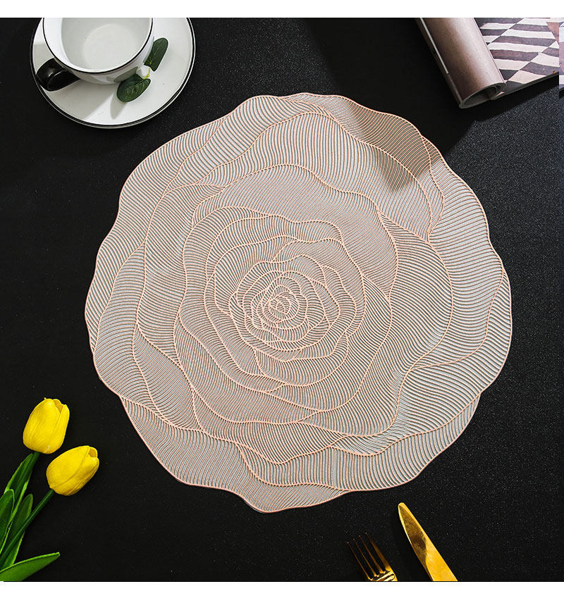 超高颜值餐垫餐桌垫pvc烫金隔热垫防烫餐具装饰花瓶垫防水玫瑰花