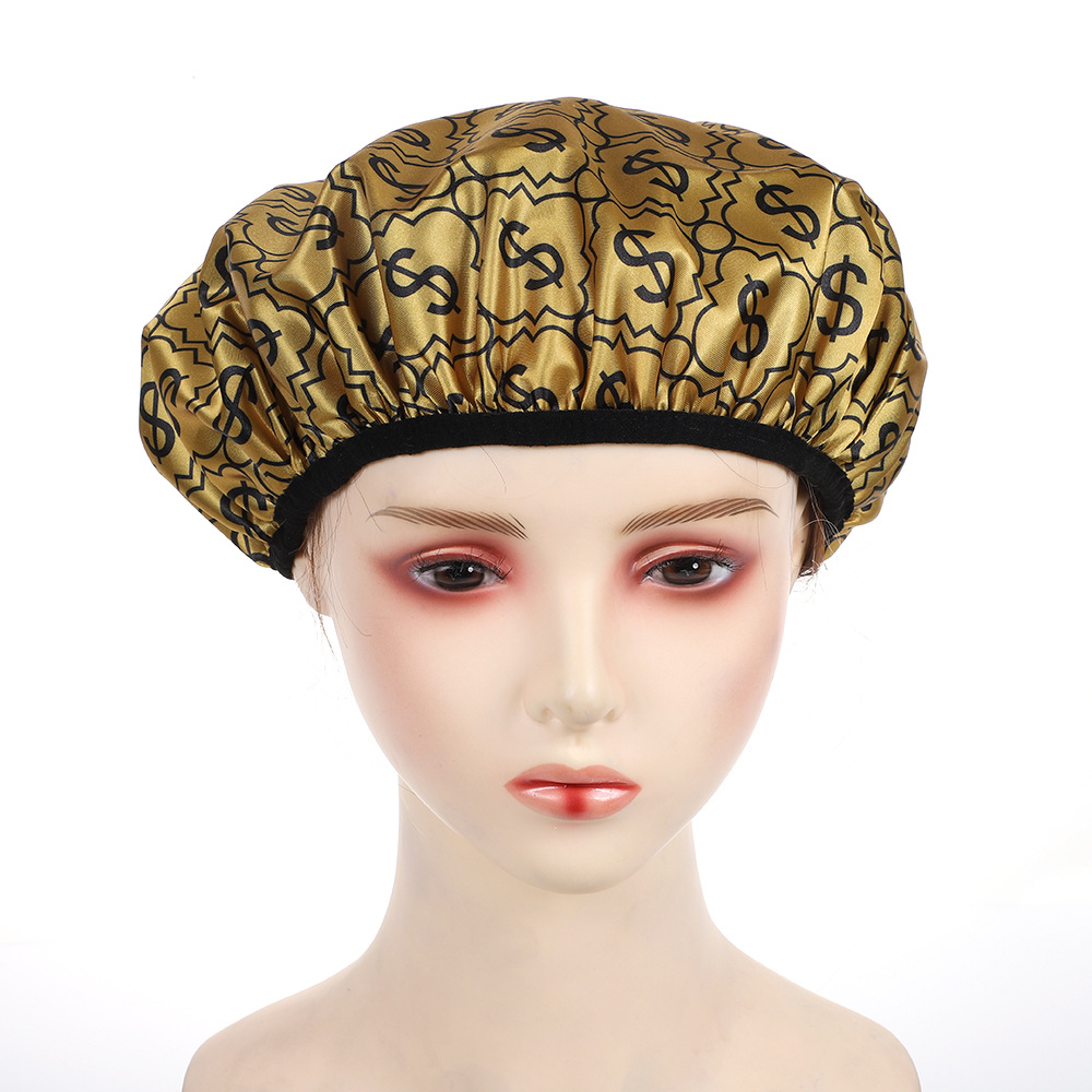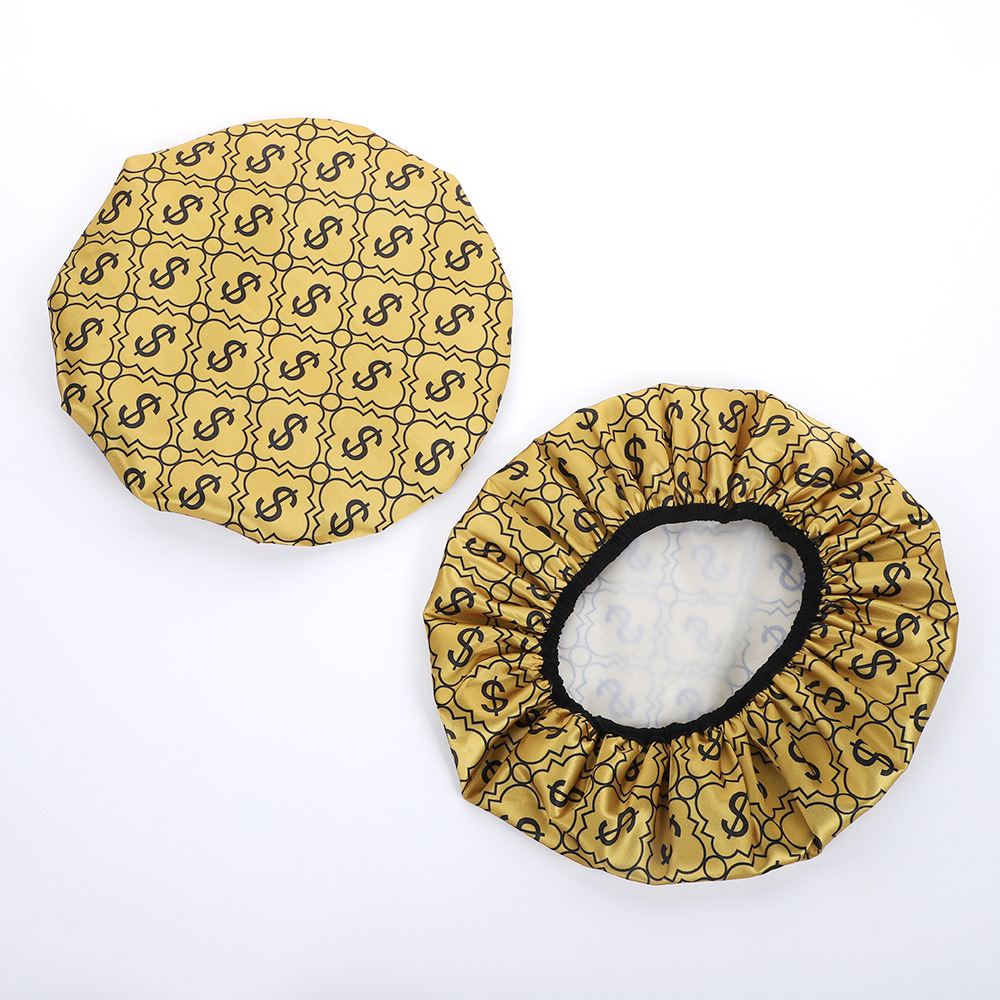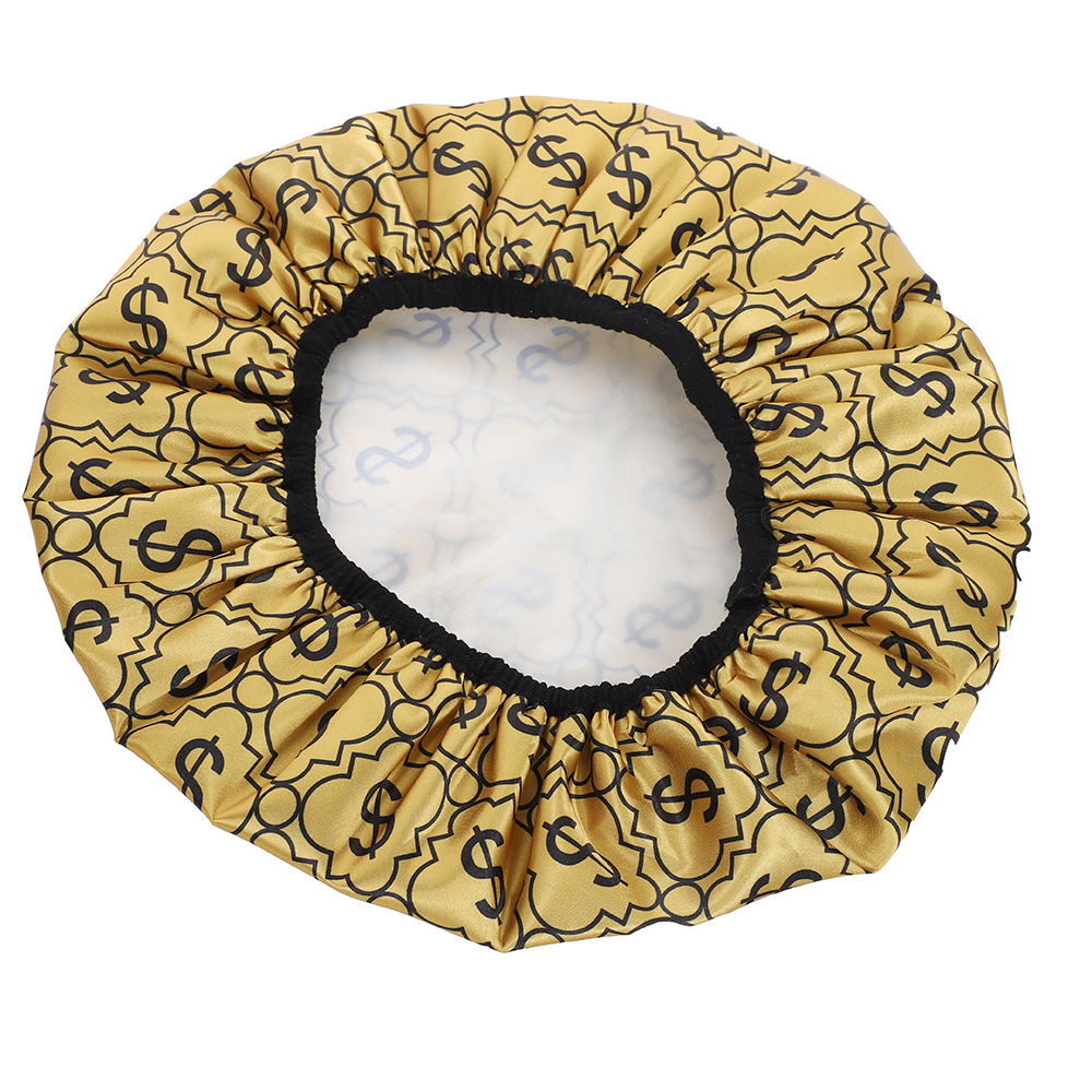 亚马逊PEVA金色美元防水淋浴帽长发加厚沐浴洗澡头套防油烟焗油帽