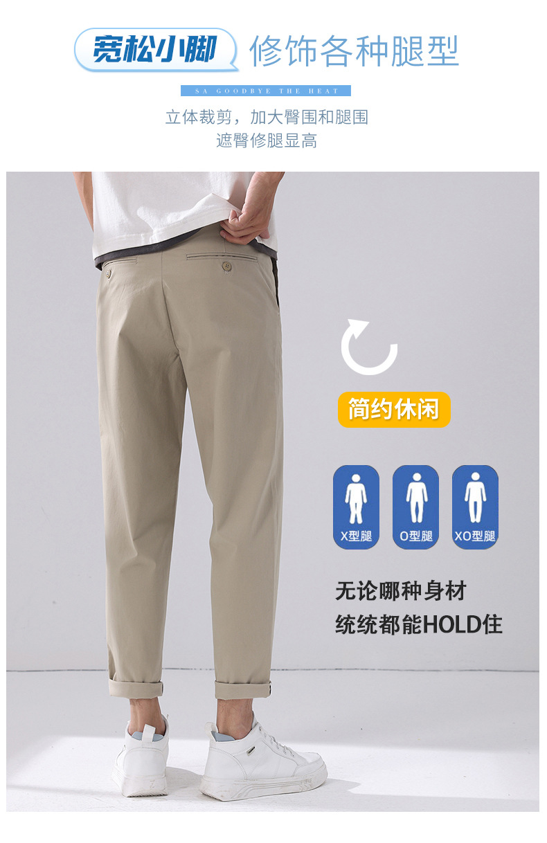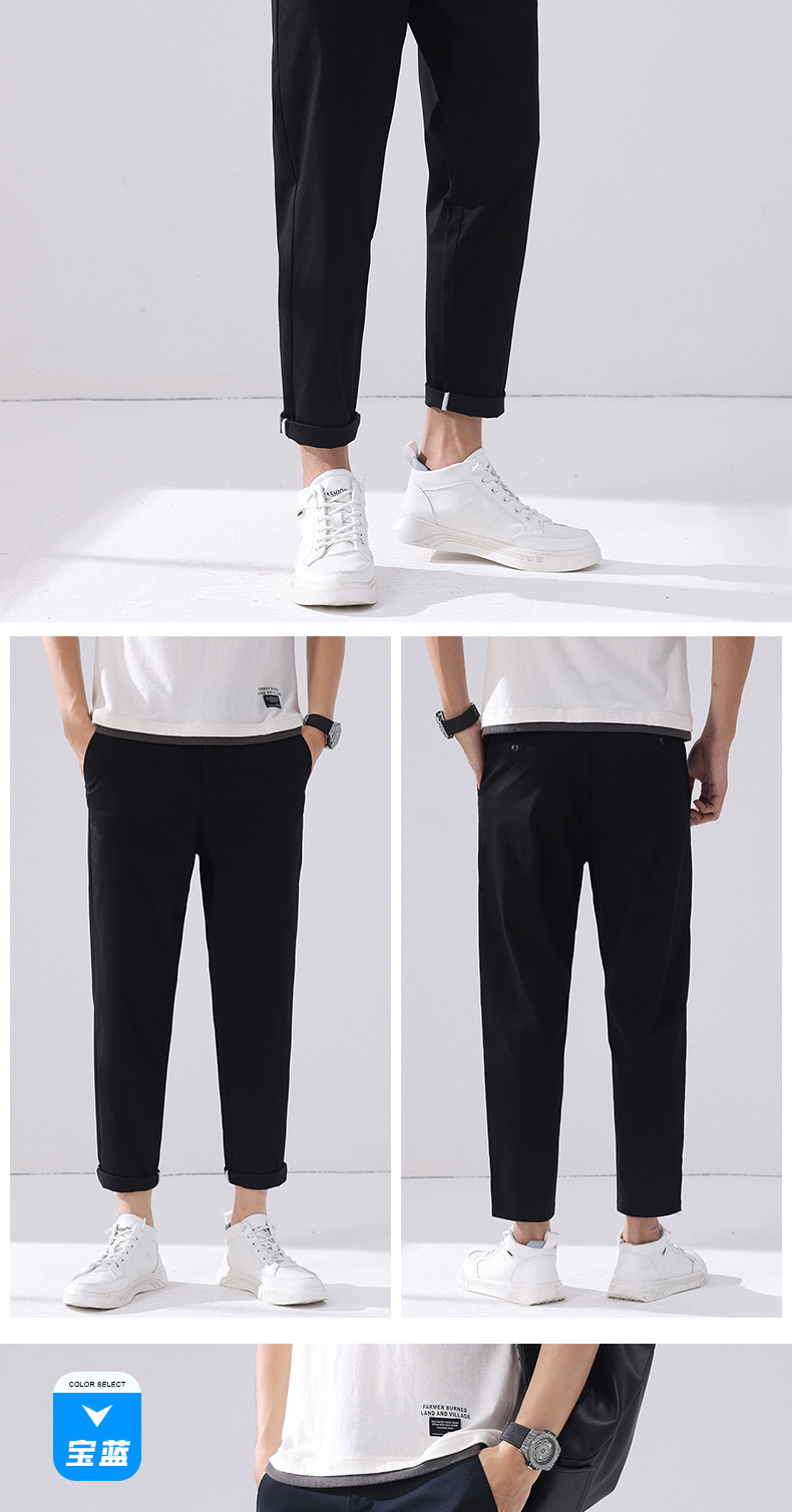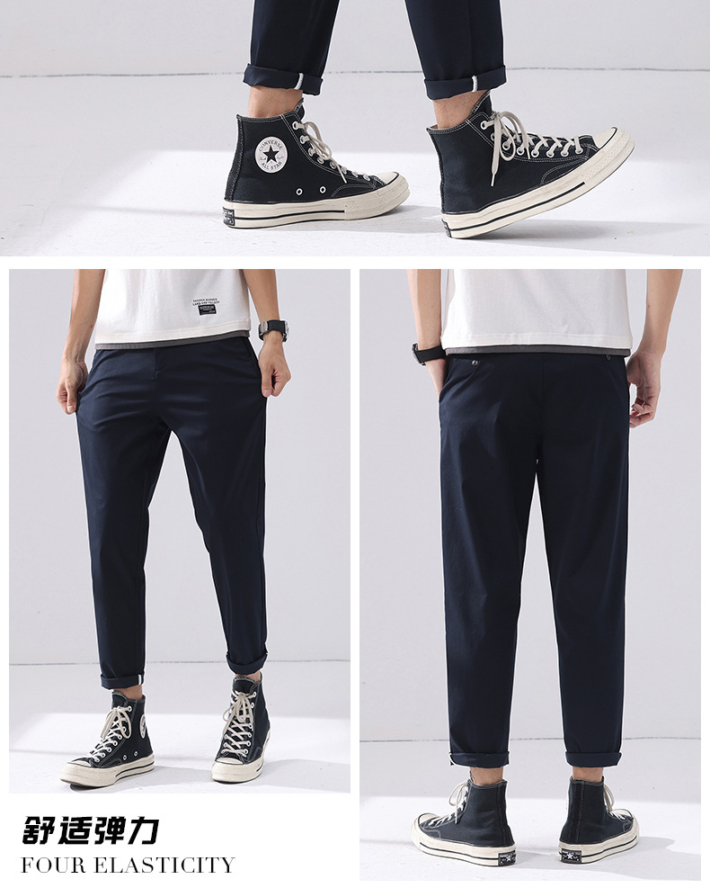 春秋新款休闲九分裤男百搭纯色修身韩版裤男商务休闲裤男9分大码