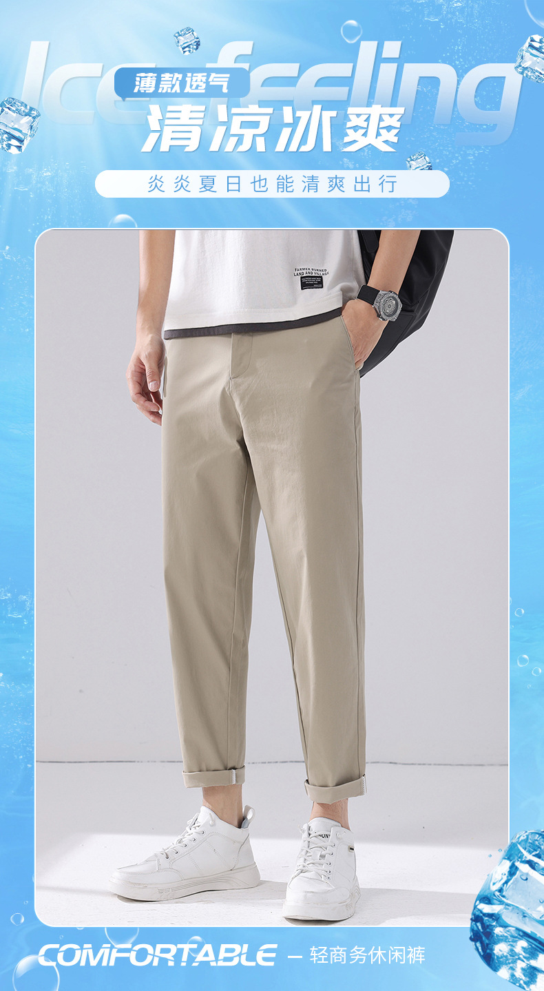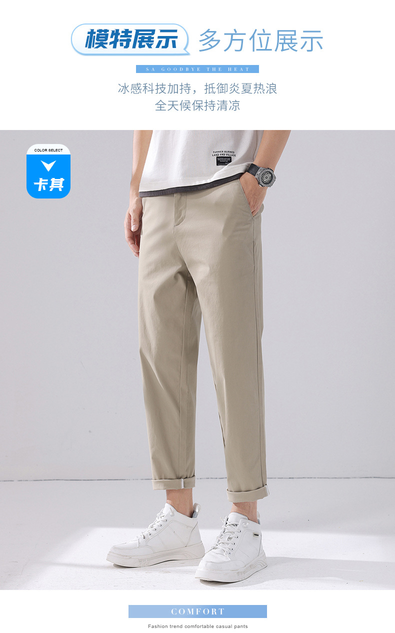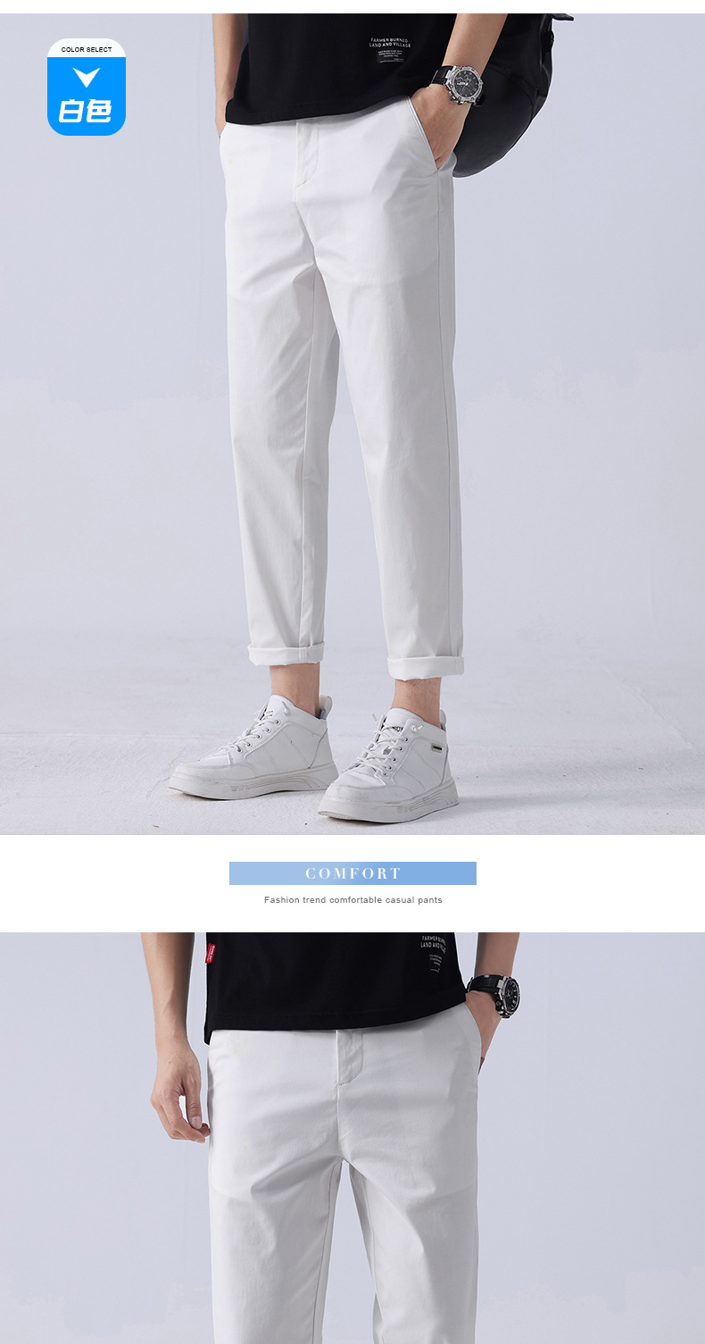 春秋新款休闲九分裤男百搭纯色修身韩版裤男商务休闲裤男9分大码