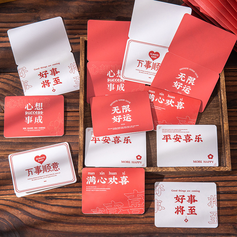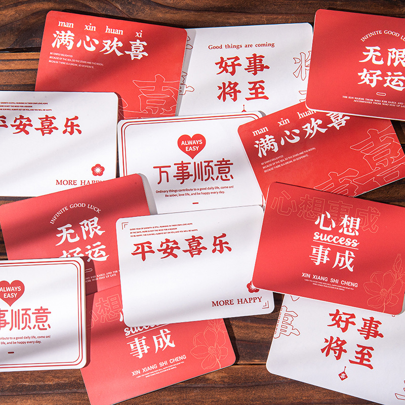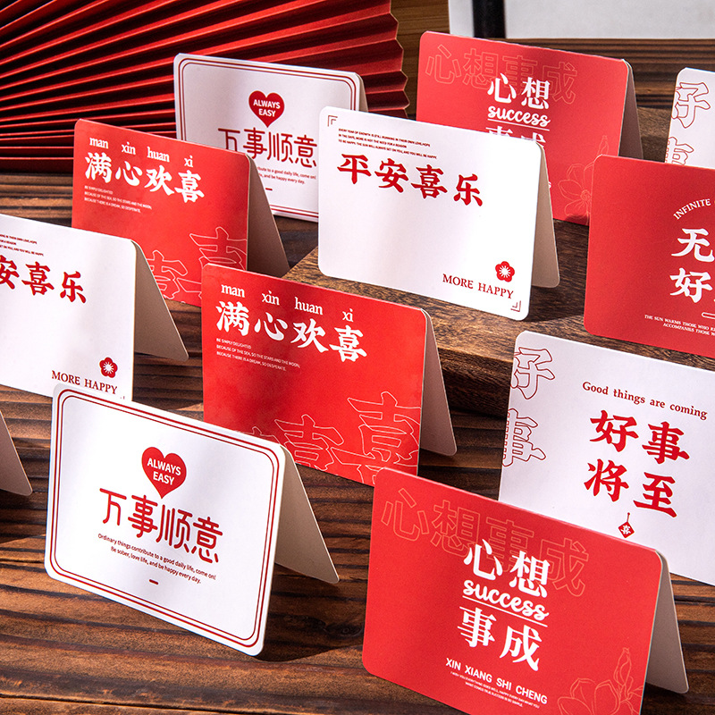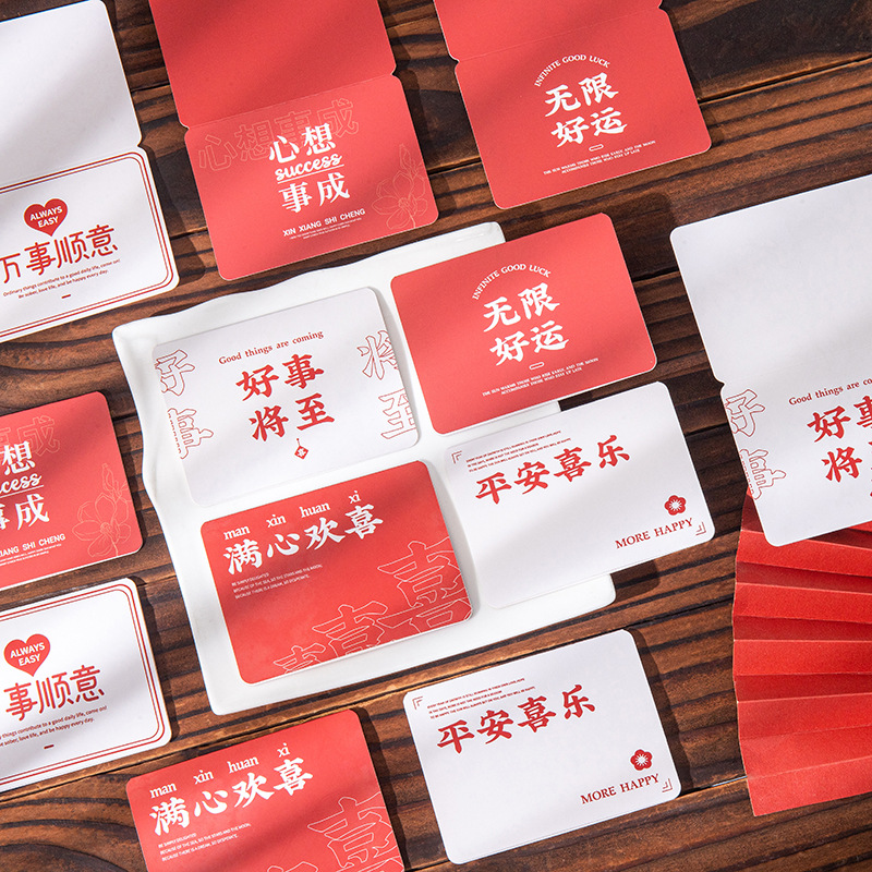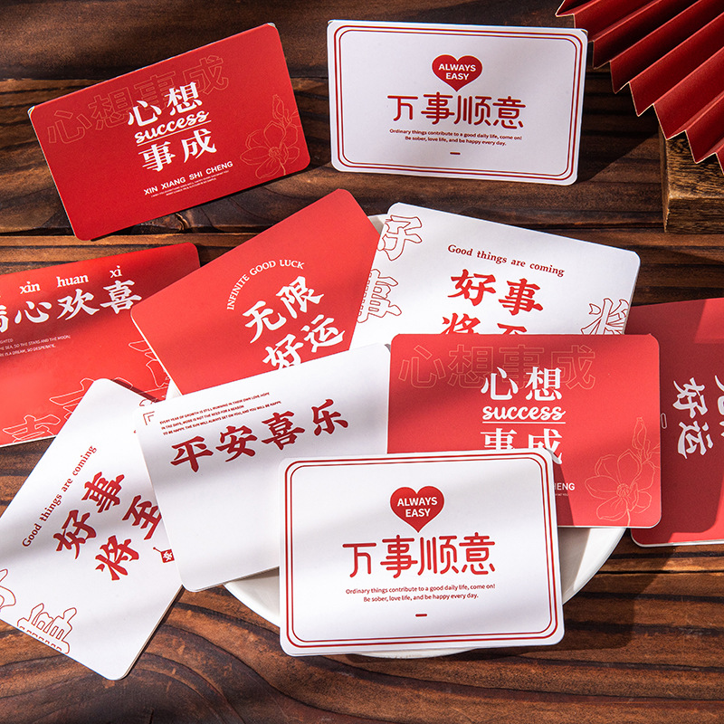 通用贺卡好运连连平安喜乐创意励志文字小卡片祝福简约留言卡批发