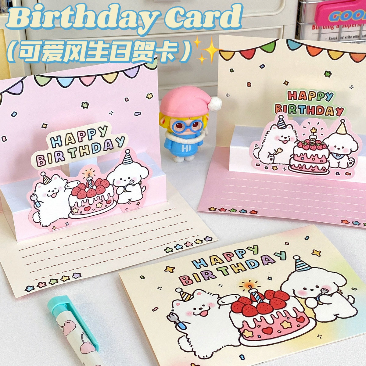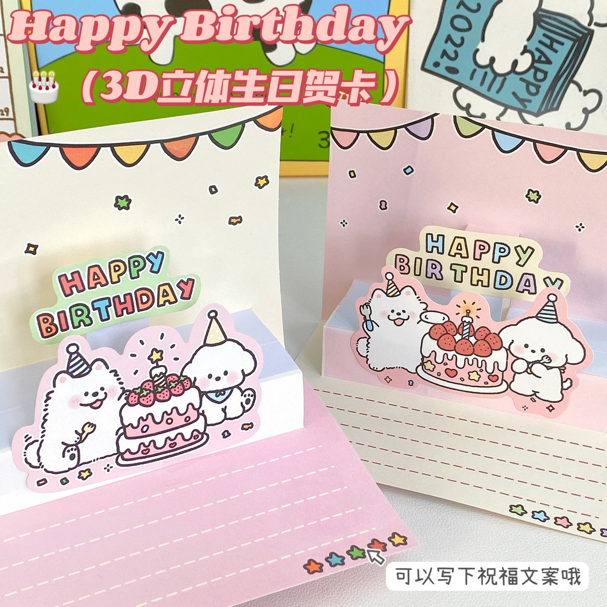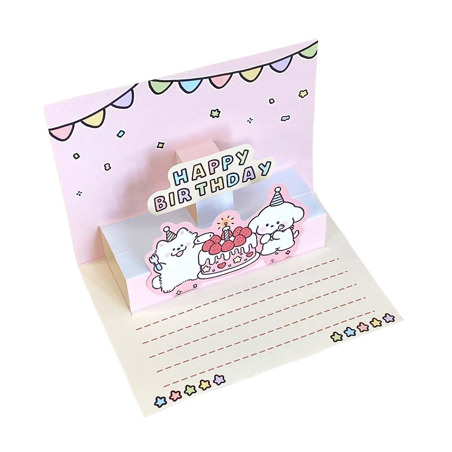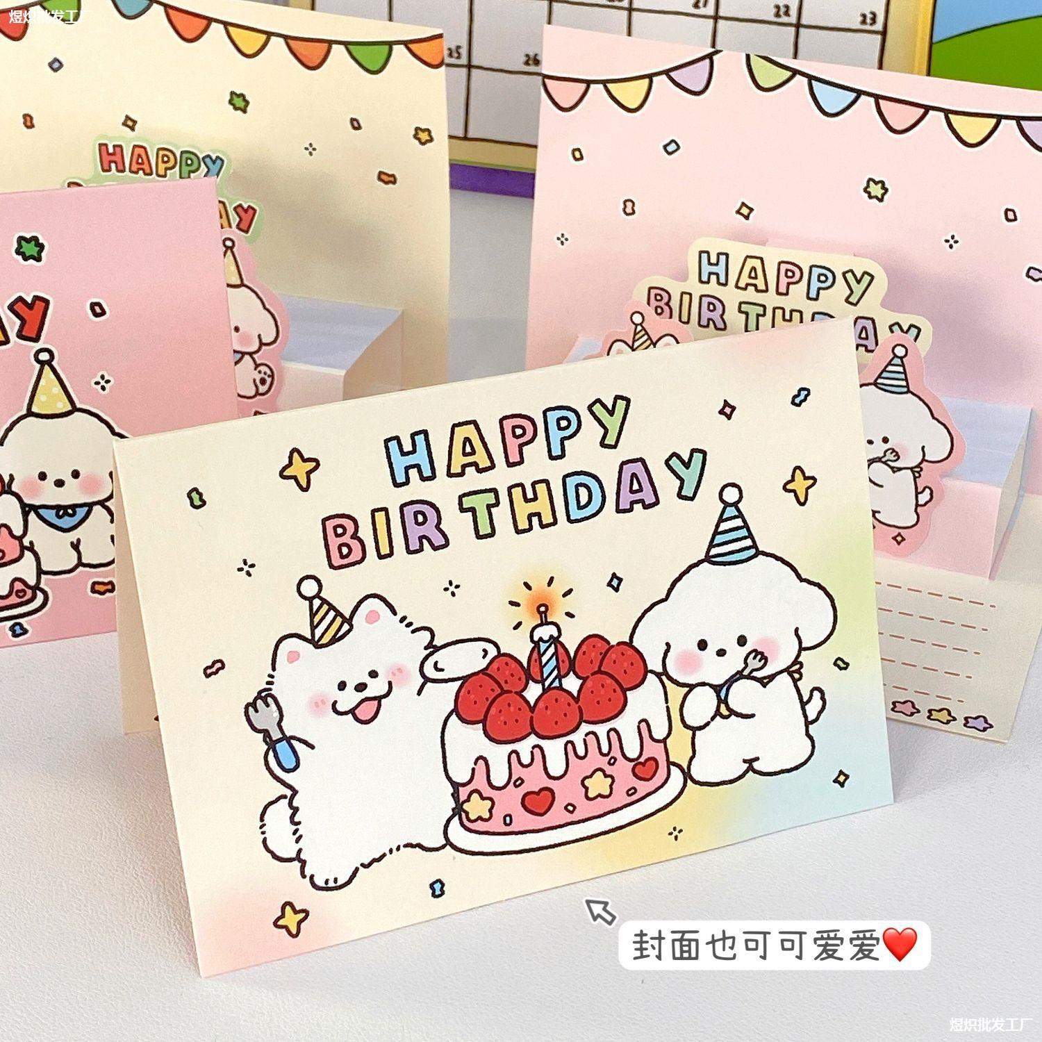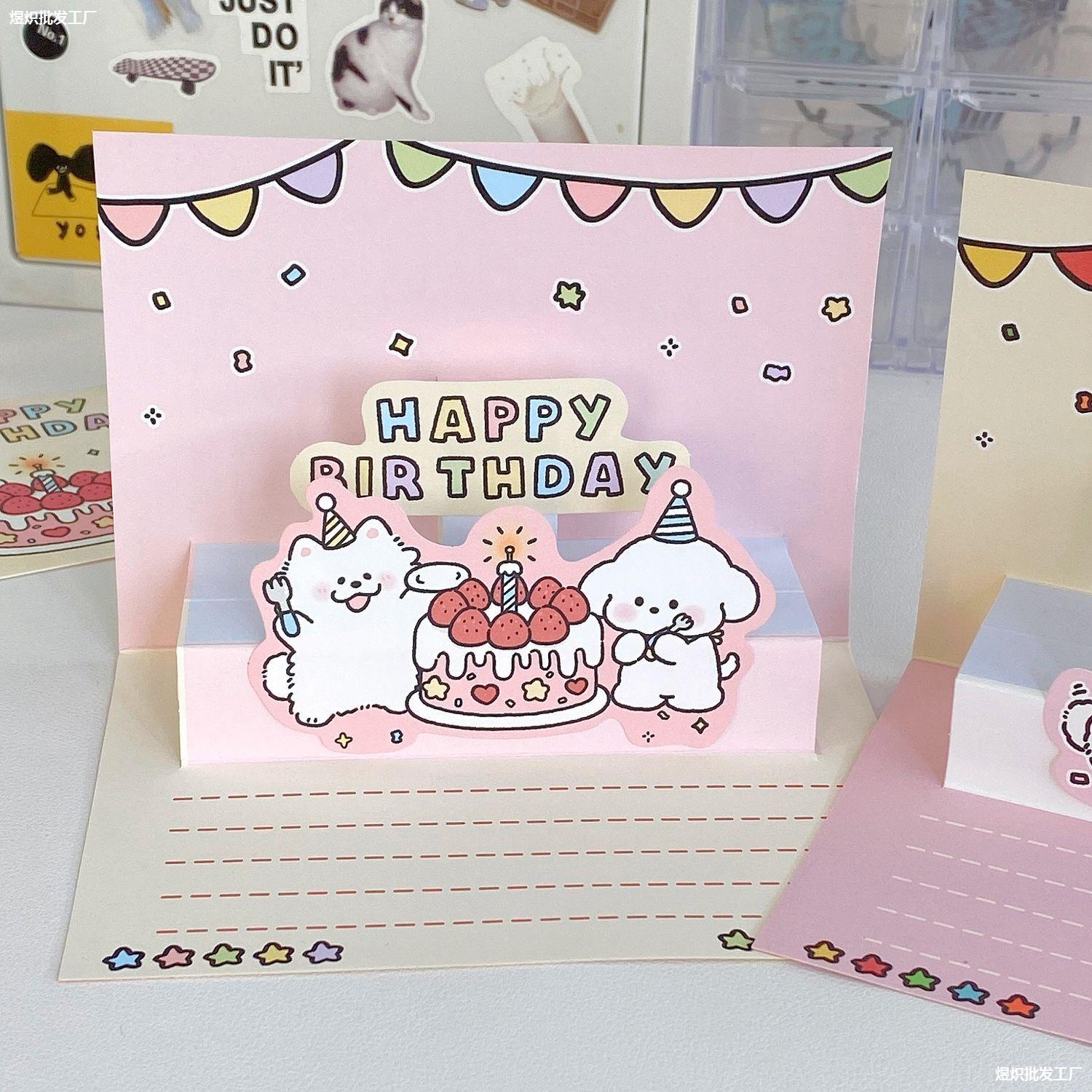 ins可爱卡通3d立体生日手写贺卡蛋糕贺卡信封信纸套装送朋友礼物