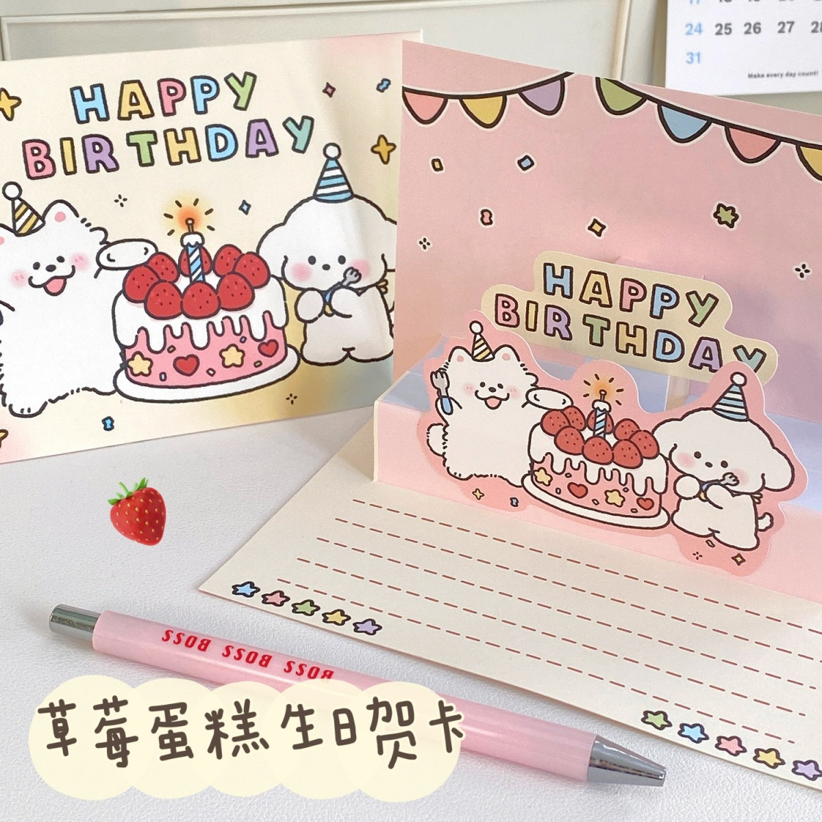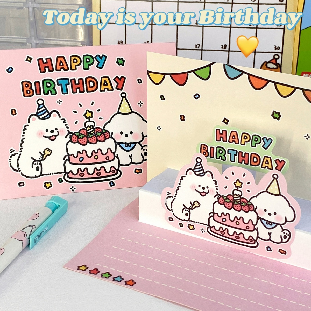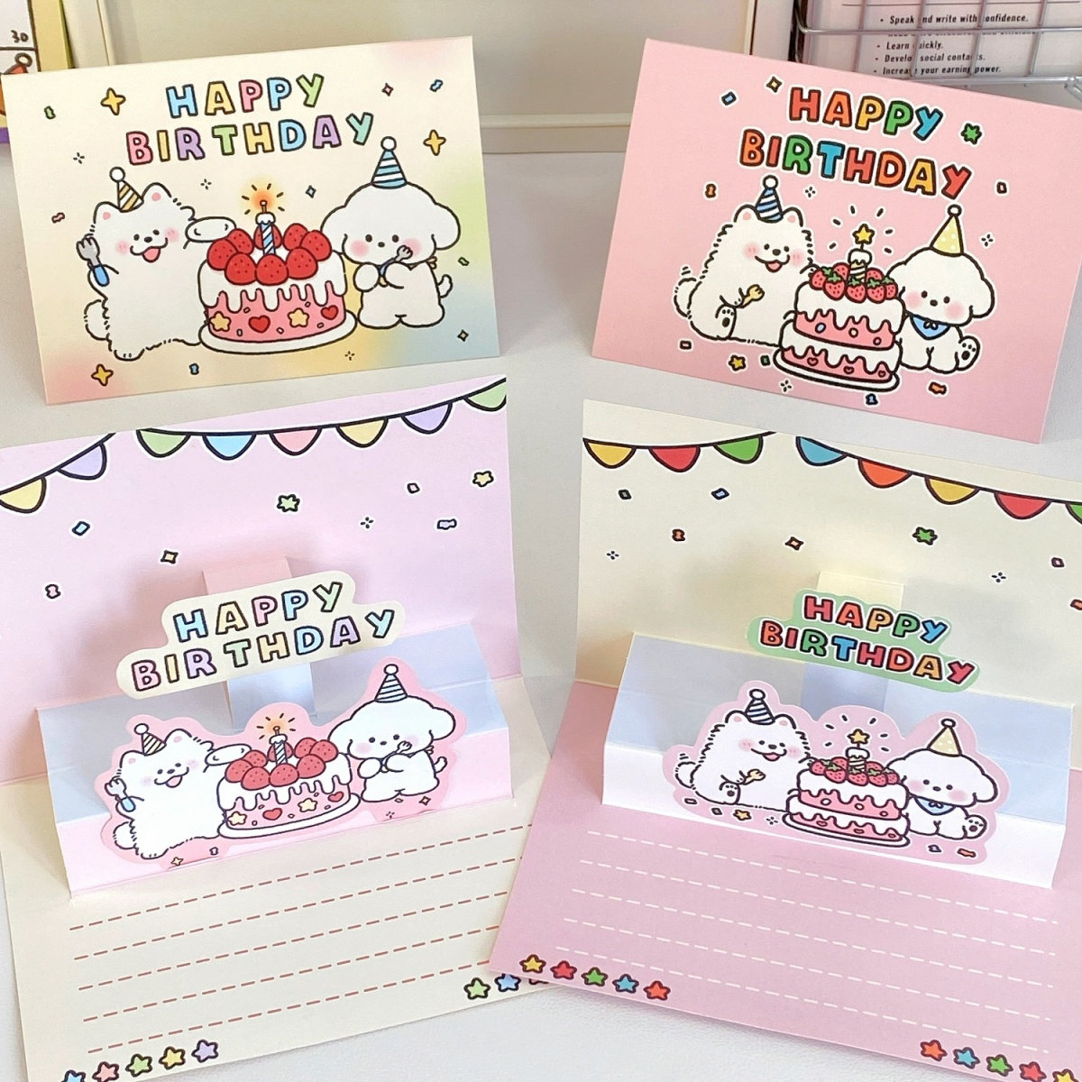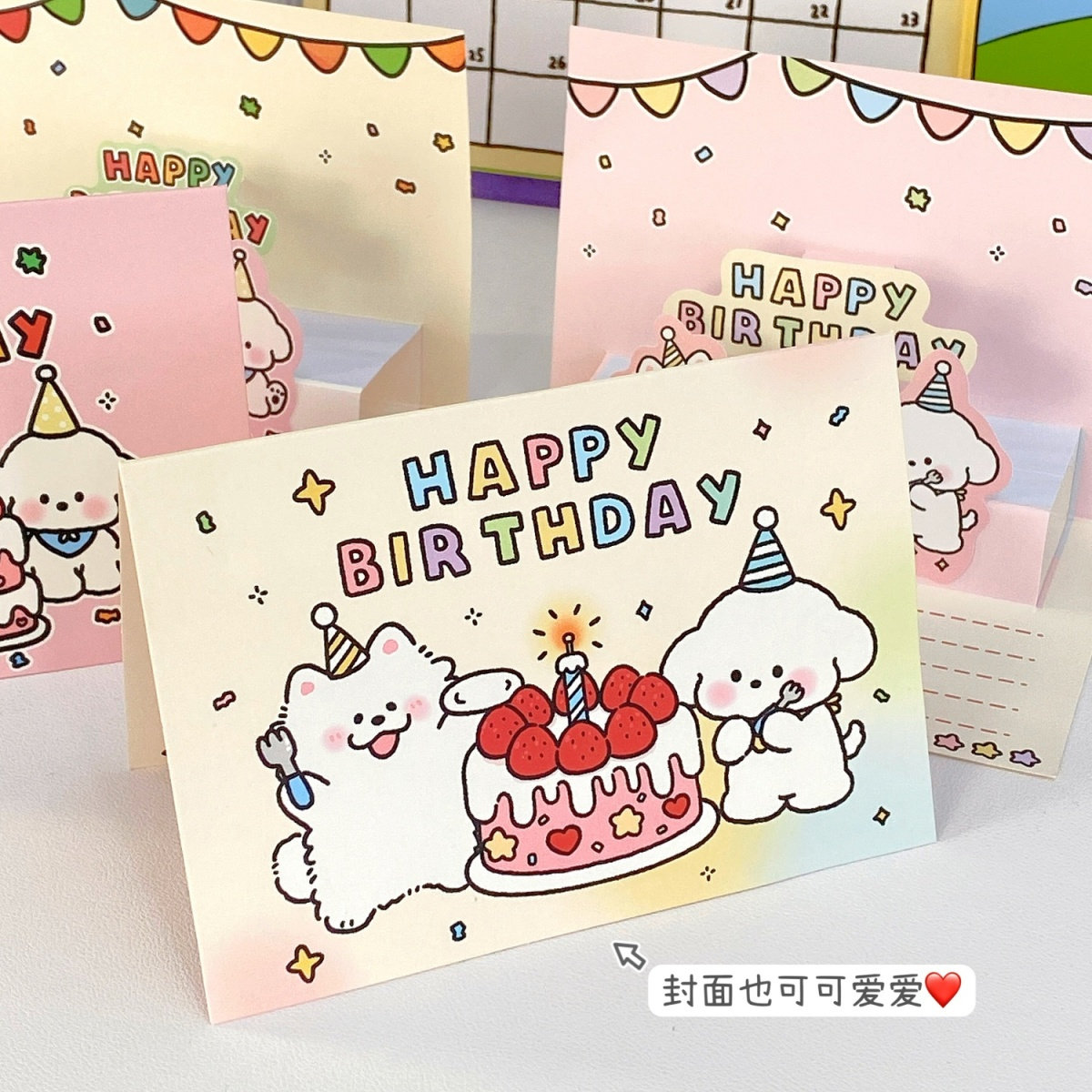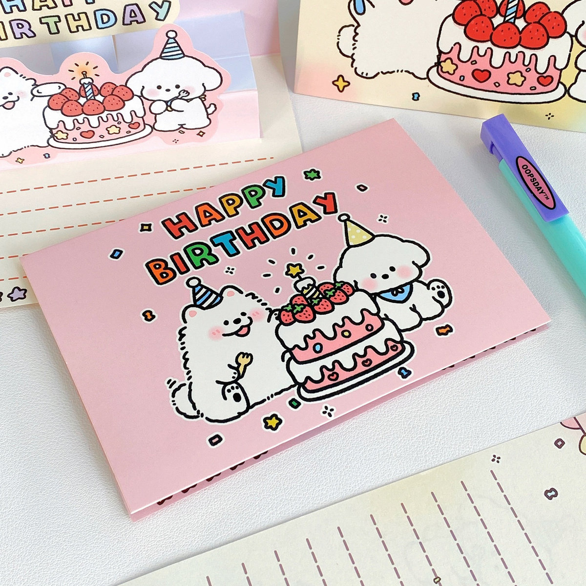 ins可爱卡通3d立体生日手写贺卡蛋糕贺卡信封信纸套装送朋友礼物
