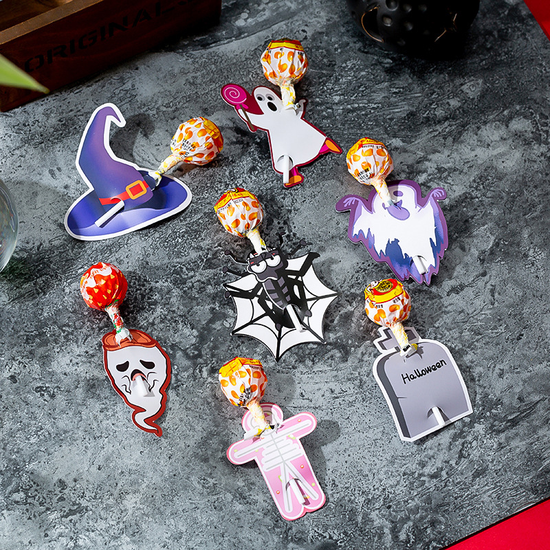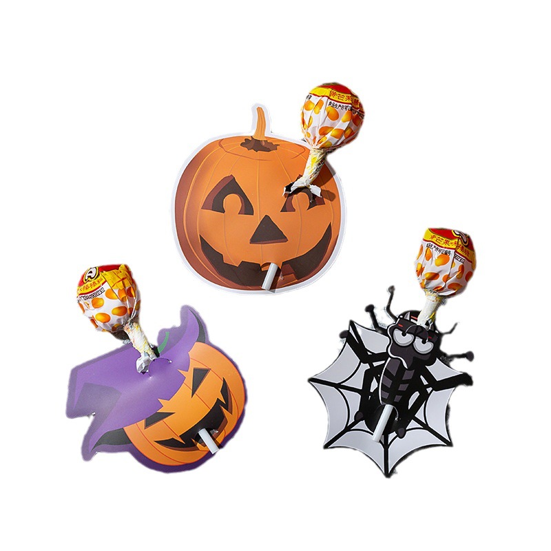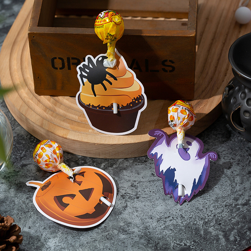 万圣节卡片棒棒糖卡橙色南瓜卡纸 Helloween幽灵装饰留言纸卡批发