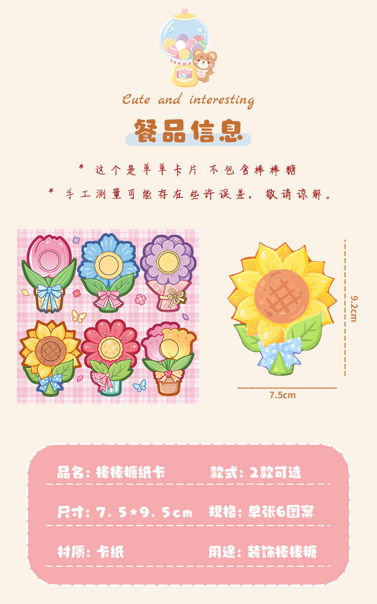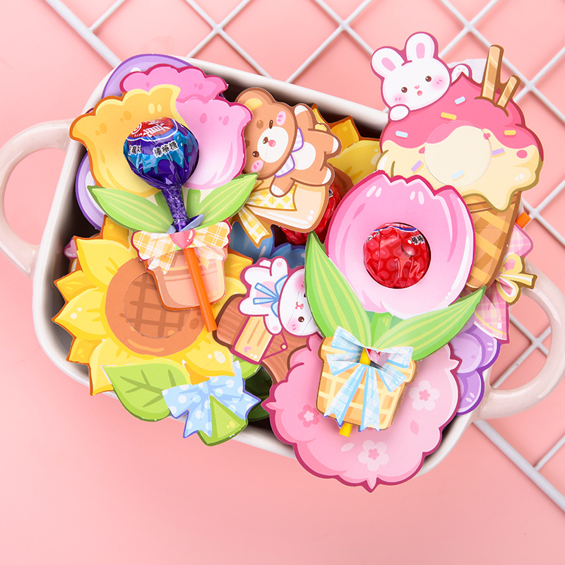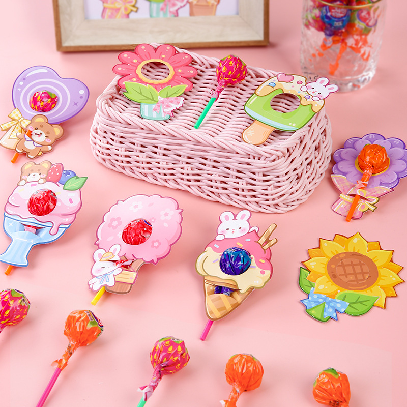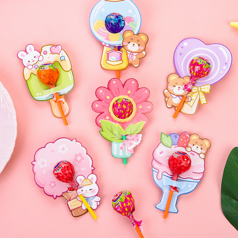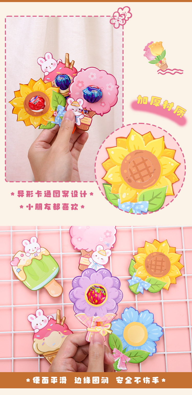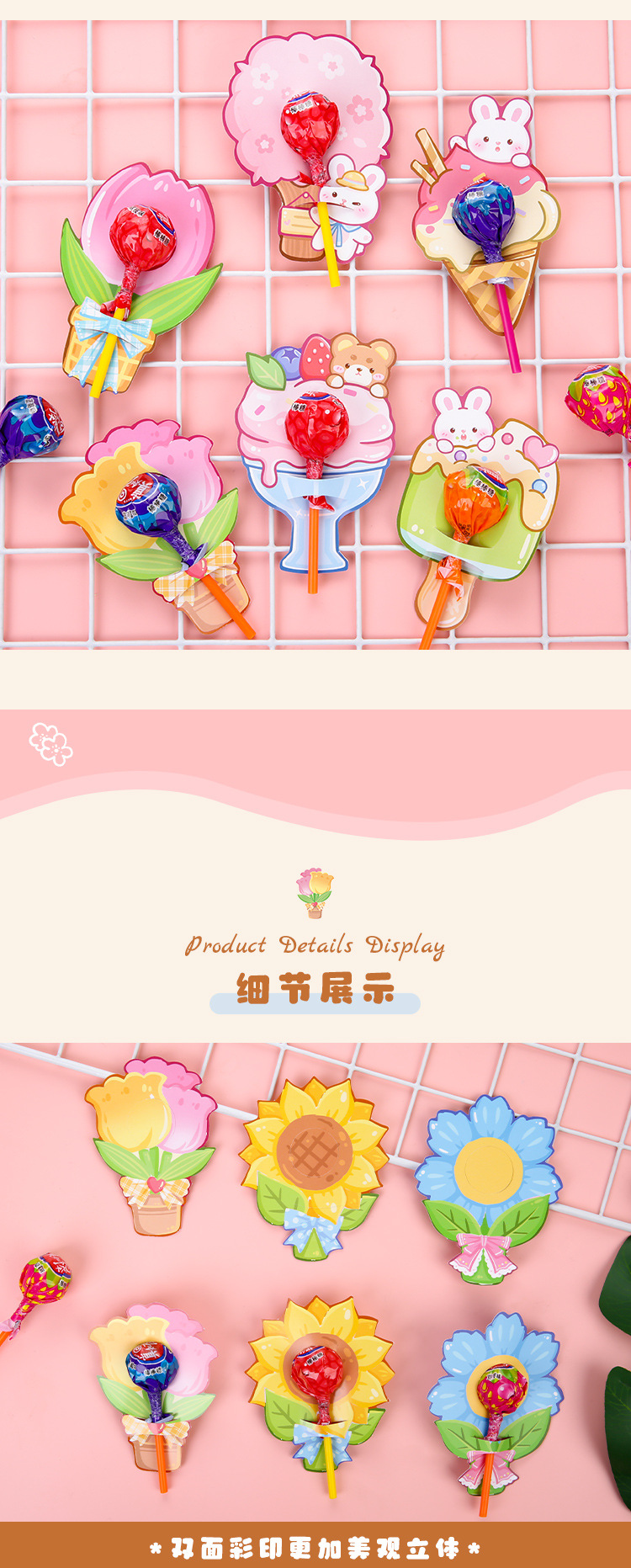 幼儿园学生棒棒糖装饰小卡片卡通可爱花朵奖励糖果插卡小惊喜礼品