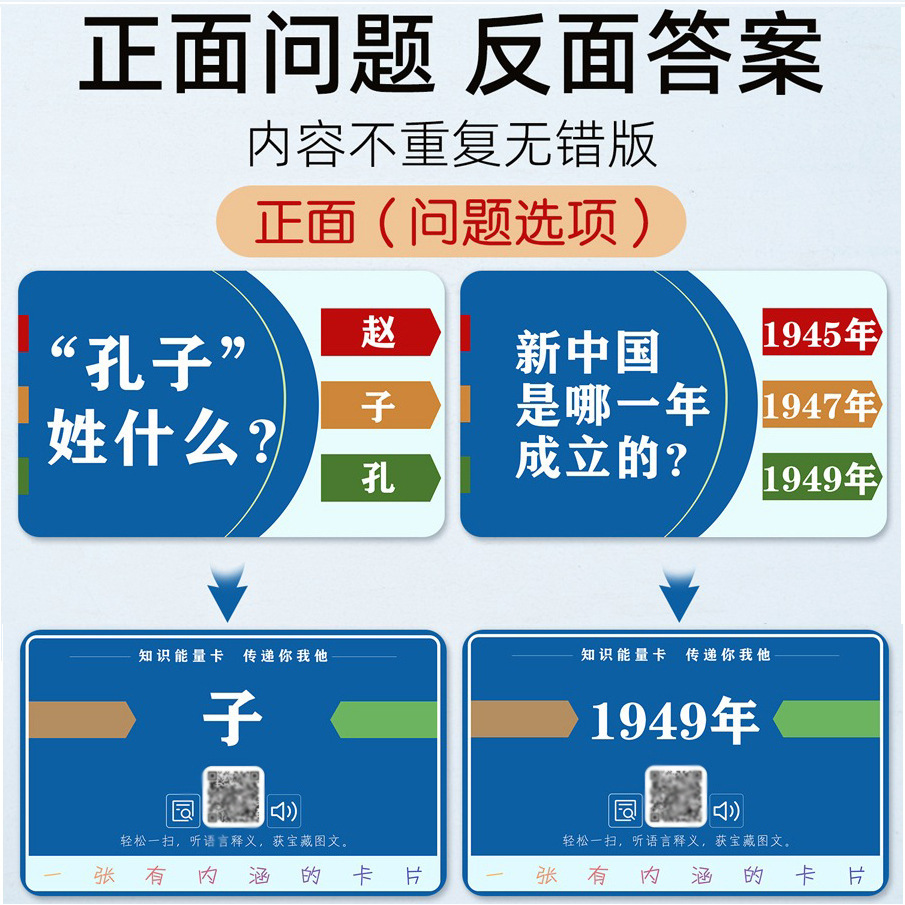 百科知识能量卡片小学生初中常识问答卡牌儿童成语接龙扑克牌玩具